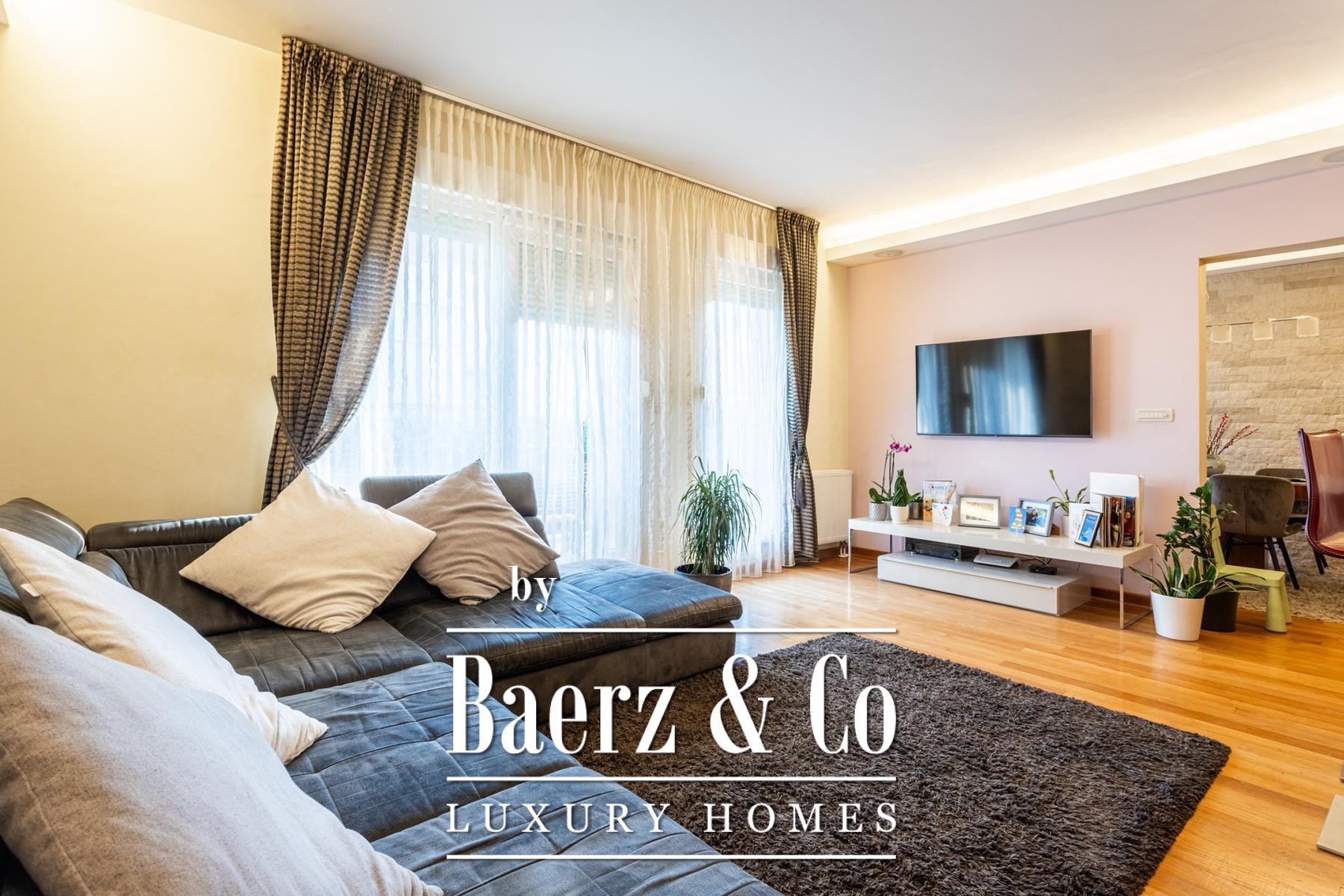 Split - Pazdigrad, spacious two-bedroom apartment with parking and landscaped courtyard, net living area 142 m²Located on the elevated ground floor of a smaller, well-maintained building in a quiet area. The apartment has a south-north orientation and comes with a garage parking space of 16 m².The layout includes:· entrance hallway,· kitchen with dining area and living room,· two bedrooms,· two bathrooms,· south-facing terrace of 34.57 m²,· covered and landscaped north courtyard with outdoor furniture, fireplace, and storage cupboards, total area of 50 m².The apartment was originally designed as a three-bedroom, and at the request of future owners, there is the possibility of relatively easily converting