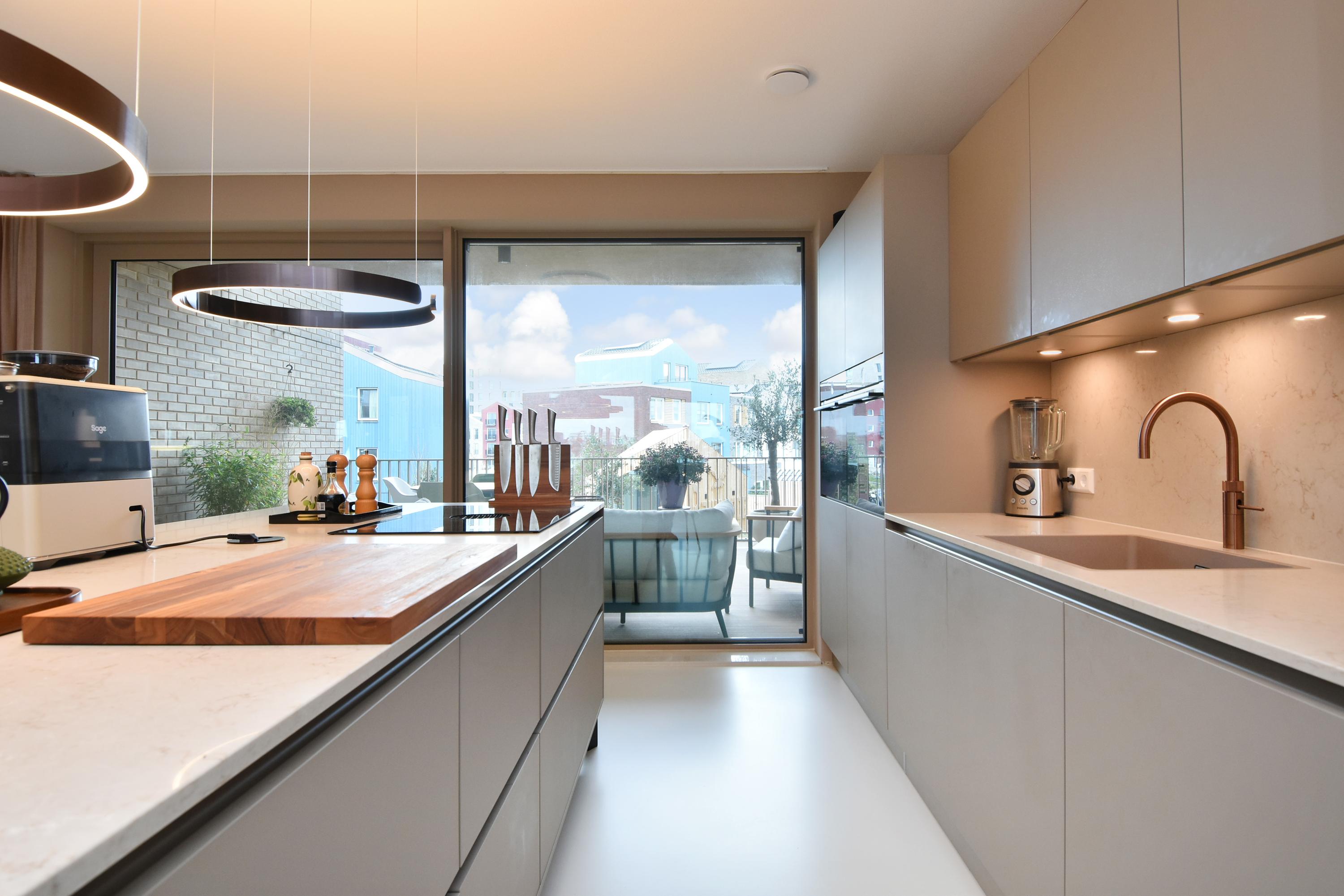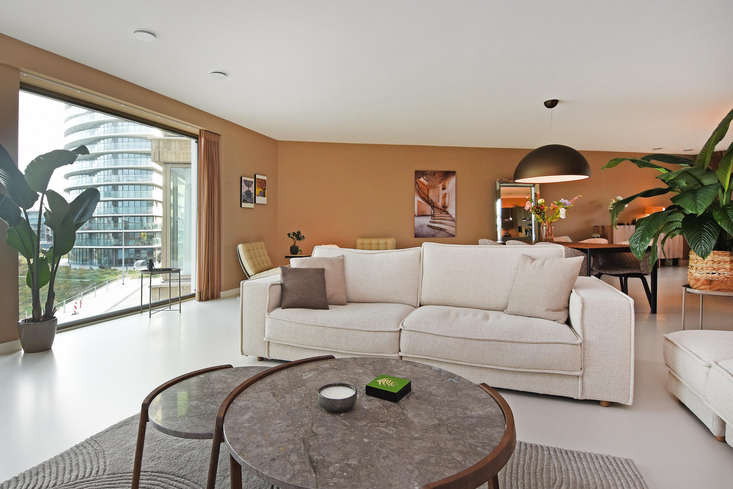 شقة دين هاج مع إطلالة على البحر تقدم مزيجاً نادراً من العمارة الحديثة والفخامة الراقية المتوارية. تقع في سخيفينينغن، وتمتد هذه الشقة الراقية على مساحة 135 متر مربع، وتتميز بنوافذ ممتدة من الأرض حتى السقف تمنحك مشهداً بانورامياً للمرفأ وبحر الشمال. تتكامل منطقة المعيشة بكل انسيابية مع مطبخ مصمم خصيصاً يضم جزيرة للطهي وأجهزة فاخرة مدمجة. تدعوك الأبواب المنزلقة إلى الاستمتاع بالأجواء الخارجية وتربط المساحة الرئيسية للمعيشة بشرفة خاصة بمساحة 29 متر مربع تطل على فناء مُنسّق، مثالية بعد الظهرات الهادئة أو التجمعات المسائية.