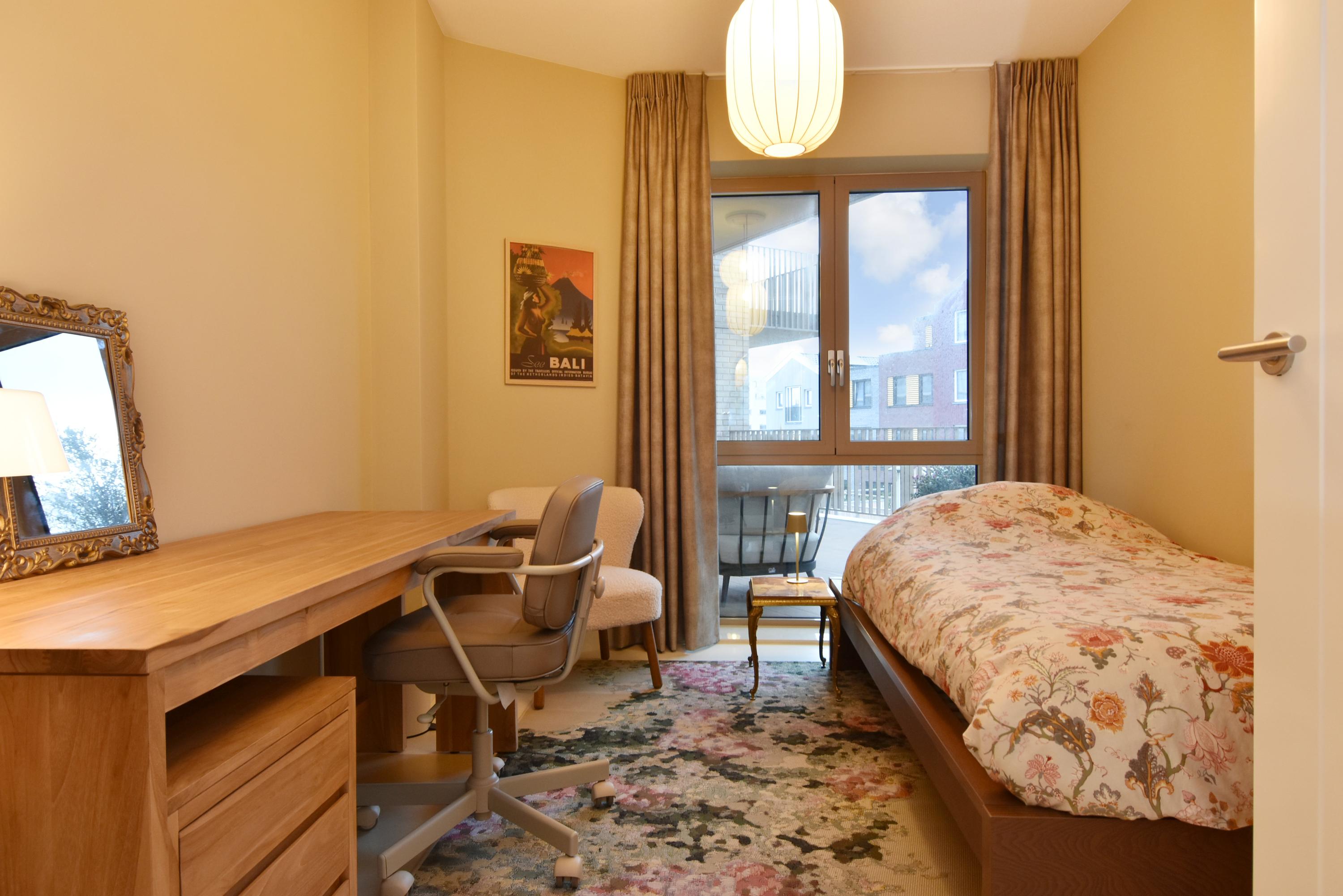 توفر غرفتا نوم أنيقتان أجواء من الهدوء والراحة، بينما يتبع الحمام أحدث اتجاهات التصميم مع دش بدون حواجز ووحدة غسيل أنيقة وحوض استحمام مستقل. تضم الشقة نظام تدفئة وتبريد مدمج بالكامل تحت الأرضية، ووحدة لاسترجاع الحرارة، ومضخة حرارية، لتوفير كفاءة طاقة استثنائية مع تصنيف الطاقة A+++. تشمل المرافق الإضافية غرفة تخزين بخزائن مصنوعة حسب الطلب، مرحاض منفصل، مكان وقوف خاص للسيارة مع نقطة شحن في المرآب الآمن، ومساحة تخزين خاصة بارتفاع إضافي. وتقع على مسافة قريبة سيراً على الأقدام من شاطئ زويدروستران، حديقة ويست دوينبارك، مطاعم الميناء النابضة بالحياة، والمتاجر على شارع فريدريك هندريكلاان مما يرسخ جاذبية شقة دين هاج الخالدة.