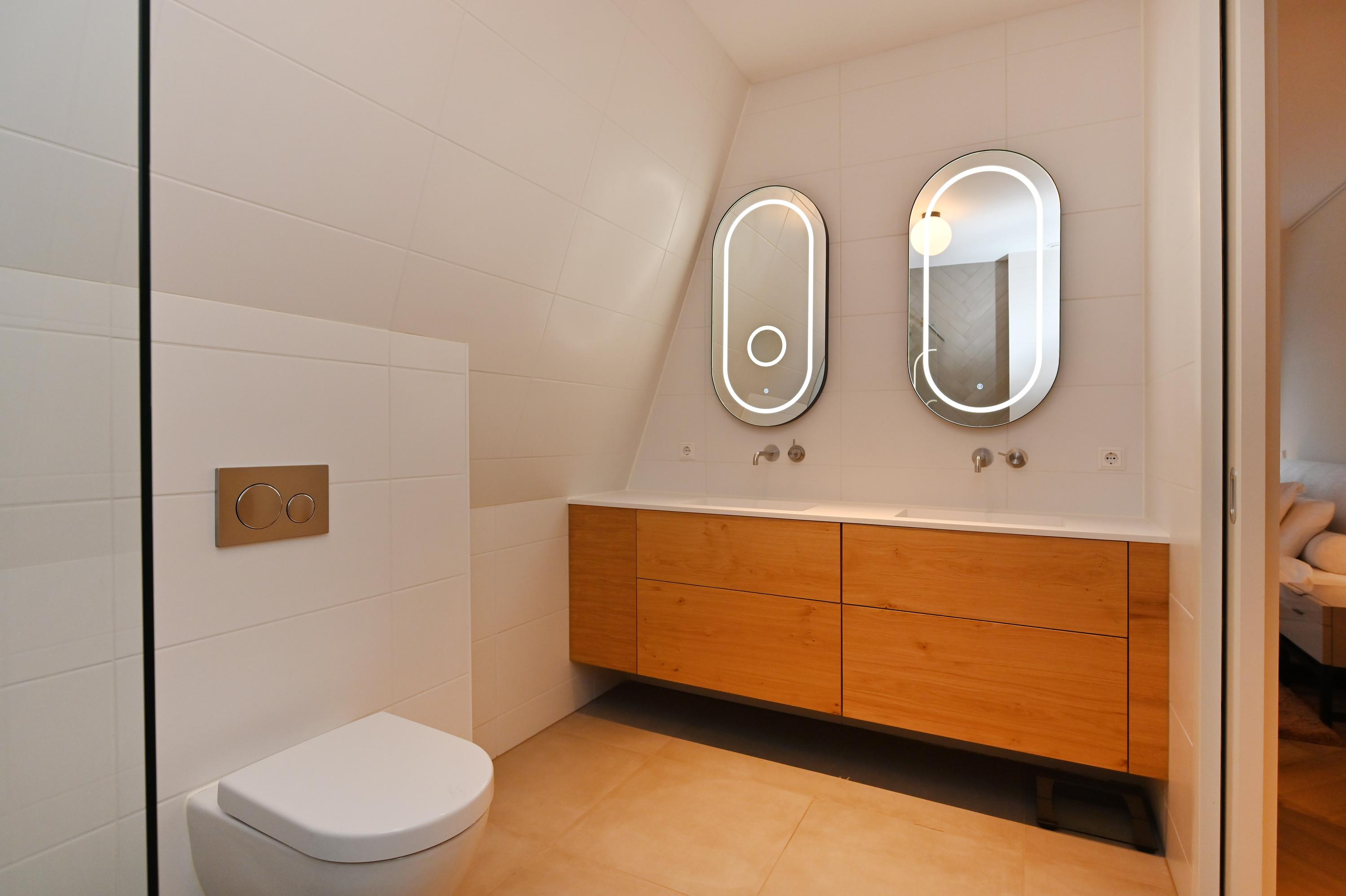 تجمع ثلاث غرف نوم بين الأناقة والعملية، مع خزائن مدمجة وخيارات للعمل أو الترفيه. يضم كل من الحمامين دش مطري ومغسلتين مع إضاءة مرايا، بالإضافة إلى مرحاض ضيوف منفصل لراحة إضافية. تمتزج الاستدامة مع كافة التفاصيل، بدءًا من تصنيف الطاقة A++ ونظام التدفئة PVT المتطور، وصولاً إلى إطارات النوافذ المصنوعة من الألمنيوم وزجاج HR++ عالي الكفاءة. موقف سيارات خاص مع محطة شحن كهربائية ووحدة تخزين بمساحة 13 م² يضيفان الراحة والعملية. هذه الشقة جاهزة للسكن وتقع ضمن منطقة محمية وطنياً، موصلة بشكل متكامل التشطيبات العصرية بالتصميم الحضري الكلاسيكي.