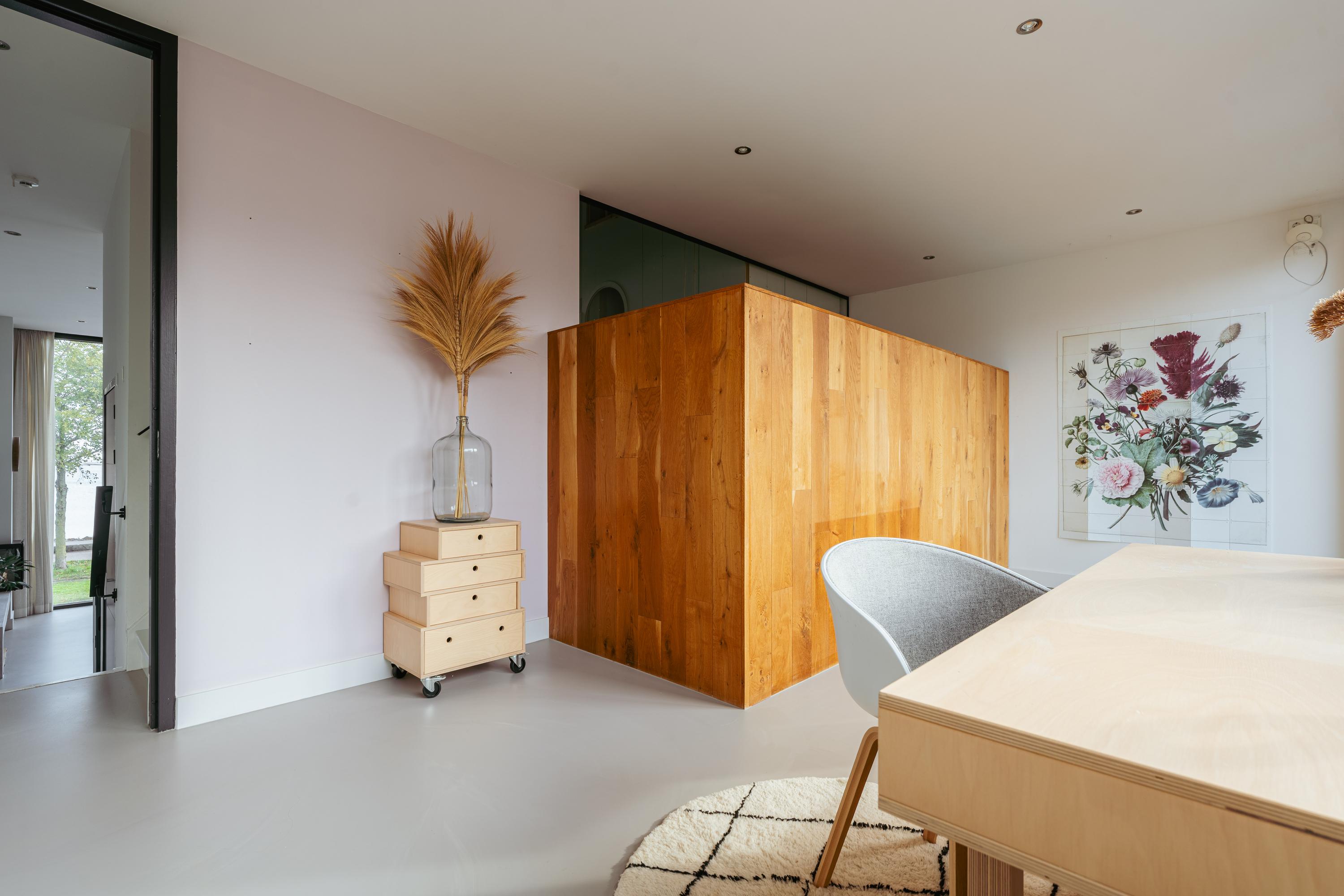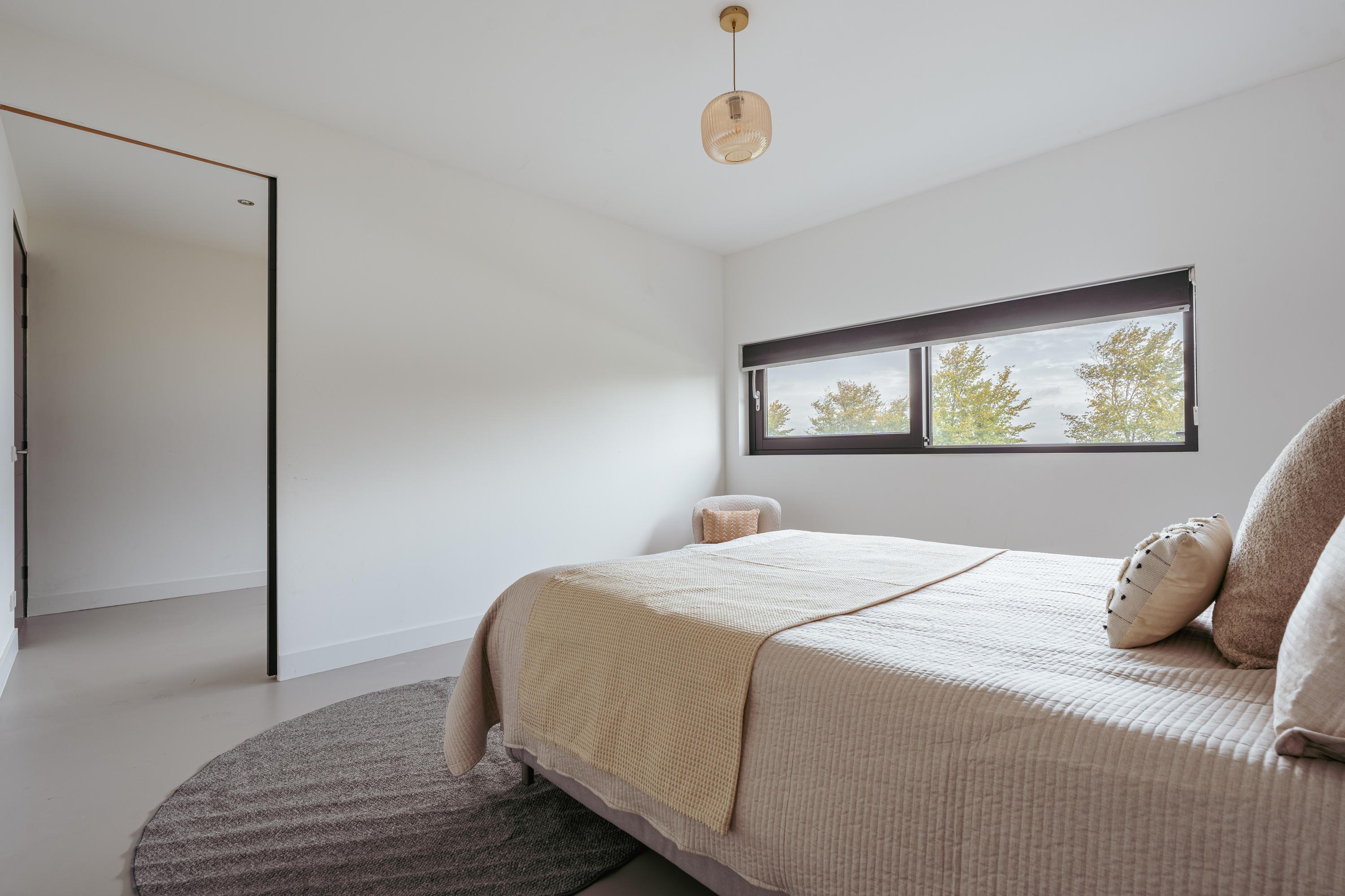 يشمل المنزل خمس غرف نوم وحمامين ويتميز بساونا وسينما خاصة عازلة للصوت وعدة غرف متعددة الاستخدامات. الحديقة المواجهة للجنوب بمساحة تقريبية 54 مترًا مربعًا متصلة مباشرة بالمطبخ المعيشي عبر أبواب فرنسية، لتعزز الراحة والتواصل الاجتماعي في نفس الوقت. التدفئة الأرضية موزعة في جميع الأنحاء، مع زجاج HR++ عالي الكفاءة للطاقة، تدفئة مركزية، و17 لوحًا شمسيًا لبيئة خالية من الغاز بتصنيف طاقة "A". موقفان للسيارات في الموقع ومحطة شحن كهربائية يكملان هذه المزايا.