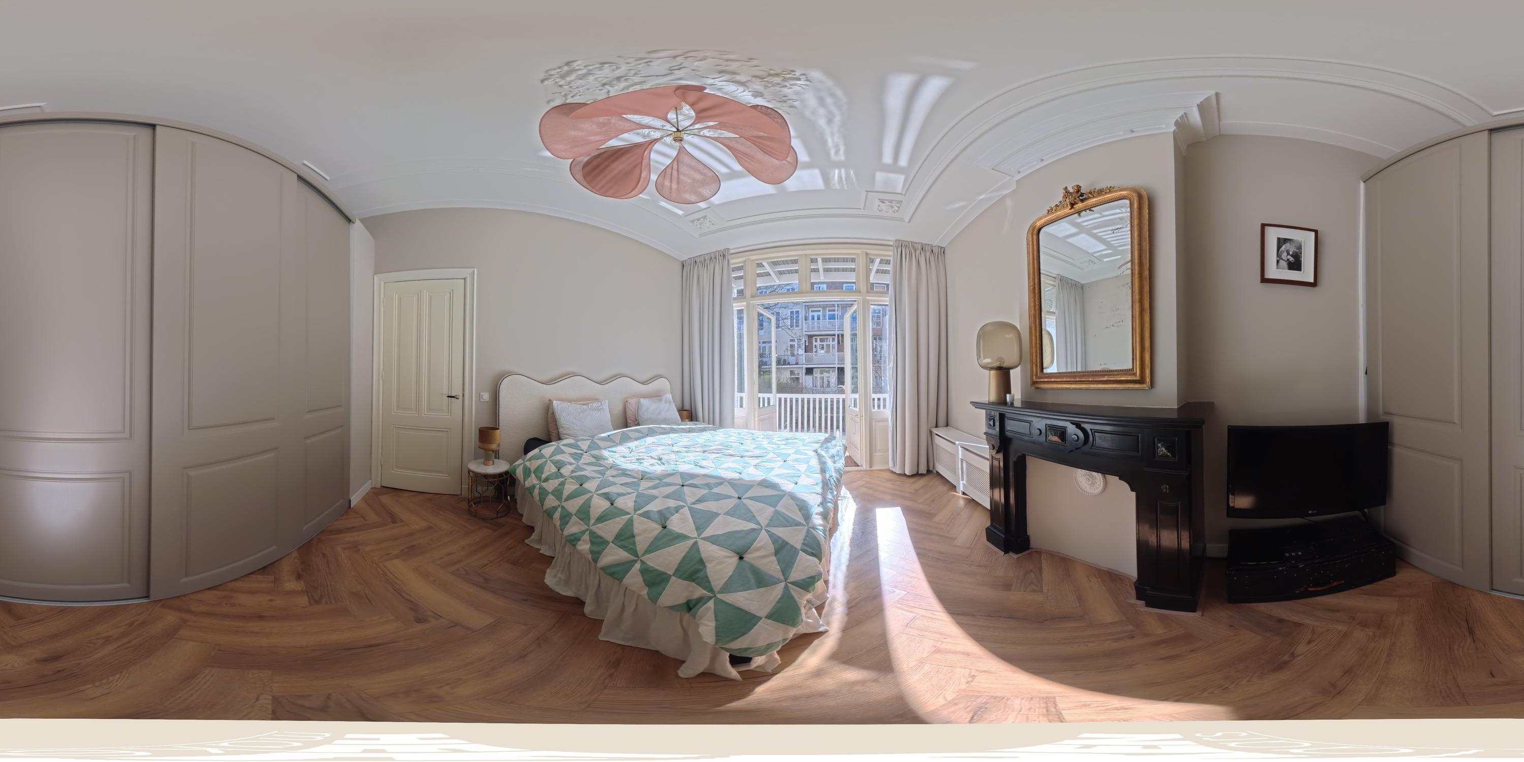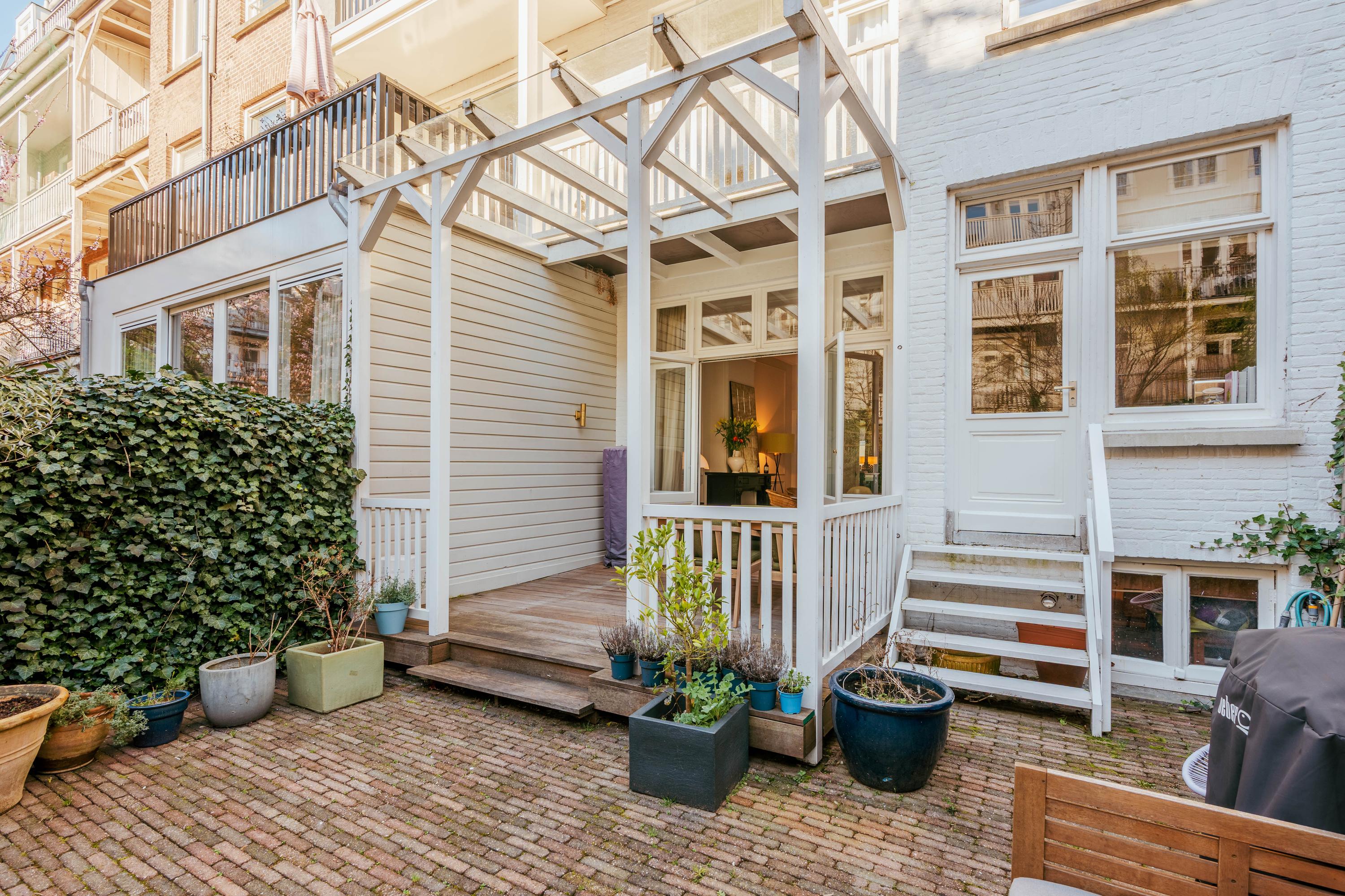 A charming double ground-floor apartment of 124 m² with a spacious garden and distinctive character details. This beautiful home combines authentic charm with modern living comfort. Think of stained glass windows, ornate ceiling decorations, fireplaces, and paneling, perfectly balanced with a contemporary finish. With a generous and bright en-suite living area, open kitchen, four bedrooms, two balconies, and an exceptionally large sunny backyard with a covered terrace, this property offers everything for comfortable and atmospheric living. Situated on freehold land and featuring a practical layout, this is a unique and complete family home.