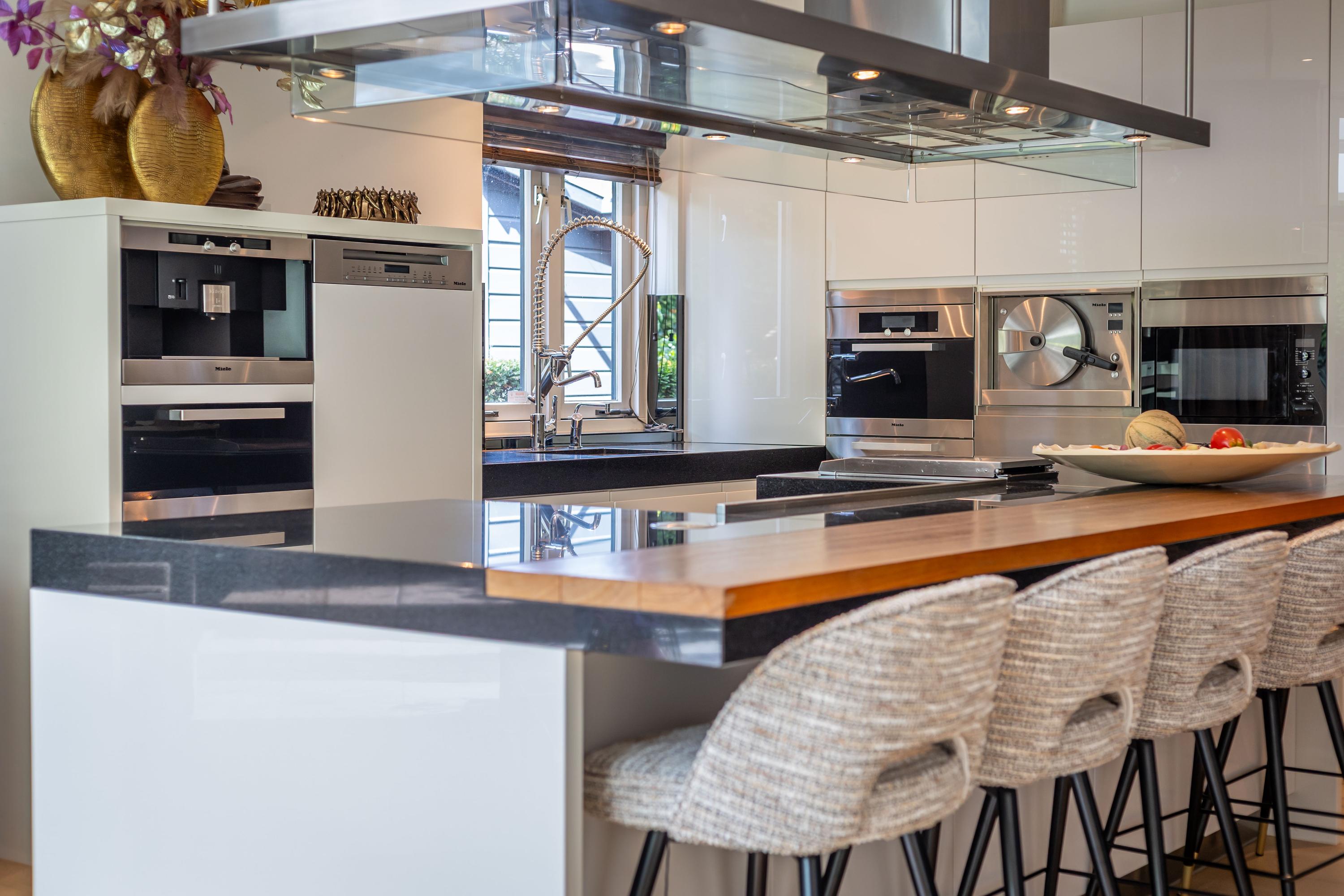 أعيد تطوير الفيلا في عام 2011 بواسطة Vlassak Verhulst وتم الارتقاء بها مجددًا في عام 2025، حيث تم الدمج بسلاسة بين التقنيات الحديثة والجماليات الرفيعة. تشمل التفاصيل المتميزة أرضيات من خشب البلوط من Ebony and Co.، تشطيبات جدران بودينغستوك، وخزائن مطبخ Arclinea المزودة بجميع الأجهزة المدمجة المتوقعة. في الطابق السفلي جناح للاستجمام يضم مسبحًا مدفأ، ساونا، حمامًا تركيًا، وبارًا عصريًا، إلى جانب مرآب داخلي وجناح خاص بالمربية، ليكتمل بذلك مشهد الفخامة المدروسة.
