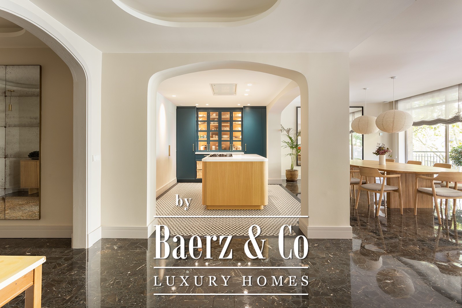 توفر هذه الشقة الفاخرة في برشلونة بلازا كينيدي إحساساً نادراً بالمساحة والسكينة ضمن واحد من أكثر الأحياء رواجاً في المدينة. تمتد الشقة على مساحة 250 م²، وتفتح على تراس شرقي فسيح تبلغ مساحته 200 م²، ليشكل ملاذاً خاصاً لبدء الصباحات المضيئة أو اللقاءات الحميمة مع العائلة والأصدقاء. تتدفق المساحات الداخلية المفتوحة للمعيشة وتناول الطعام نحو مطبخ عصري أنيق ومرحّب؛ حيث تتصدر الإضاءة والوضوح المكاني المشهد.