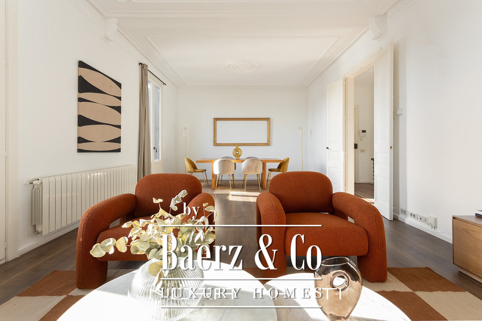 تمتد الشقة بمساحة 152 م²، وقد خضعت لعملية تجديد شاملة تجمع الحس العصري مع العناصر التاريخية الأصلية. في الداخل، تضفي المفروشات المعاصرة الفاخرة شعورًا بالوضوح والانسجام، وتحدد نمطًا لحياة حضرية راقية وهادئة. تضم الشقة ثلاث غرف نوم، تشمل غرفة مزدوجة وغرفتين فرديتين، كما تحتوي على حمامين، لتوفر توازنًا بين المساحات الخاصة والاجتماعية. تملأ النوافذ العالية، التي تميز الحقبة المعمارية، غرفة المعيشة بفيض من الضوء الطبيعي، يعززه الاتجاه المناسب ودفء الأرضيات الباركيه. كما تضيف المطبخ المجهز بالكامل مع زاوية إفطار راحة إضافية لروتين الحياة اليومية.