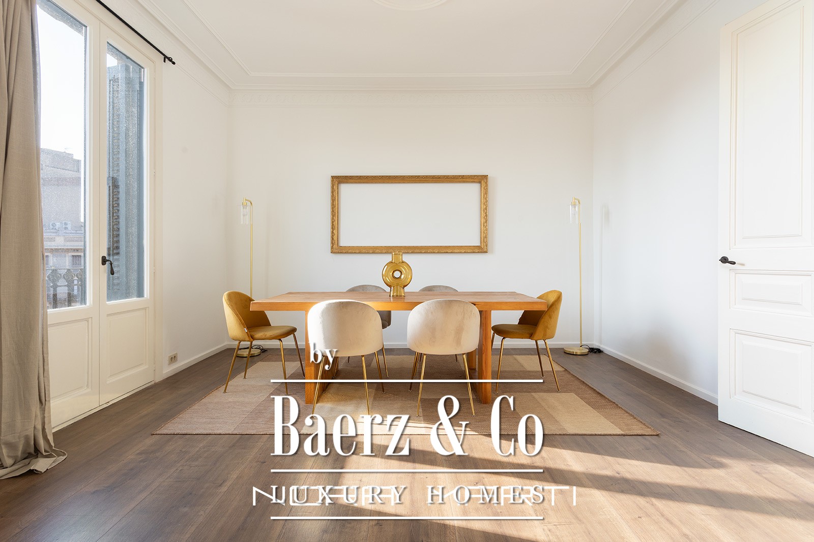 تشمل المزايا التكييف والتدفئة المركزية عبر قنوات سقفية، مصعد وصول، ومفروشات منتقاة بعناية. يقع العنوان في موقع مثالي لعشاق المتاجر الحرفية والمعارض الفنية والمتاحف. مع شمول ضريبة العقار والمصاريف، توفر الشقة ملاذًا راقيًا وخاصًا في قلب برشلونة الثقافي.