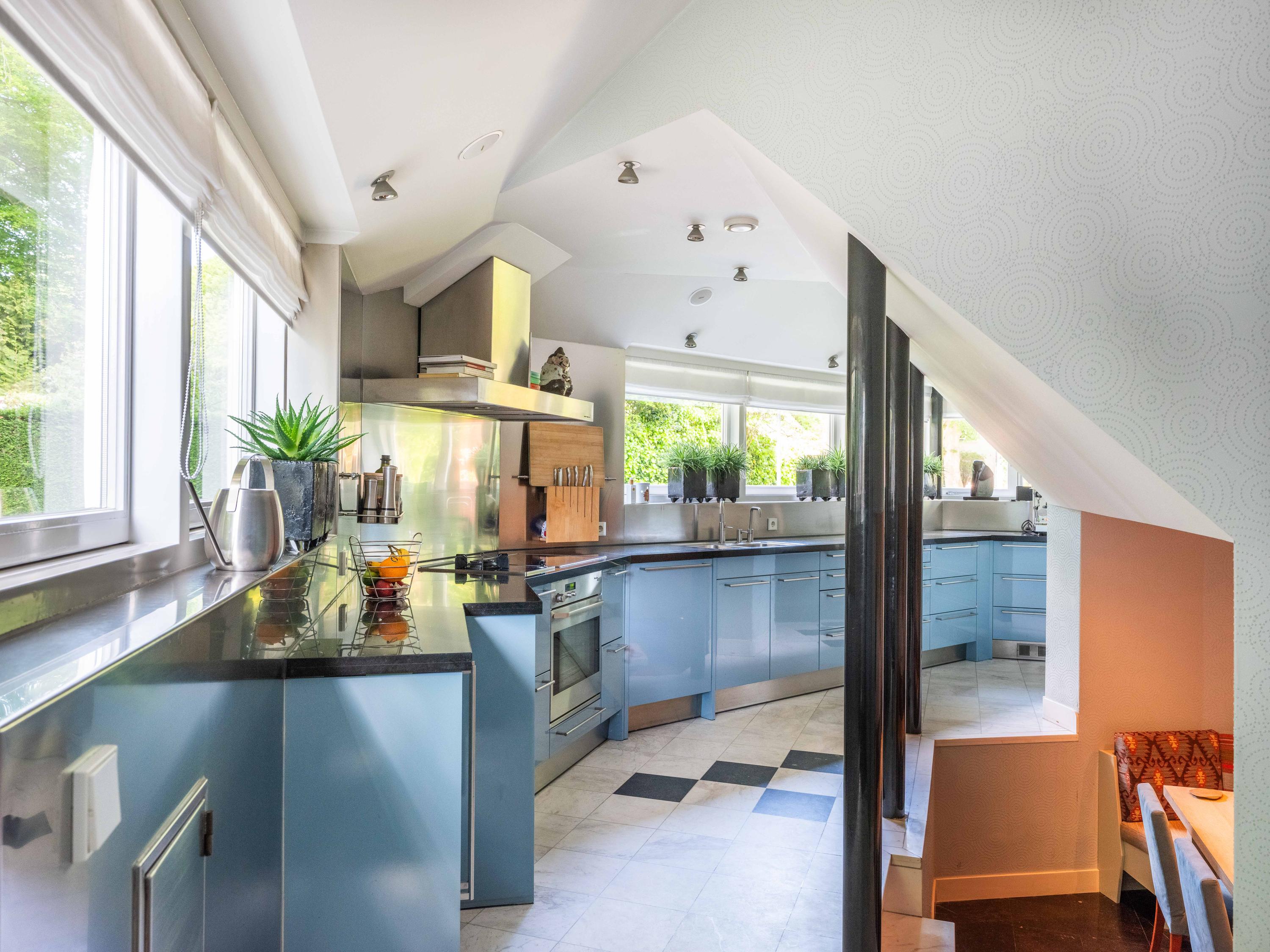 فيلا بيرغن معمارية طراز مدرسة أمستردام تحتل موقعاً بارزاً عند مدخل حديقة ميرويك، إحدى أكثر المناطق إثارة للخيال وأهمية معمارية في بيرغن. تبلغ مساحة الفيلا 204 م² وتُعرف باسم 'دي آرك'، وقد صممها جي إف ستال في عام 1917 وتُعد شهادة على الجمالية التعبيرية والحرفية لطراز مدرسة أمستردام، حيث تتميز واجهاتها بالطوب الدقيق التفاصيل من الطوب الأحمر وألواح الخشب السوداء.