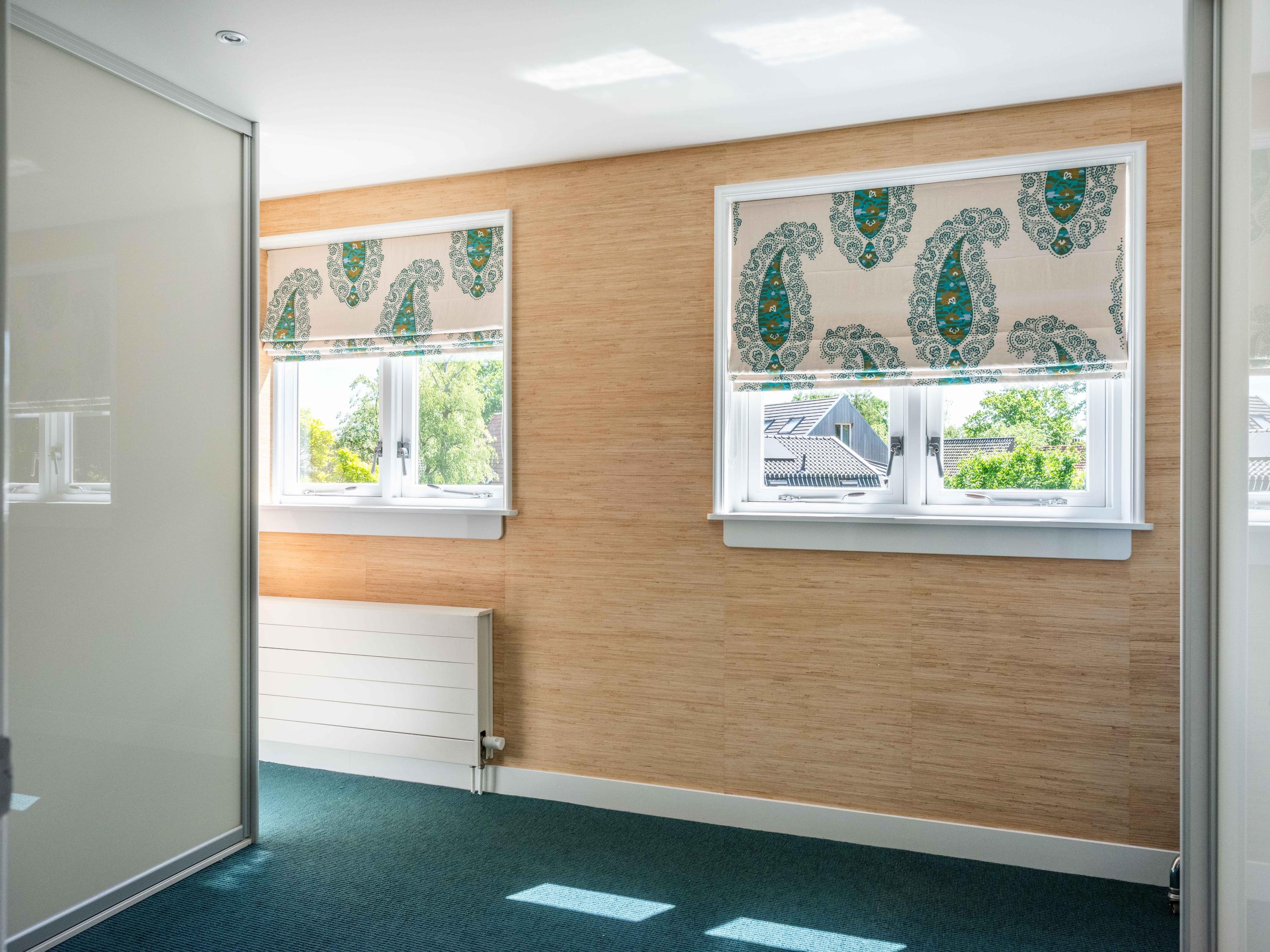 في الطابق العلوي، تنتظر ثلاث غرف نوم واسعة، منها جناح رئيسي مع مدفأة غاز وغرفة ملابس وشرفة تطل على الحديقة الخضراء، بالإضافة إلى حمامين؛ أحدهما بحوض استحمام ودش وحوض عريض، والآخر أكثر حميمية.