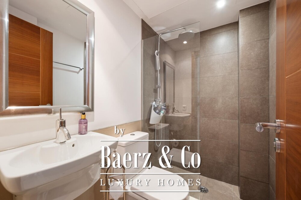 تغمر مساحات المعيشة والطعام بأشعة الضوء الطبيعي، وتفتح مباشرة على شرفة فسيحة توازن بين الهدوء الداخلي وارتباط المسكن بالطبيعة الخارجية. تبرز المطبخ المفتوح، المجهز بأجهزة حديثة والوصول المباشر إلى المساحة الخاصة بالحديقة، تناغم المساحات في جميع أرجاء العقار. يضفي الأثاث المصمم عالي الجودة شخصية فريدة للداخل، بينما تعزز الأرضيات الحجرية والسيراميك أناقة دائمة غير متكلفة.
