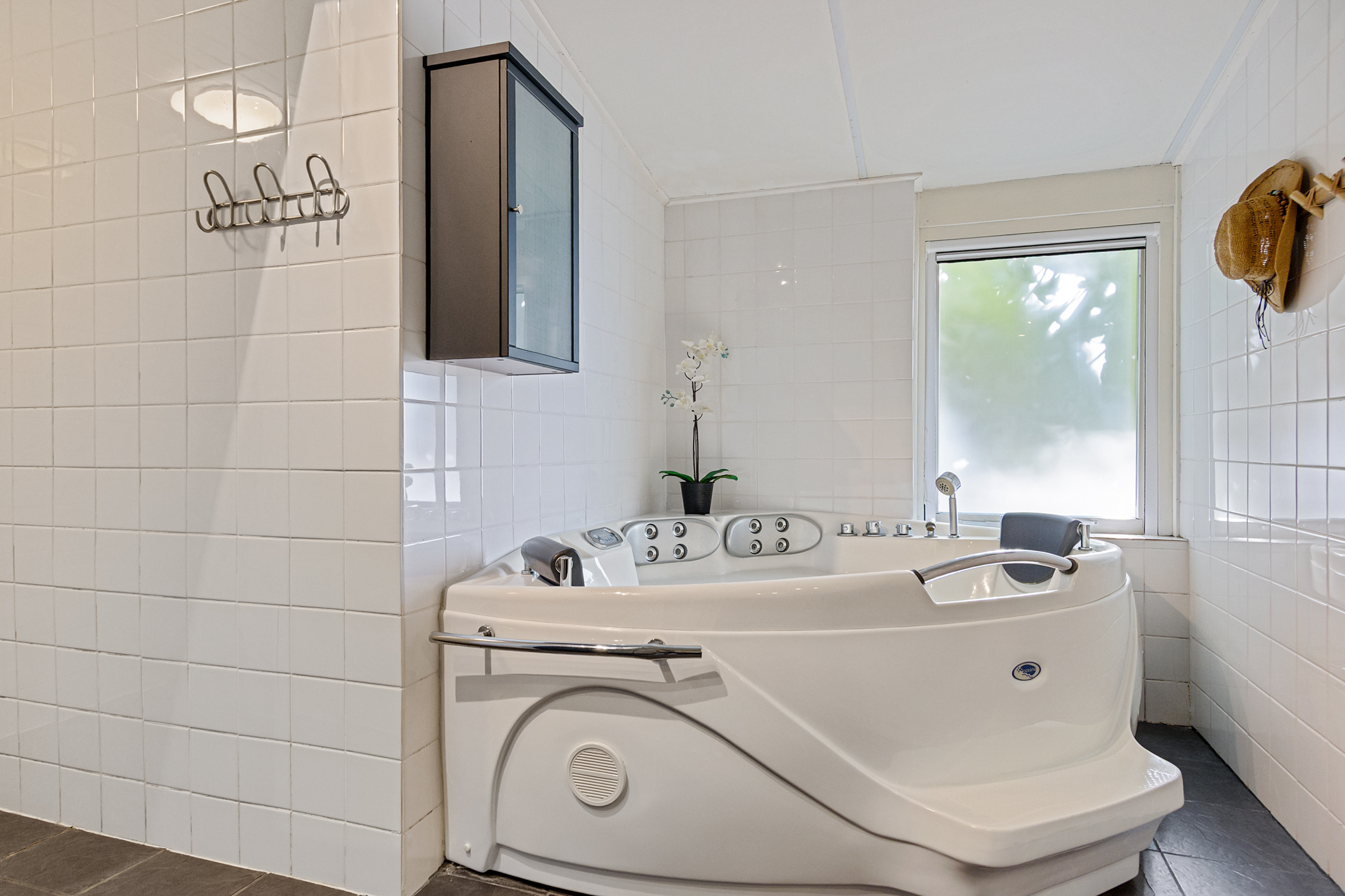 تم توسيع المنزل ليشمل مطبخاً-غرفة طعام مضيئة، وغرفة نوم رئيسية في الطابق الأرضي، وحماماً مجهزاً جيداً مع دش بدون حاجز، وحوض استحمام جاكوزي، وحوض مزدوج، وساونا. يضيف غرفة للخدمات العامة الفسيحة ومنطقة للهوايات متعددة الاستخدامات مزيداً من المرونة. في الطابق العلوي، توفر غرفتا نوم إضافيتان—لكلٍ منهما نافذة علوية—الراحة والإطلالات، وتضم إحداهما دشاً داخلياً وحوض غسيل ومرحاضاً.