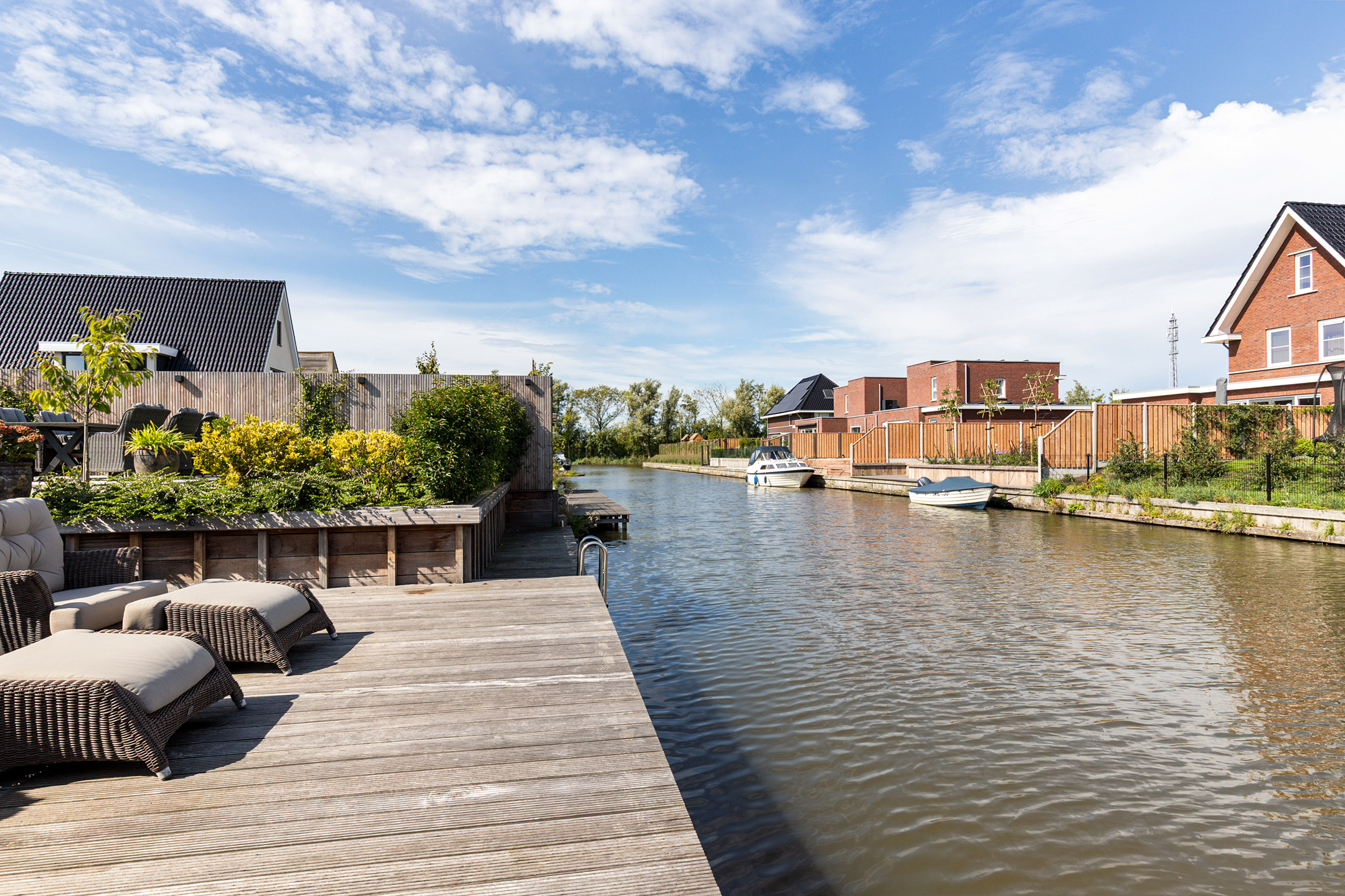 تتميز الجناح الرئيسي بغرفة ملابس منفصلة، تكملها تفاصيل مستوحاة من الفنادق البوتيكية في الحمام. توفر الطابق الثاني الواسع، المُضاء بسقفية Velux كبيرة، إمكانية إضافة غرف نوم أخرى أو مكتب خاص. يمتد العقار على قطعة أرض مساحتها 600 م²، وتزدان بالنباتات الناضجة، والشرفات الرحبة، ورصيف صلب بطول 15 مترًا، يتيح الوصول المباشر إلى المسطحات المائية المفتوحة. تتضافر وسائل الراحة، مثل الإنترنت بالألياف الضوئية، وموقف سيارات مزدوج، ومساحة تخزين آمنة، لتجمع بين العملية والأناقة. تجمع البيئة المحيطة بين الخصوصية والهدوء وسط القنوات الخضراء ومسارات المشي، وكل ذلك على مسافة قصيرة من مركز Franeker التاريخي، ومحطة القطار، وغنى الثقافة في مقاطعة Frisian Eleven Cities. توفر هذه الفيلا الفاخرة المعروضة للبيع في Franeker اندماجًا نادرًا بين الراحة الحديثة، والنزاهة المعمارية، ونمط الحياة المتصل بالماء.