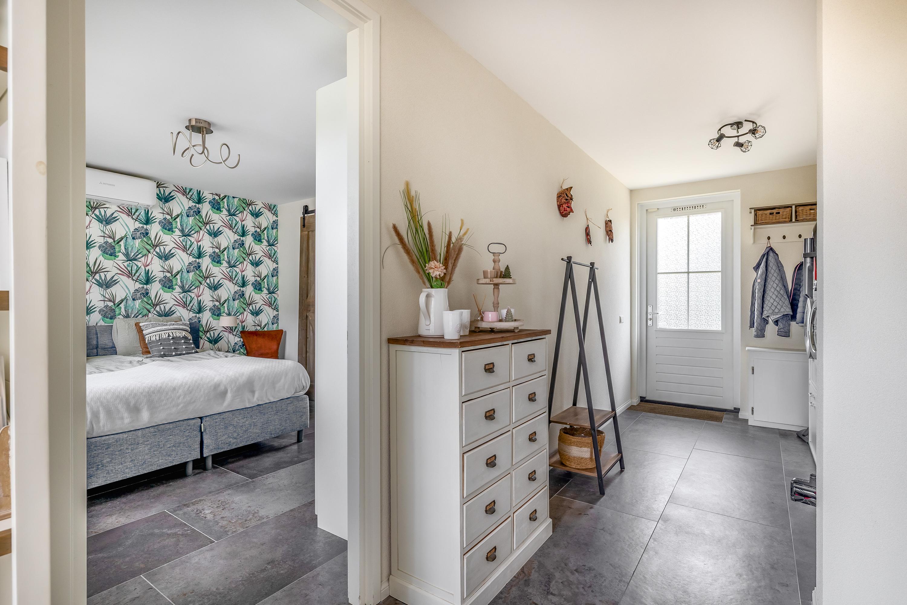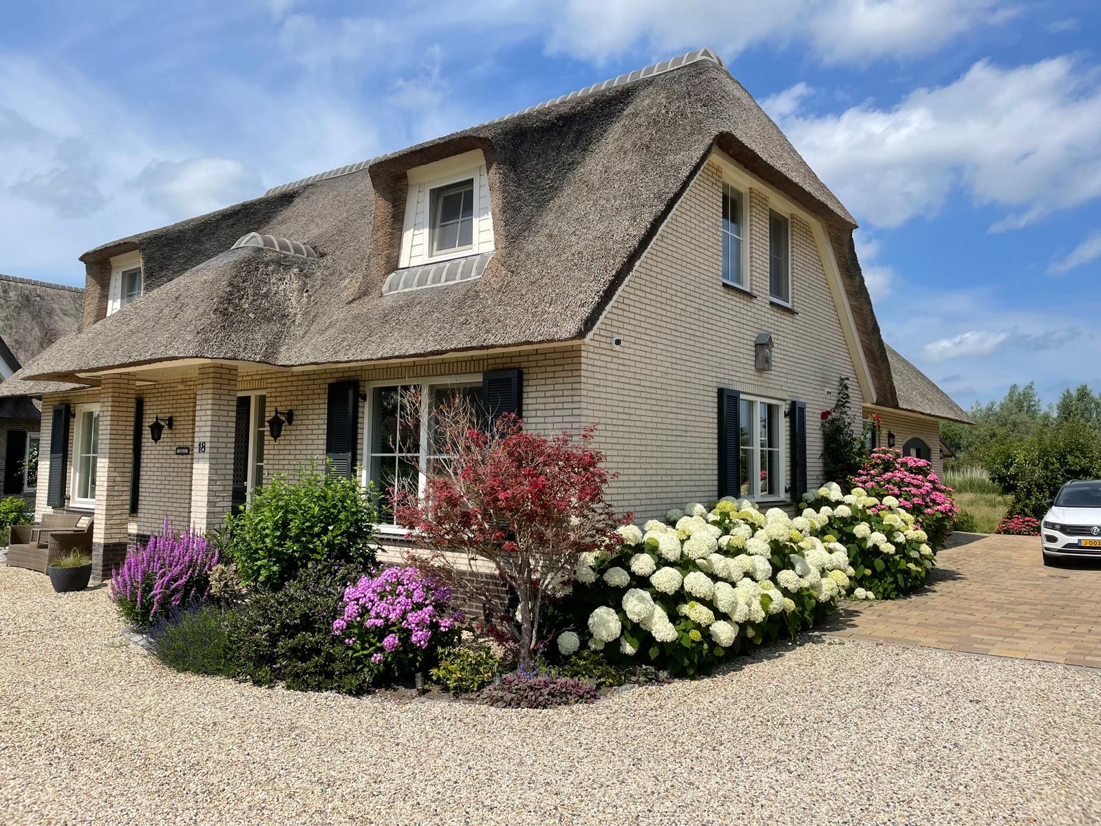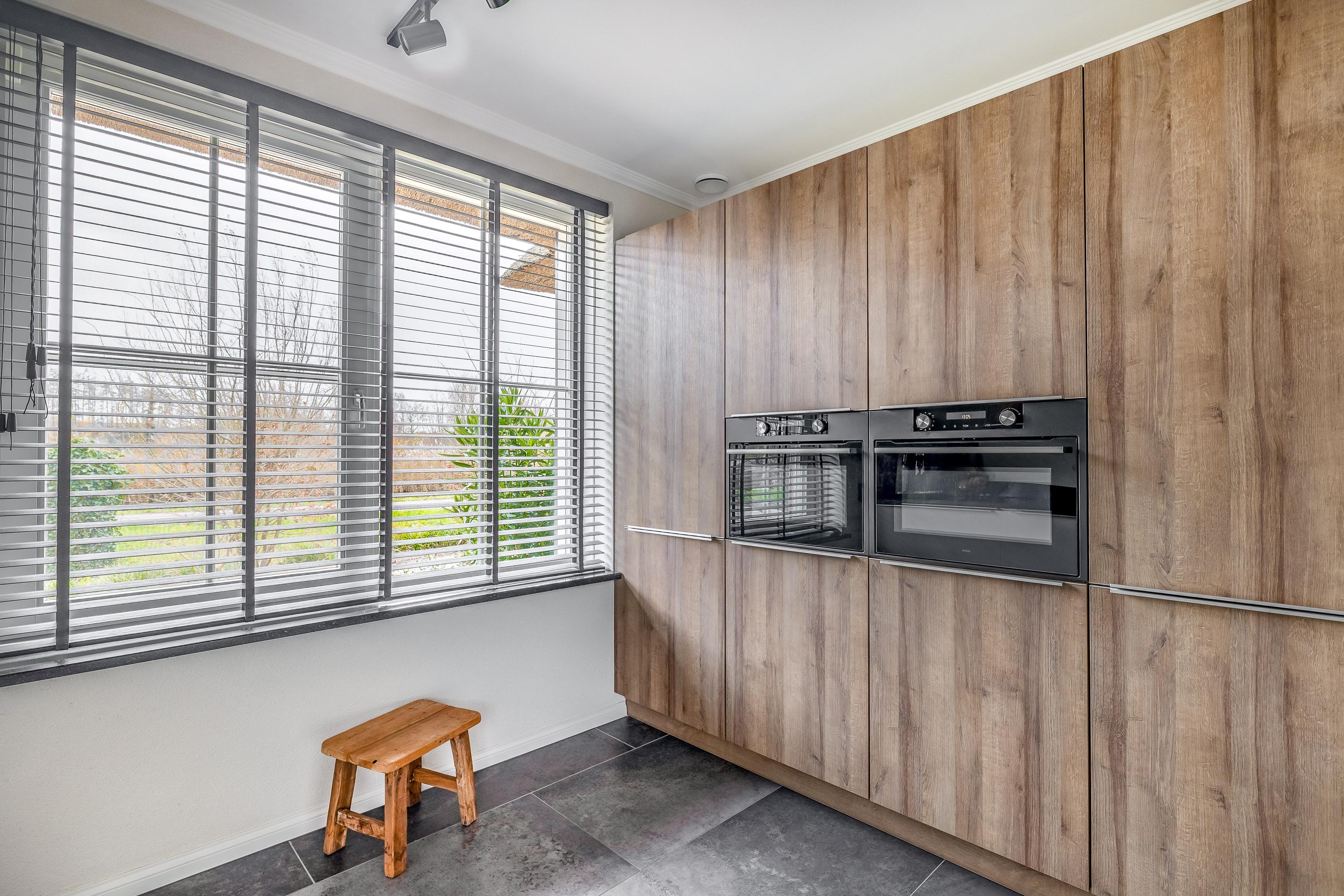 منذ الوصول، يضفي السقف المصنوع من القش والتصميم الخارجي المنسق إحساسًا بالهدوء. في الداخل، ينتشر الضوء بحرية من خلال النوافذ الواسعة، ليضيء منطقة المعيشة المجددة المزودة بتدفئة أرضية وموقد غاز. المطبخ المفتوح مجهز بالكامل مع سطح عمل مركب، وموقد تحريض، وأجهزة منزلية فاخرة. جناح في الطابق الأرضي يوفّر إمكانية العيش بمستوى واحد بسهولة، مع خزائن ملابس مخصصة وحمام داخلي فخم تم تحديثه في عام 2022.