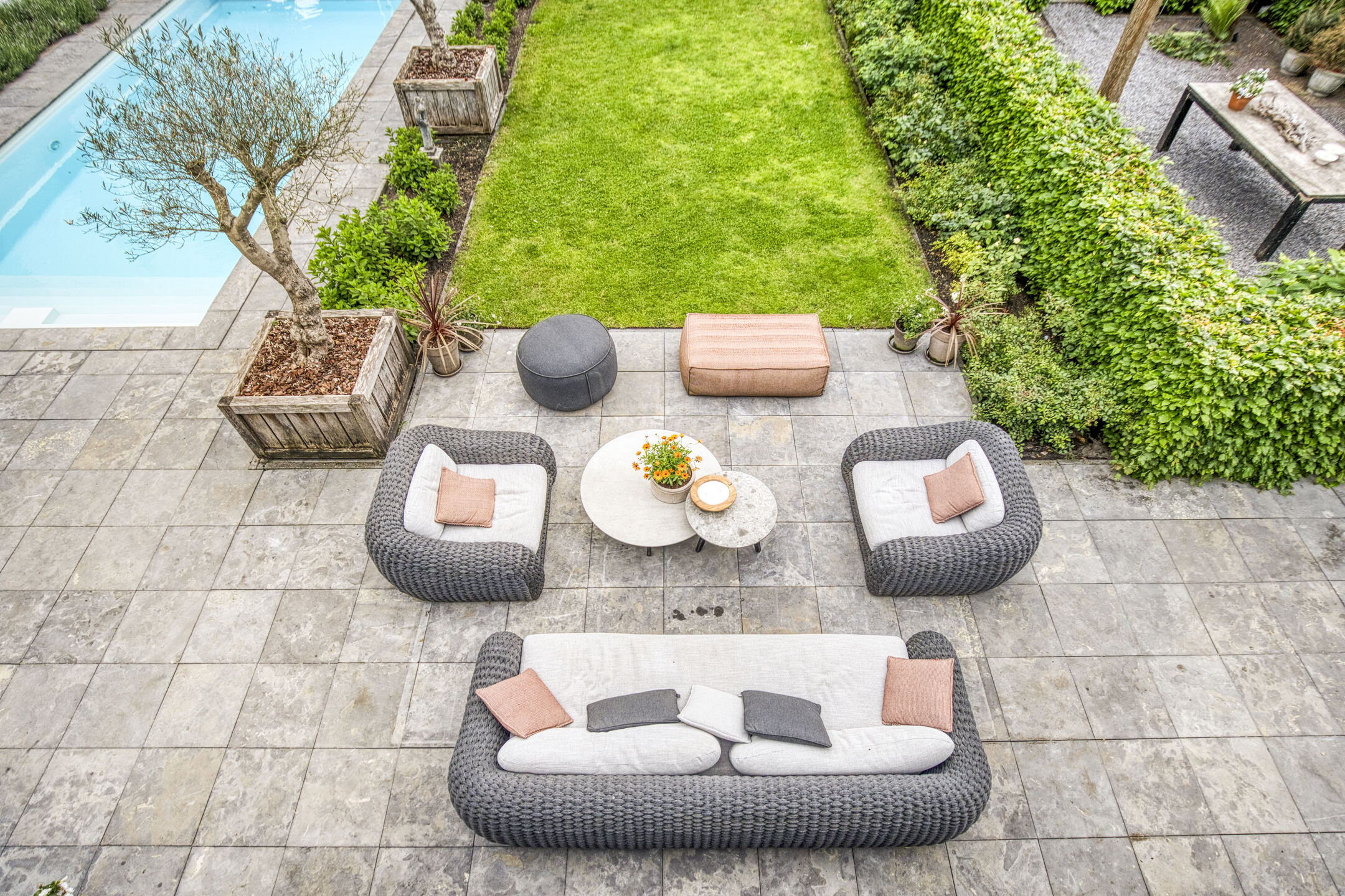 De absolute blikvanger? Het riante zwembad met een stijlvol poolhouse met omkleedruimte, veranda en een volledig geautomatiseerde technische pomp/filter- installatie t.b.v. het zwembad en sproei-installatie t.b.v. de tuin. Zo heeft u nergens omkijken naar, enkel genieten.