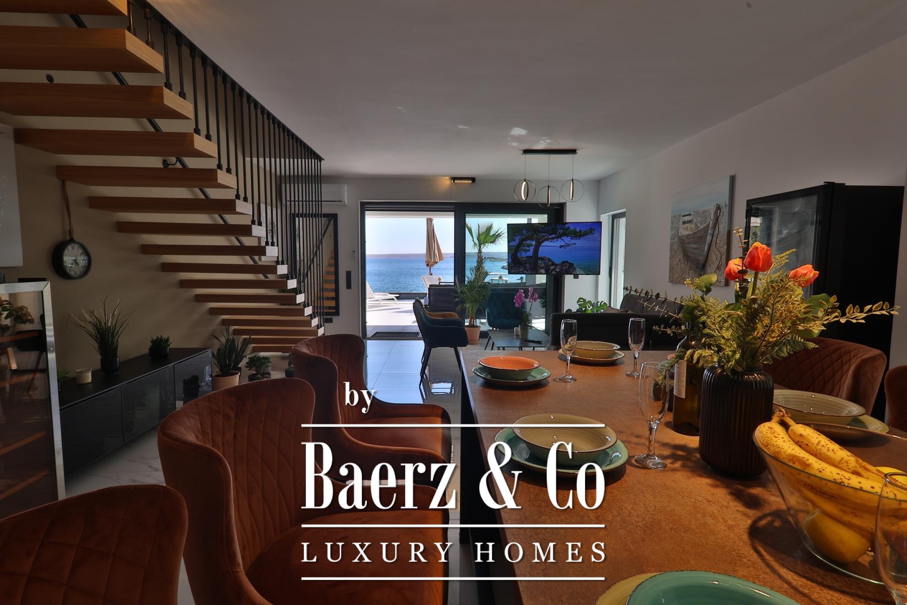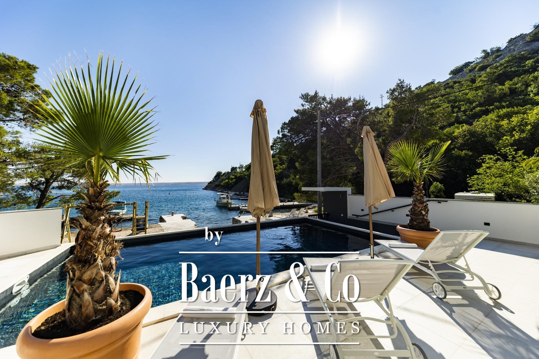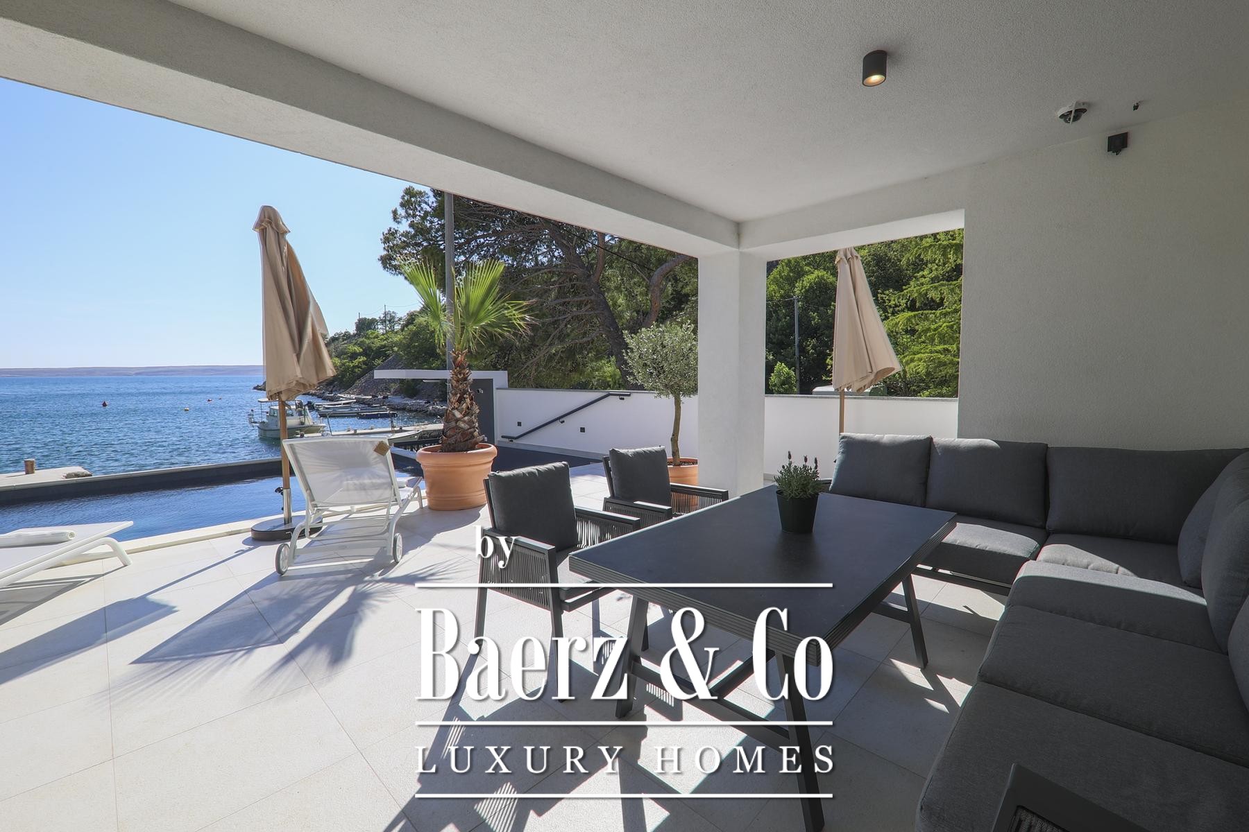 تتألق النوافذ الزجاجية الواسعة والعازلة بثلاث طبقات بدخول الضوء الطبيعي وإطلالات مؤطرة على الأدرياتيكي، بينما توفر التدفئة الأرضية والموقد دفئًا وهدوءًا طوال العام. يمتد الفضاء الرئيسي بتناسق أنيق ليشمل مطبخًا عصريًا مصممًا لسهولة الاستخدام والرقي معًا. تدعو المساحات الخارجية إلى استمتاع هادئ بجانب المسبح بمياه البحر الذي تبلغ مساحته 32 مترًا مربعًا، أو في الجاكوزي أو الساونا أو صالة الألعاب الخاصة، مع منفذ مباشر إلى البحر ورصيف يشمل نظامًا لإنزال القوارب لأصحاب اليخوت.
