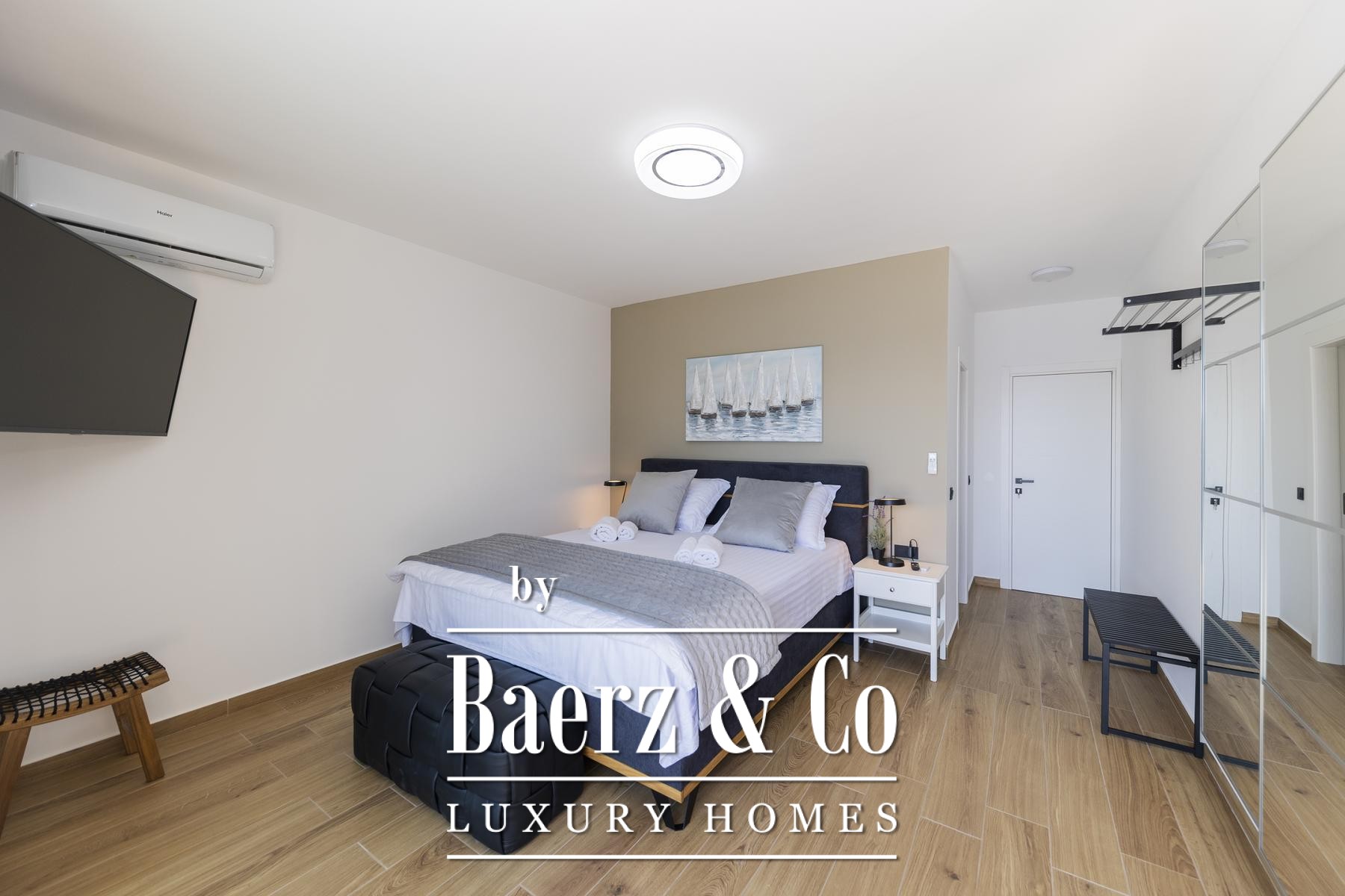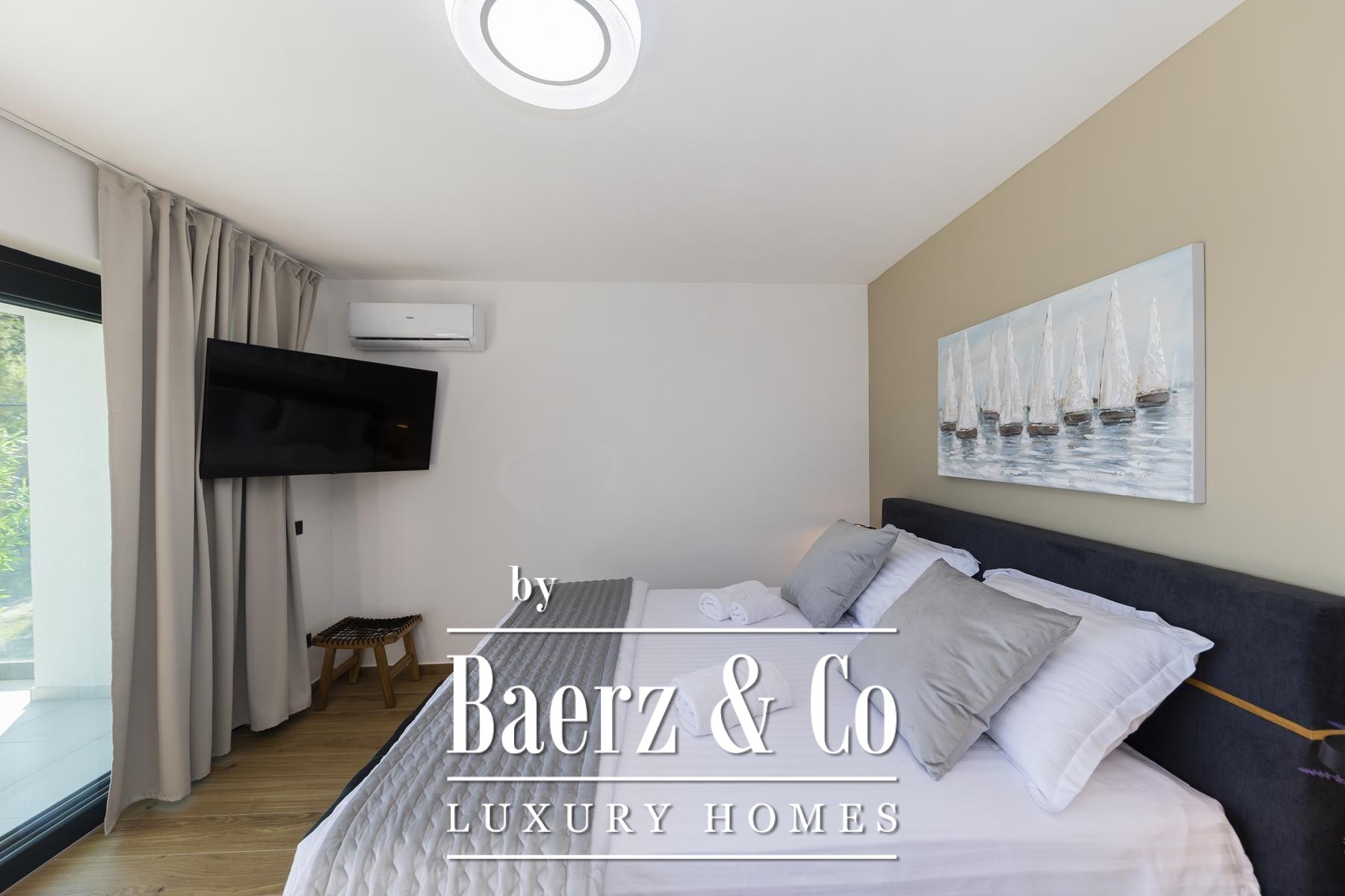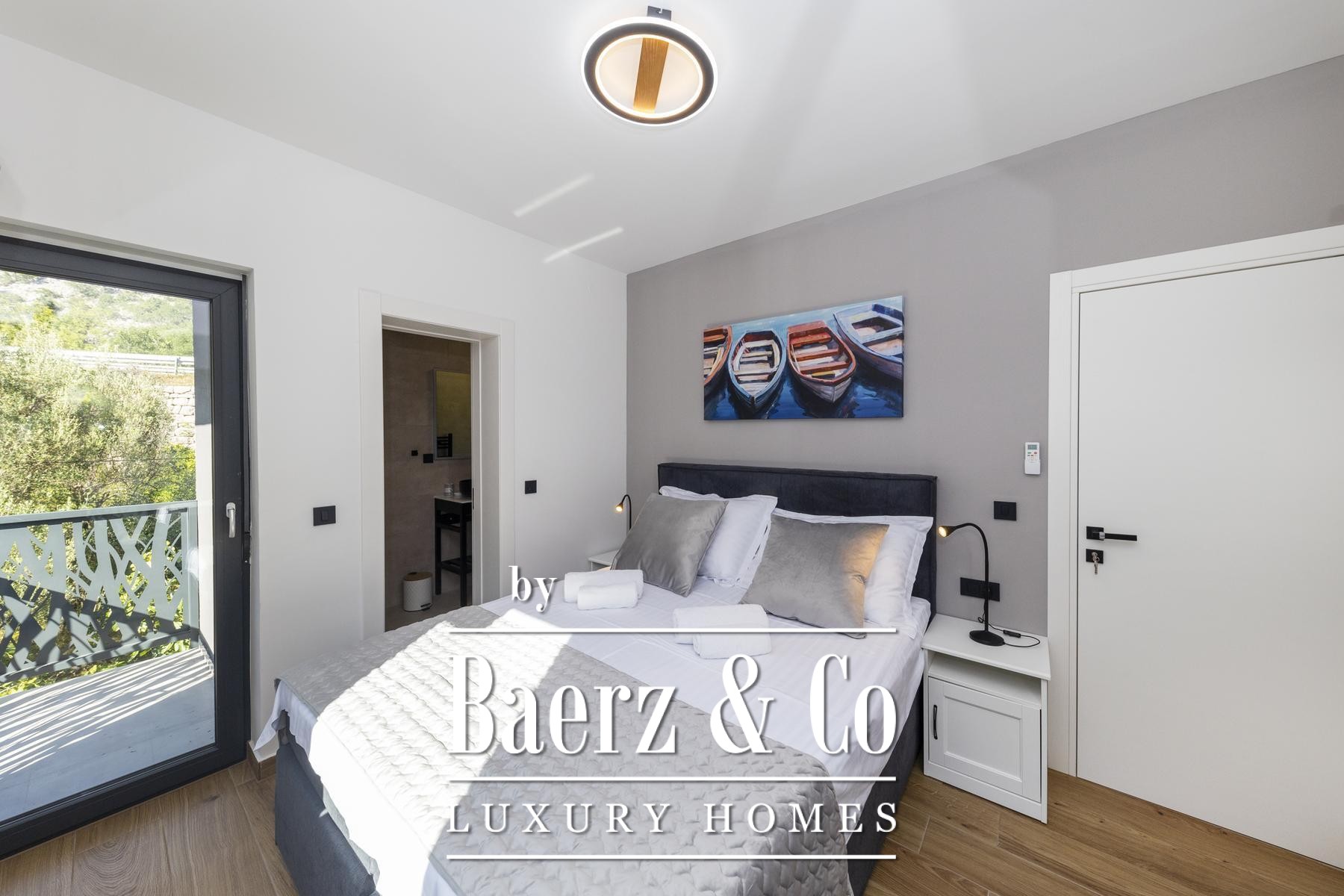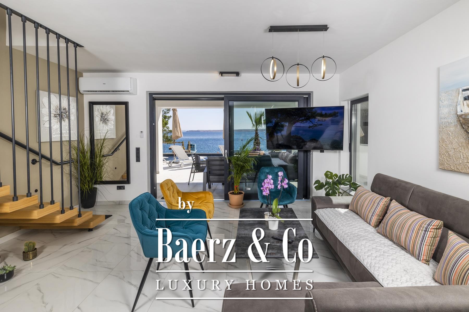 تتألق النوافذ الزجاجية الواسعة والعازلة بثلاث طبقات بدخول الضوء الطبيعي وإطلالات مؤطرة على الأدرياتيكي، بينما توفر التدفئة الأرضية والموقد دفئًا وهدوءًا طوال العام. يمتد الفضاء الرئيسي بتناسق أنيق ليشمل مطبخًا عصريًا مصممًا لسهولة الاستخدام والرقي معًا. تدعو المساحات الخارجية إلى استمتاع هادئ بجانب المسبح بمياه البحر الذي تبلغ مساحته 32 مترًا مربعًا، أو في الجاكوزي أو الساونا أو صالة الألعاب الخاصة، مع منفذ مباشر إلى البحر ورصيف يشمل نظامًا لإنزال القوارب لأصحاب اليخوت.