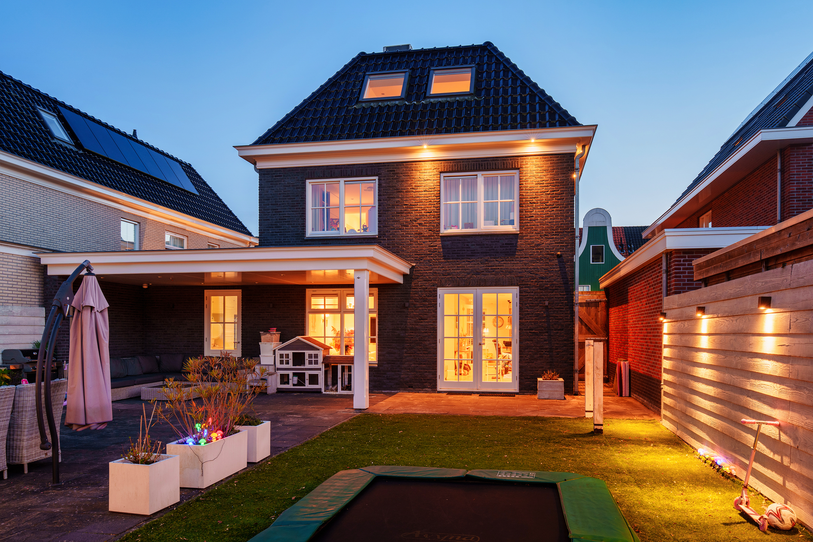 يوفر المنزل خمس غرف نوم وحمامين موزعة على ثلاثة طوابق، وتكييف هواء، وتدفئة تحت الأرضية، وعزل عالي الجودة لضمان راحة في جميع المواسم. تشمل المرافق مرآبًا يستخدم حاليًا كغرفة خدمية أو غسيل، موقف سيارات مغطى، تهوية ميكانيكية، أنظمة أمنية، وكاميرات مراقبة. يقع المنزل على بعد دقائق من أمستردام ومنطقة الطبيعة هيت تويكسه، وهو ملاذ أنيق يوفر وصولًا ممتازًا إلى كل من الحياة الحضرية والطبيعة.
