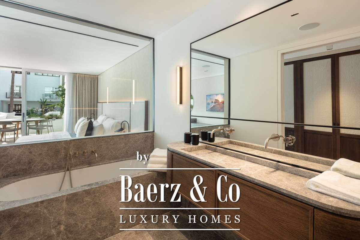 تقع شقة Marbella Golden Mile داخل منتجع Puente Romano حيث يشكل الضوء وهواء البحر بيئة راقية تتميز بالهدوء. تقدم هذه الشقة البالغة مساحتها 138 م² مساحة معيشة مفتوحة ومضيئة، وترتكز على أبواب زجاجية تمتد من الأرض حتى السقف، لتسمح للتراس وحدائق المجتمع والإطلالات الساحلية بالاندماج بسلاسة مع الداخل. يعكس تداخل الدرجات الحيادية والخشب الطبيعي الأرضية الطابع المتوسطي المحيط، ما يضفي أجواء من الهدوء في جميع الأنحاء الخاصة والعامة.