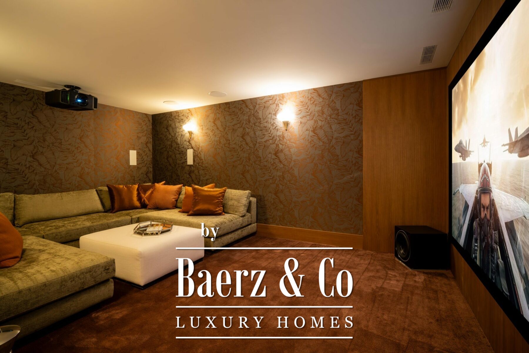 تتخلل النوافذ الممتدة من الأرض حتى السقف المساحة الداخلية البالغة ٩٥٨ م²، مما يغمر كل ركن بضوء طبيعي ناعم. يتجلى الاهتمام بالتفاصيل في جميع أنحاء المنزل، بدءًا من اختيار المفروشات المنتقاة بعناية وصولاً إلى الانسجام البديع بين مناطق المعيشة وتناول الطعام والمطبخ العصري المزود بجزيرة واسعة ومساحات تخزين وفيرة. تعزز مناطق الجلوس المتعددة والمطبخ الخارجي أسلوب المعيشة المتكامل بين الداخل والخارج، بما يتناسب مع الضيافة الراقية.