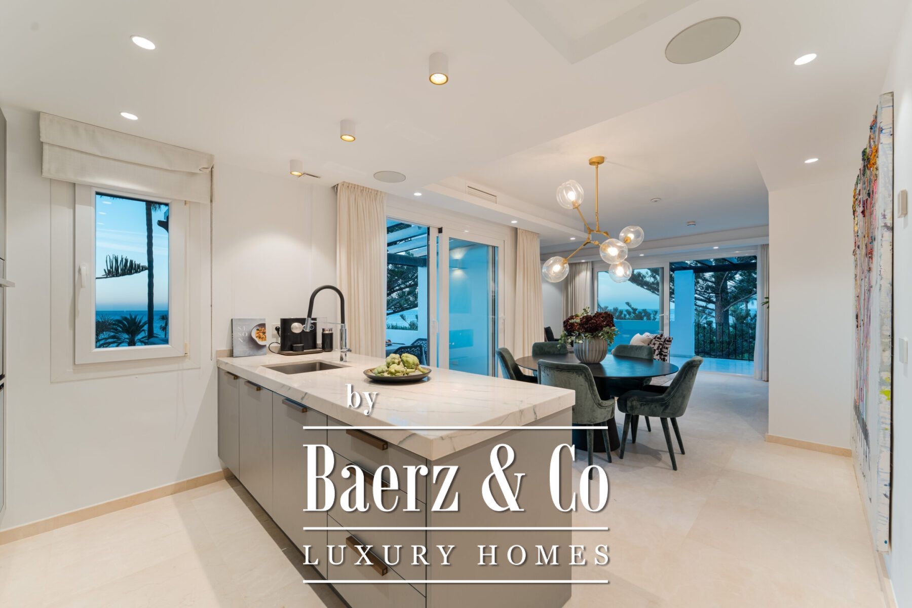 تشكل المطبخ المفتوح من Poggenpohl والمجهز بأجهزة NEFF قلب المنزل، حيث يتناغم الأداء العملي مع التصميم العصري. وتفتح منطقة المعيشة وتناول الطعام المليئة بالضوء على شرفة مواجهة للجنوب مع شوّاية مدمجة، ما يجعلها مثالية للقاءات وتناول الطعام في الهواء الطلق. أما الشرفة الغربية، التي يمكن الوصول إليها من الجناح الرئيسي وغرفة المعيشة، فتشكل مساحة للاسترخاء ولمشاهدة غروب الشمس وقضاء أمسيات متوسطية هادئة.