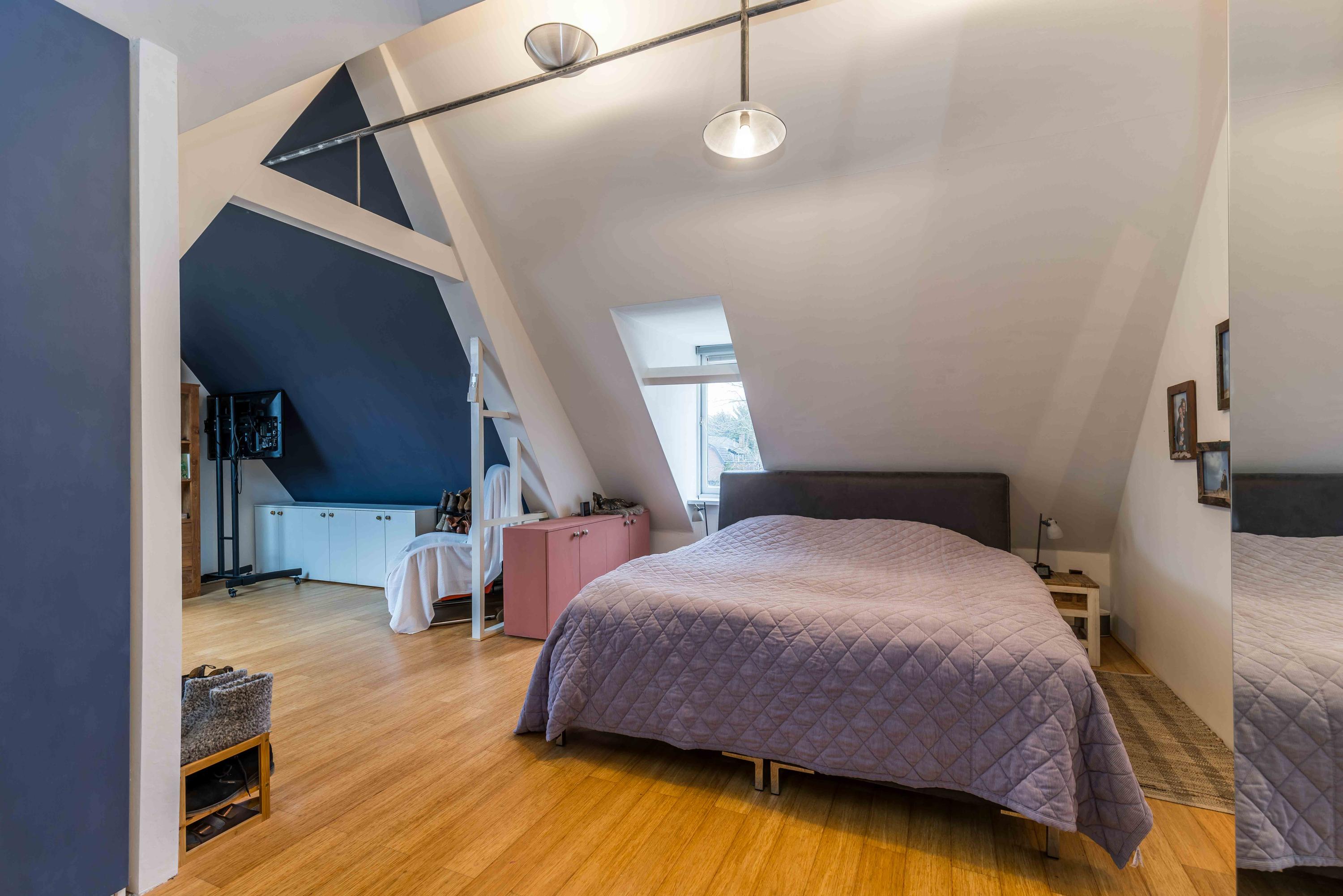 أربع غرف نوم وحمَّامان يوفران ملاذات خاصة. الجناح الرئيسي يحتوي على حمَّام خاص مع حوض استحمام ودش منفصل وإطلالة على الحديقة. من المزايا الإضافية قبو نبيذ وقبوَان بمساحة إجمالية 32 متر مربع، ومستودع خارجي، وسقيفة سيارات مع محطة شحن كهربائي، وأربعون لوحة شمسية تحقق تصنيف الطاقة A. الأراضي مزروعة بأسيجة وأشجار فاكهة وغابة غذائية، وتوفر عدة أماكن جلوس مشمسة وخصوصية تامة. سهولة الوصول إلى وسائل النقل والمتاجر وحدائق روتردام الخضراء تضمن وتيرة حياة متزنة ومطمئنة. تعكس هذه الفيلا الفاخرة المعروضة للبيع في روتردام ترميماً مدروساً وتصميماً فعالاً وحضوراً معمارياً دائماً.