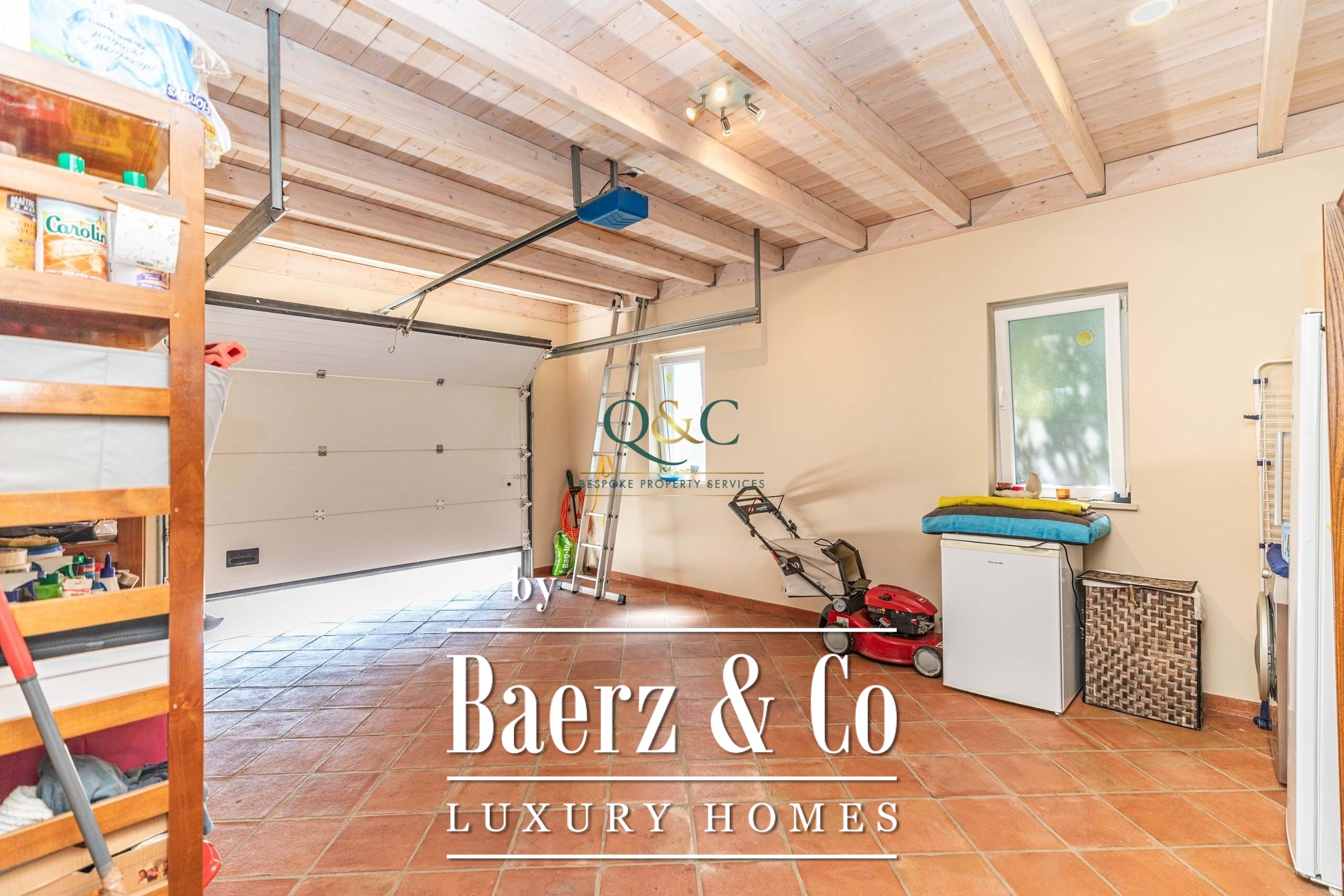 في الداخل، تصنع الأسقف العالية من الخشب الأبيض الصلب، والحمامات الحجرية، والجدران المبطنة بالطوب، والأرضيات الخزفية الحمراء، أجواءً دافئة أصيلة. تفتح غرفة المعيشة مباشرة على التراس والمسبح الذي يبلغ 9 × 4 أمتار، بينما يوفر جناح السفرة المفتوح والمطبخ المجهز محوراً للحياة اليومية. هناك غرفتا نوم فسيحتان، إحداهما بجناح داخلي، في الطابق الأرضي بالإضافة إلى حمام ومساحات تخزين وخزائن مدمجة. الطابق العلوي يضم الجناح الرئيسي مع إطلالة على الجبال والمسبح، وخزانتي ملابس، وحمام مزود بحوض استحمام ودش.