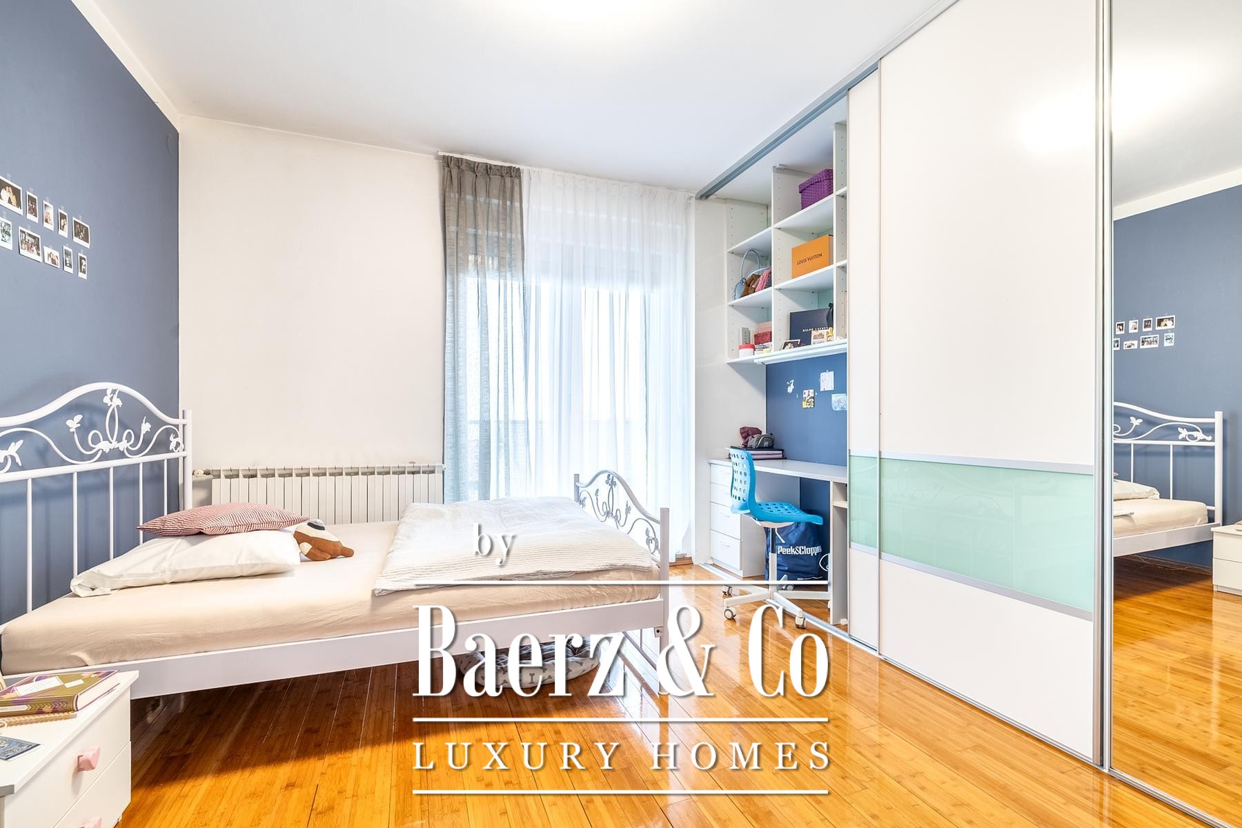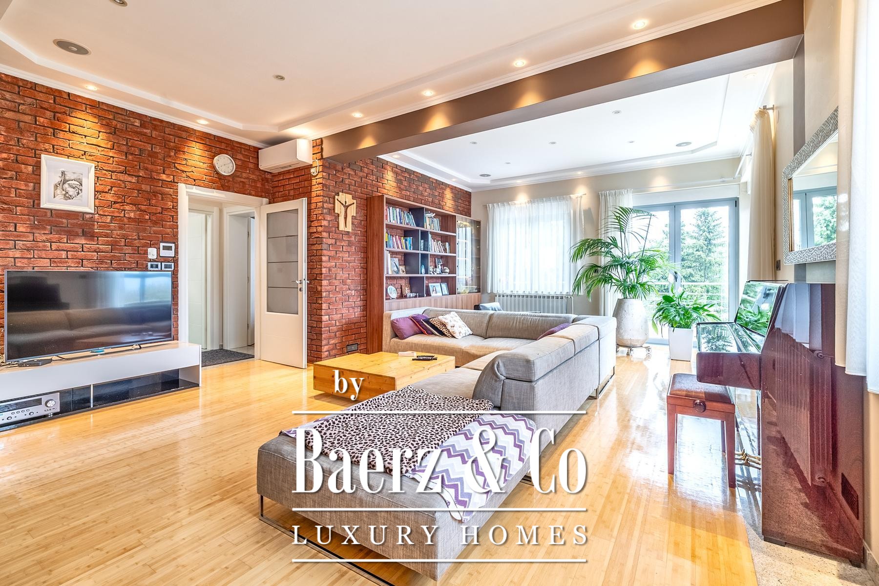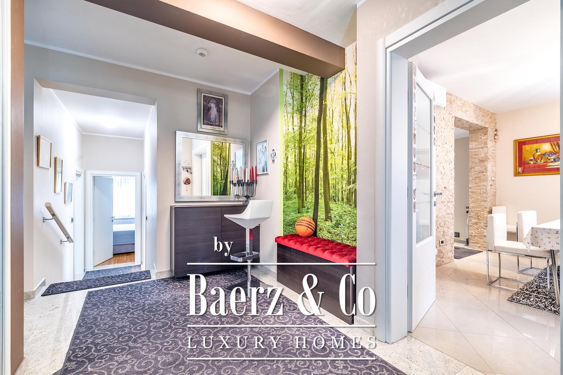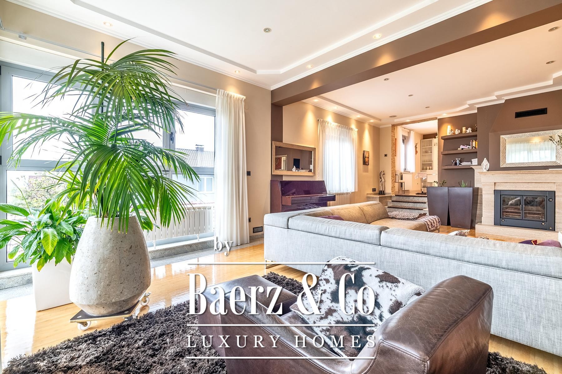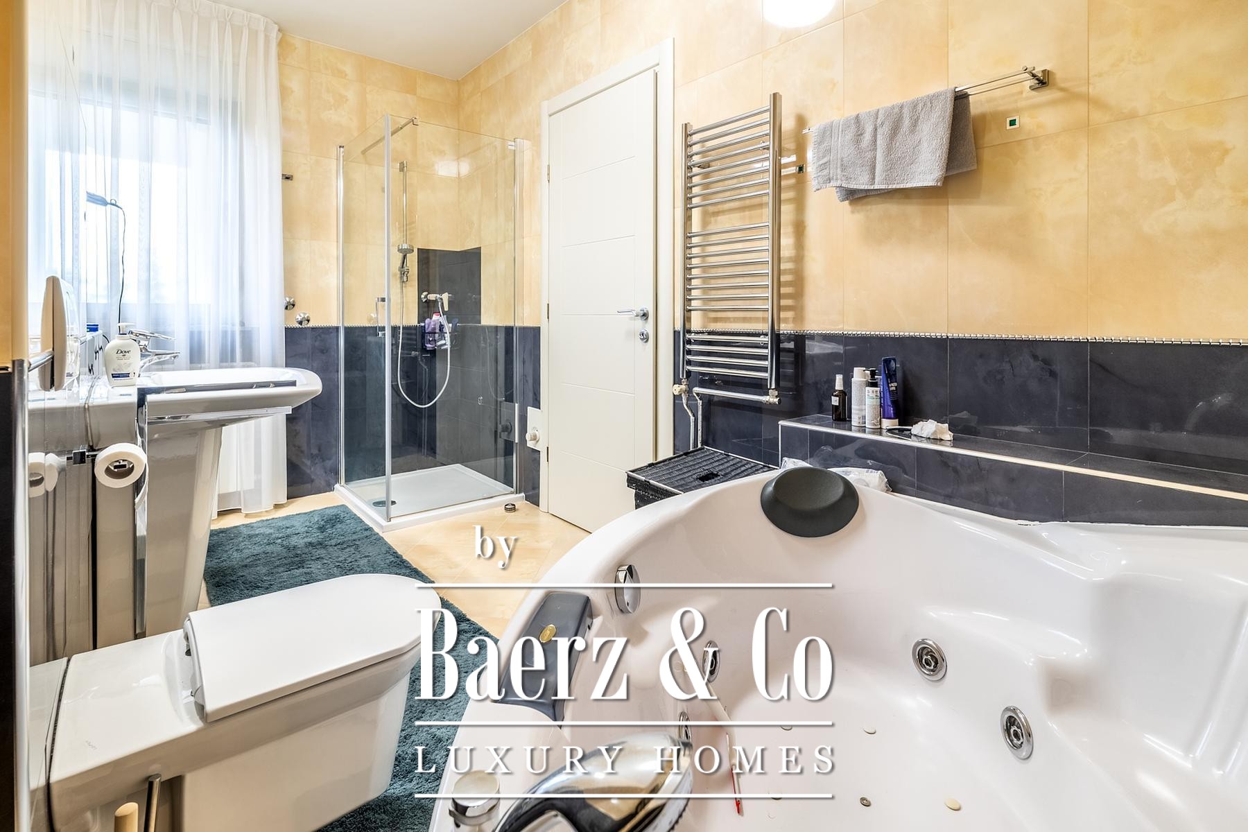 يستقبلك المنزل بمساحات داخلية مضيئة، وتوزيع عملي للغرف، وحديقة ذات تنسيق رائع تشجّع على اللعب والاسترخاء في آن واحد. يضم القبو مرآبًا وغرفة غلايات وقبو نبيذ وغرفة غسيل وساونا وخيارات متعددة للتخزين، ليجمع بين الفائدة والاستجمام الخاص. في الطابق الرئيسي، توفر غرفة المعيشة الرحبة، وغرفة المكتب أو الضيوف المنفصلة، والمطبخ المفتوح مع منطقة الطعام، والتراس، والخدمات المخصصة للضيوف، بيئة مثالية للتجمعات العائلية وممارسات الحياة اليومية. أما الطابق العلوي فيحتوي على ثلاث غرف نوم وحمامين وشرفة خاصة وتراس آخر توفّر مساحات هادئة وفسيحة.