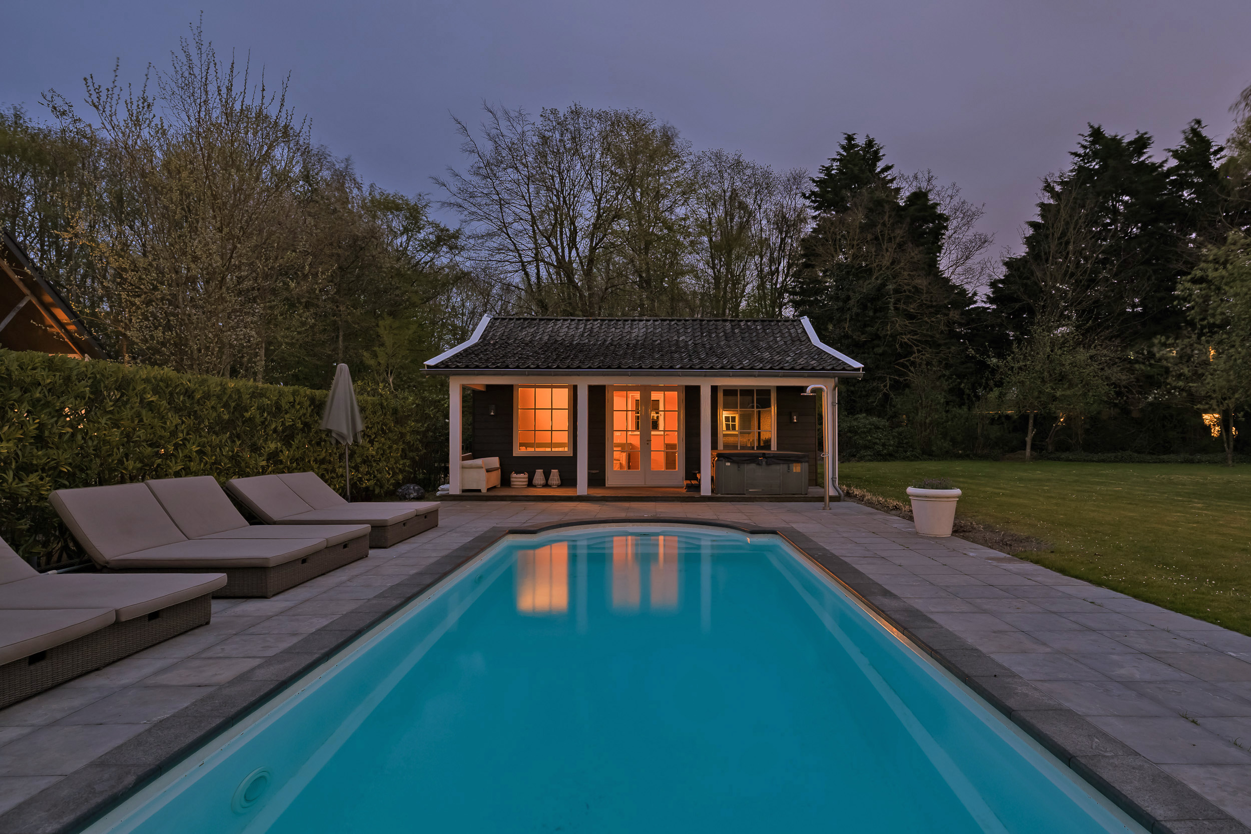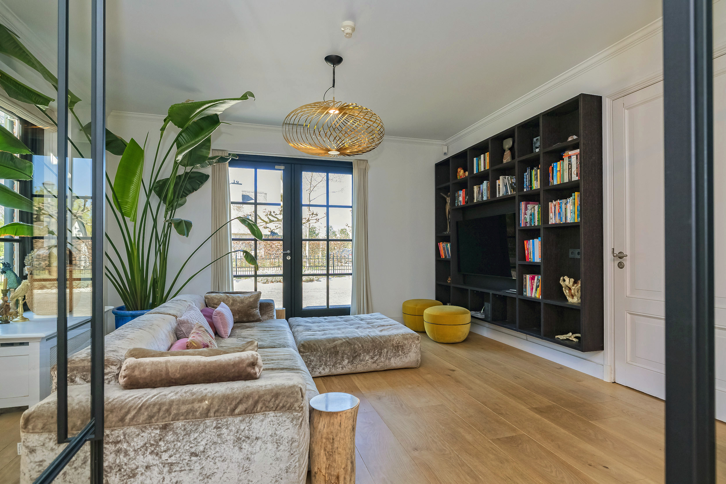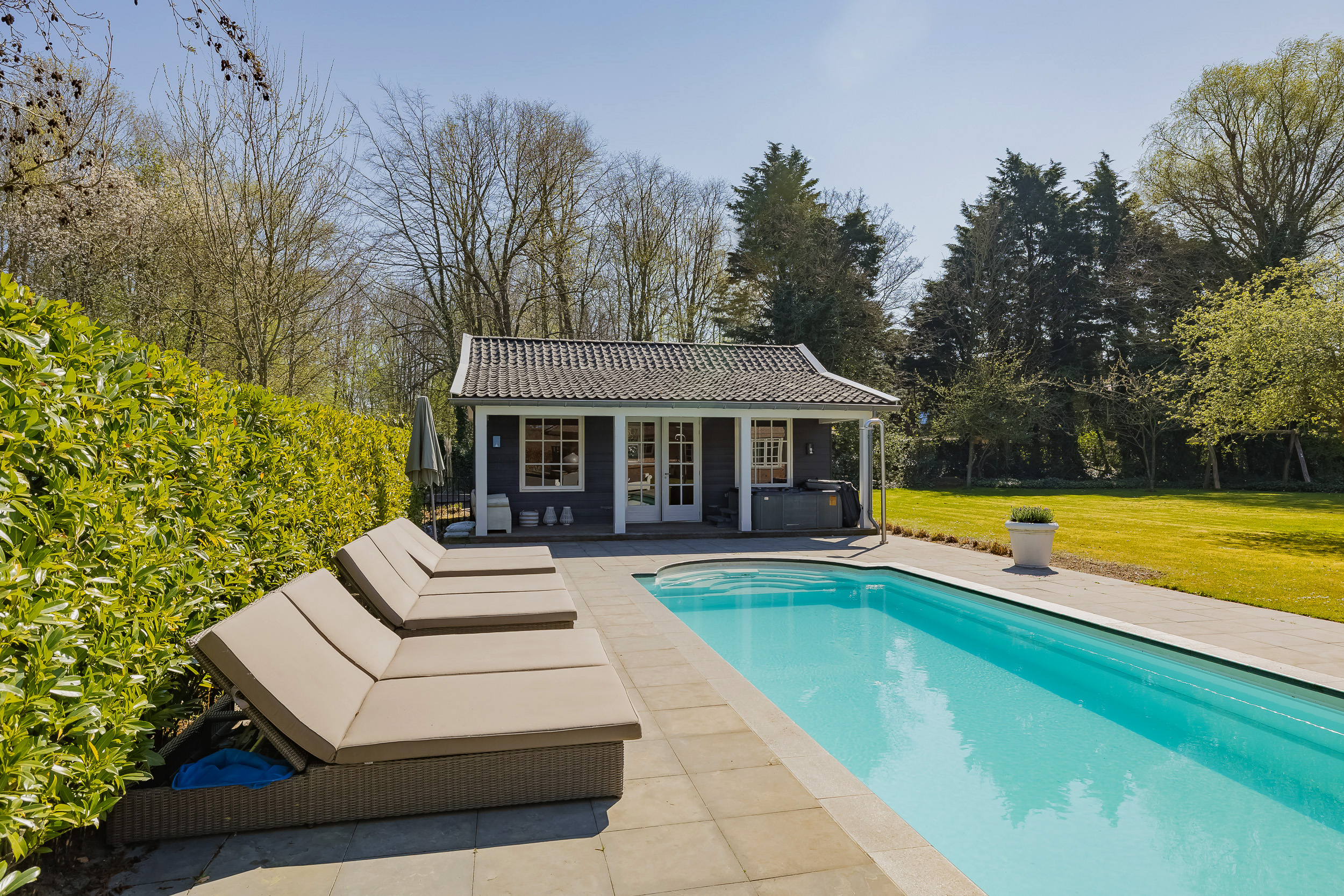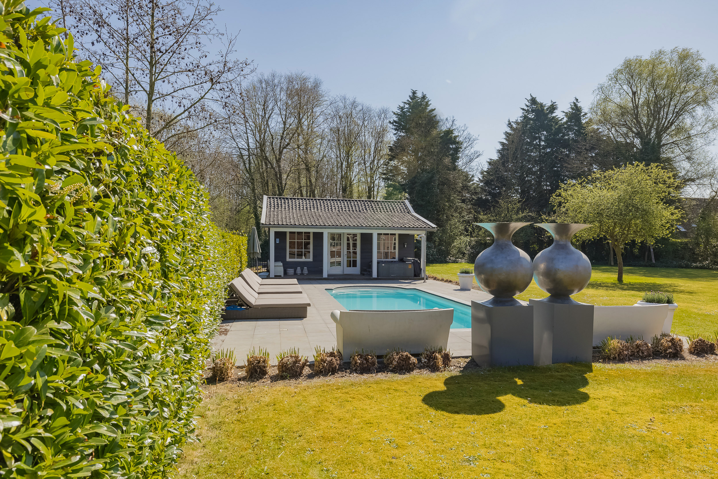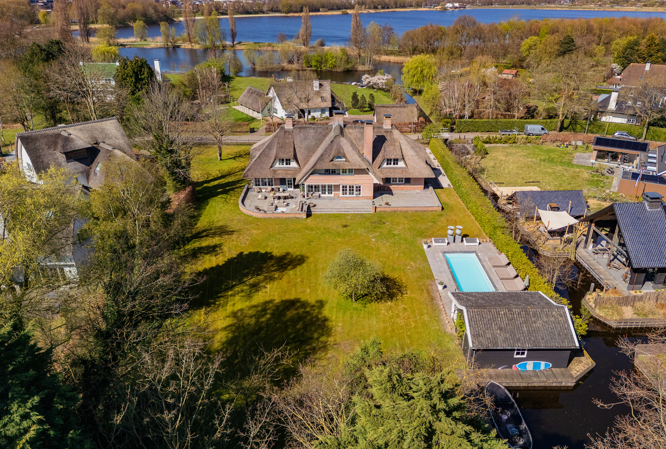 في الخارج، تبقى الخصوصية والاسترخاء دون انقطاع، مع حديقة ناضجة تحيط بالمكان، ومسبح مدفأ مع بيت مسبح مجاور، وتراسات فسيحة في الواجهة والخلف. يحيط الماء بالعقار الذي يضم رصيفًا خاصًا يتسع لثلاثة قوارب، ما يمنح امتيازًا للوصول السهل إلى كاجربلاسن وقنوات مدينة لايدن. هناك مساحة واسعة للمواقف، ومدخل كهربائي آمن، وكراج مزدوج بمساحة 70 مترًا مربعًا.