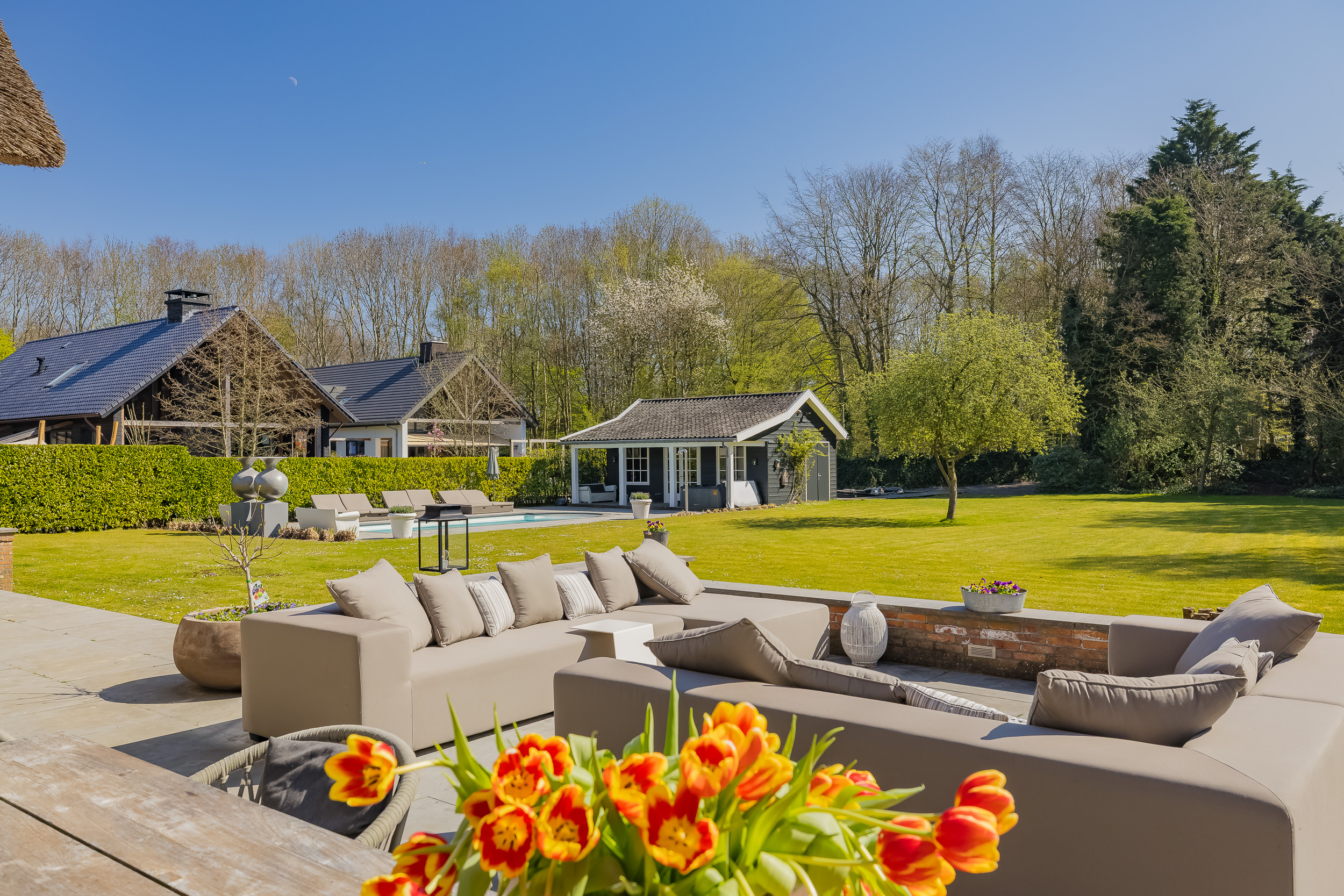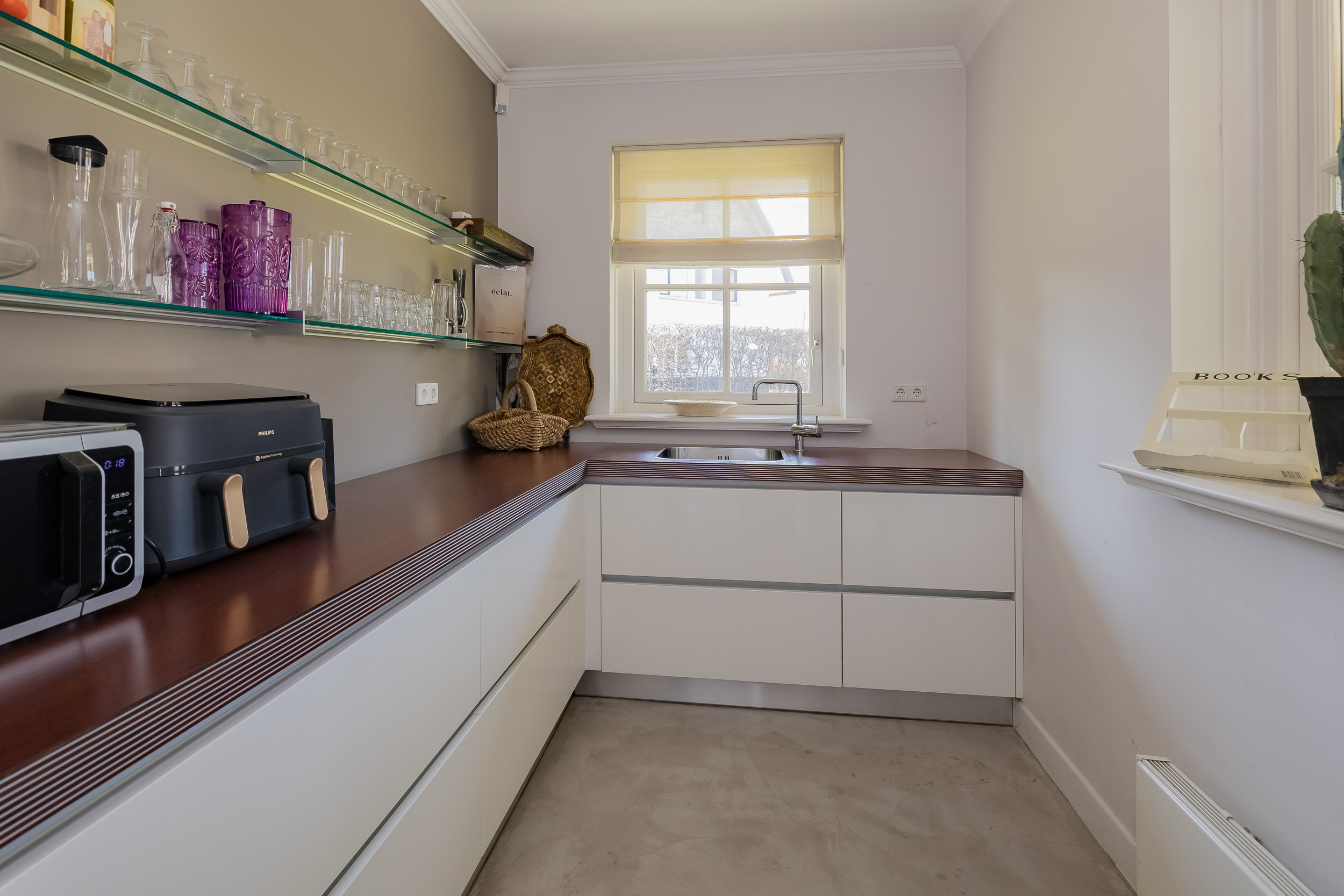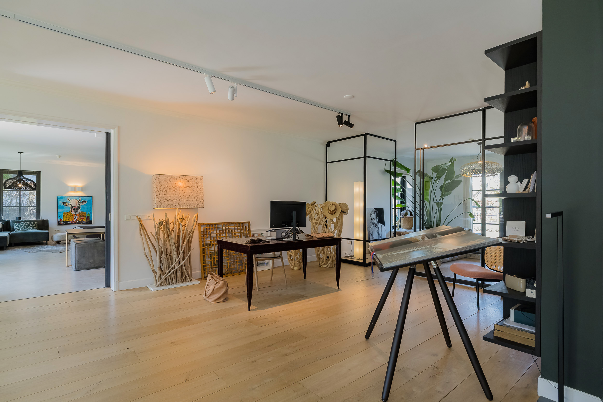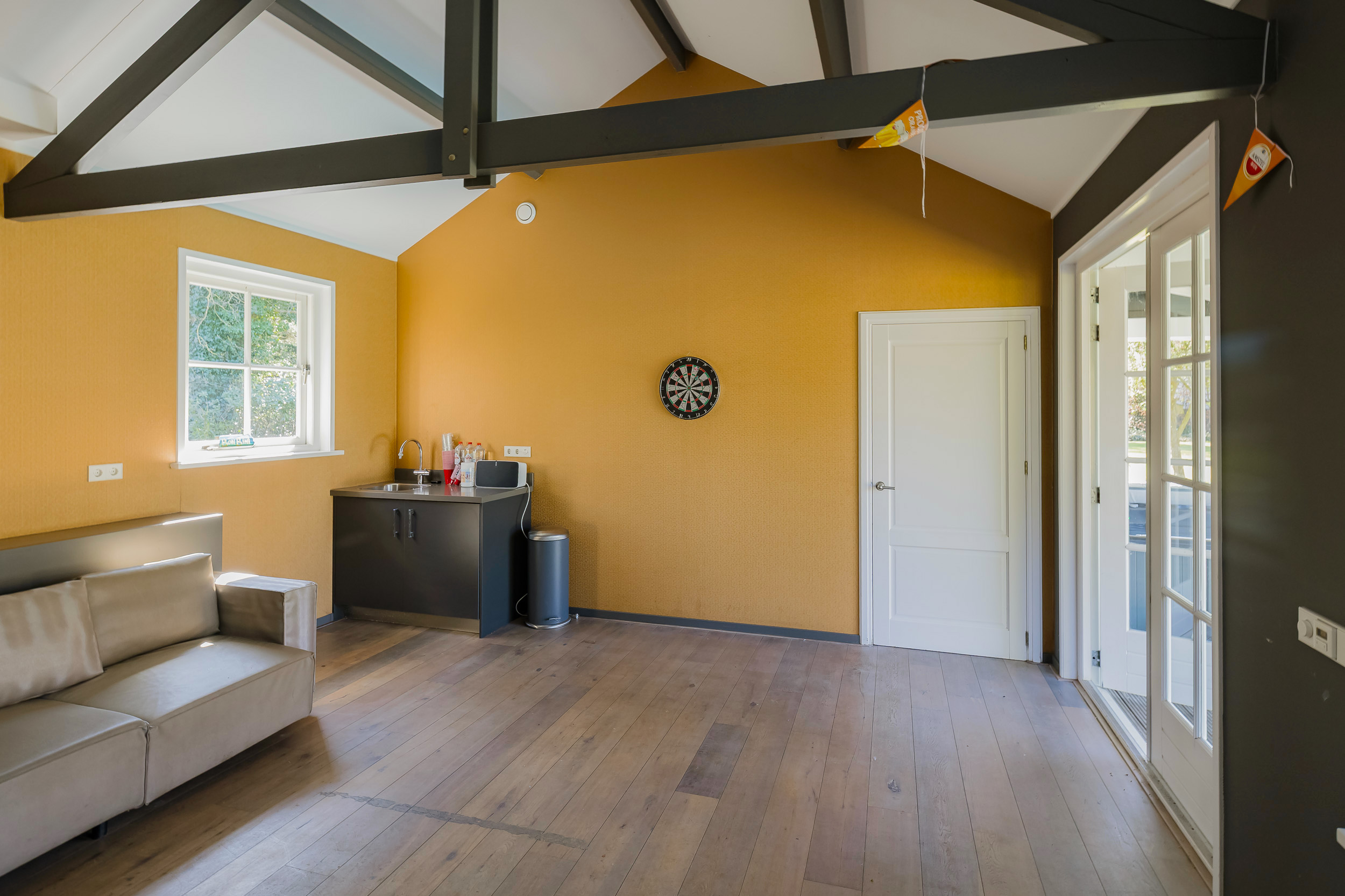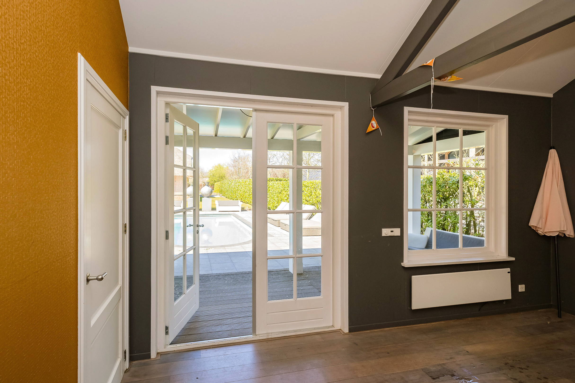 في الخارج، تبقى الخصوصية والاسترخاء دون انقطاع، مع حديقة ناضجة تحيط بالمكان، ومسبح مدفأ مع بيت مسبح مجاور، وتراسات فسيحة في الواجهة والخلف. يحيط الماء بالعقار الذي يضم رصيفًا خاصًا يتسع لثلاثة قوارب، ما يمنح امتيازًا للوصول السهل إلى كاجربلاسن وقنوات مدينة لايدن. هناك مساحة واسعة للمواقف، ومدخل كهربائي آمن، وكراج مزدوج بمساحة 70 مترًا مربعًا.