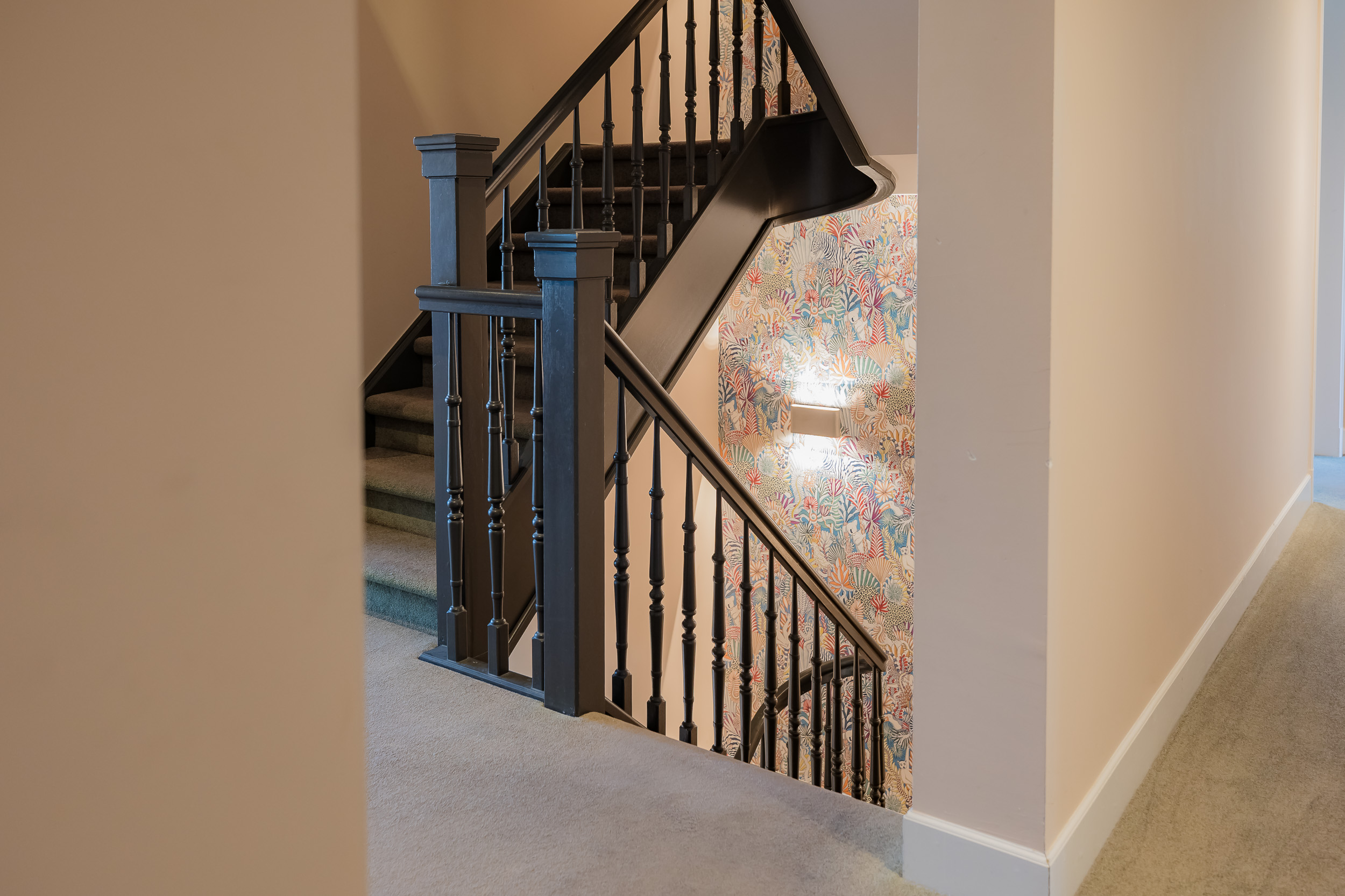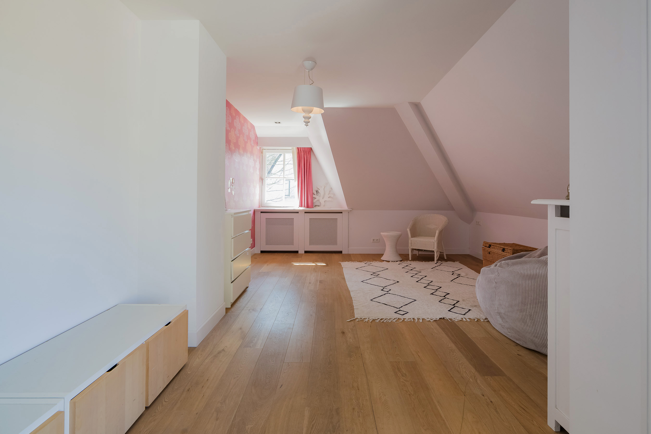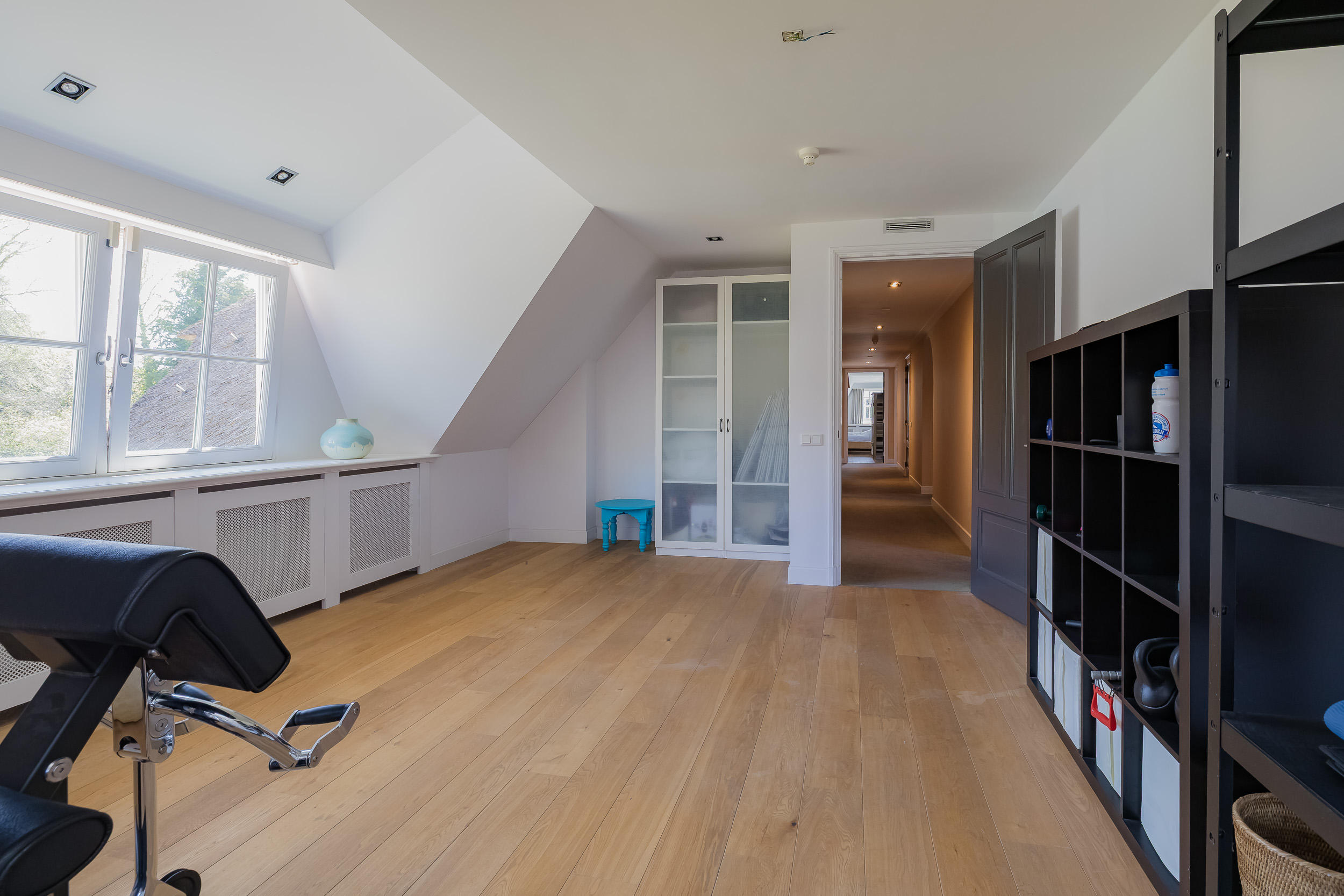 عند الدخول، يبرز إحساس بالرحابة يضفي طابعًا هادئًا مرحبًا. تتركز الصالة الرئيسية حول مدفأة من الحجر الرملي، وتطل النوافذ الواسعة على الحديقة وتغمر الغرف بالضوء الطبيعي. يفتح المطبخ المخصص لتناول الطعام، المجهز بجزيرة عمل وأجهزة عالية الجودة، على منظر أخضر ومدفأة غاز عصرية. تتوزع خمس غرف نوم وحمّامان في الطابق العلوي، وتستمتع غرفة النوم الرئيسية بشرفتها الخاصة وحمّام منفصل. تحتضن العلية المفتوحة بالكامل بمساحة 81 مترًا مربعًا إمكانية تحويلها لغرف نوم إضافية أو جناح ضيافة.