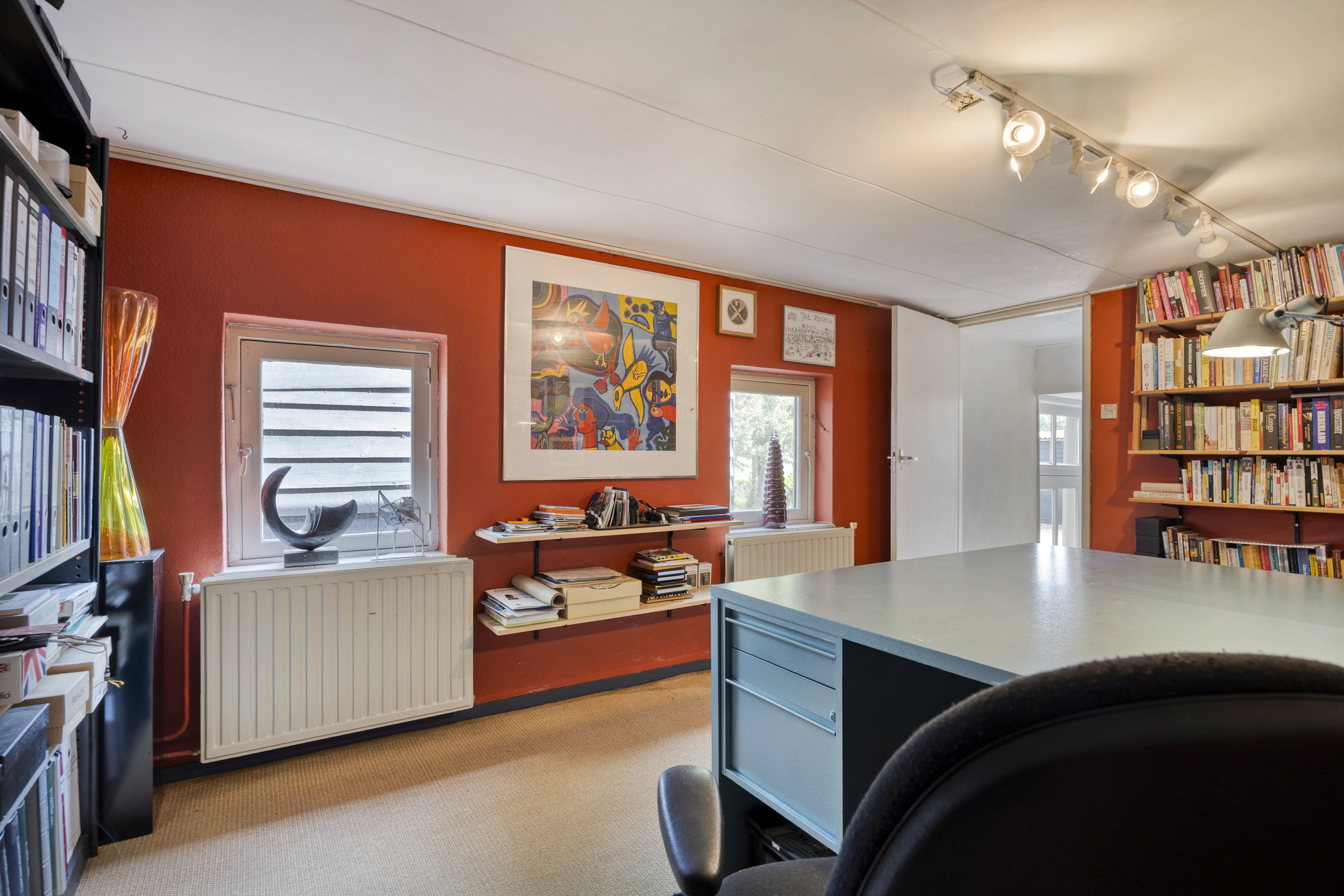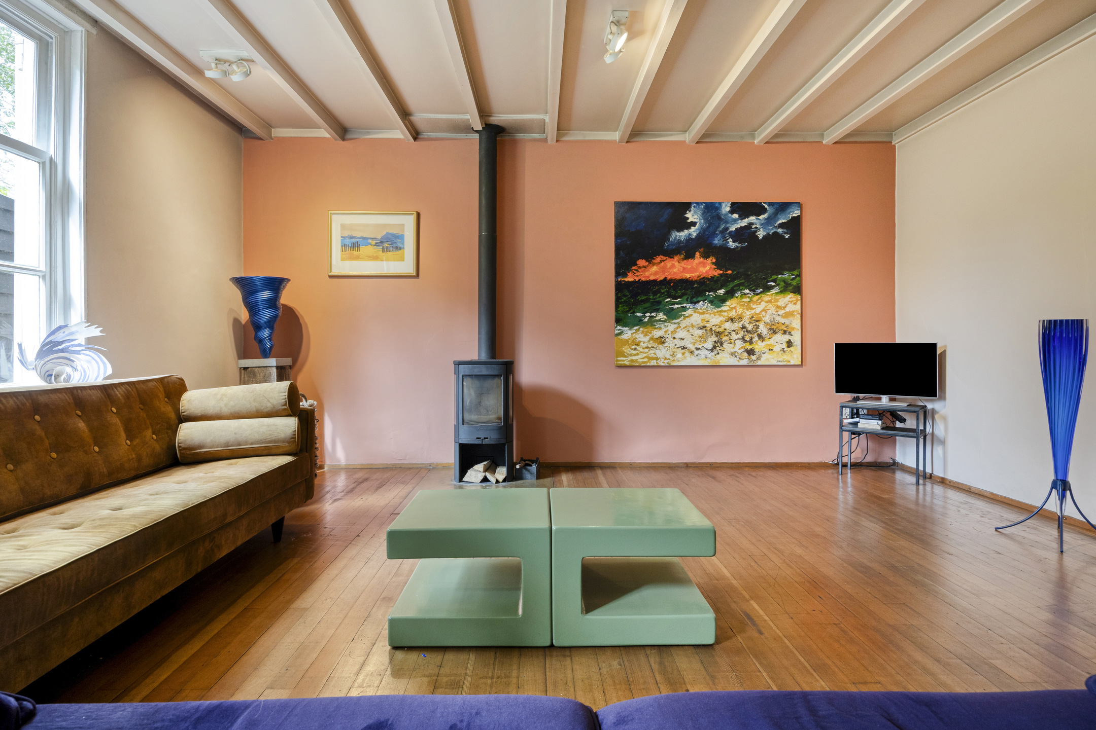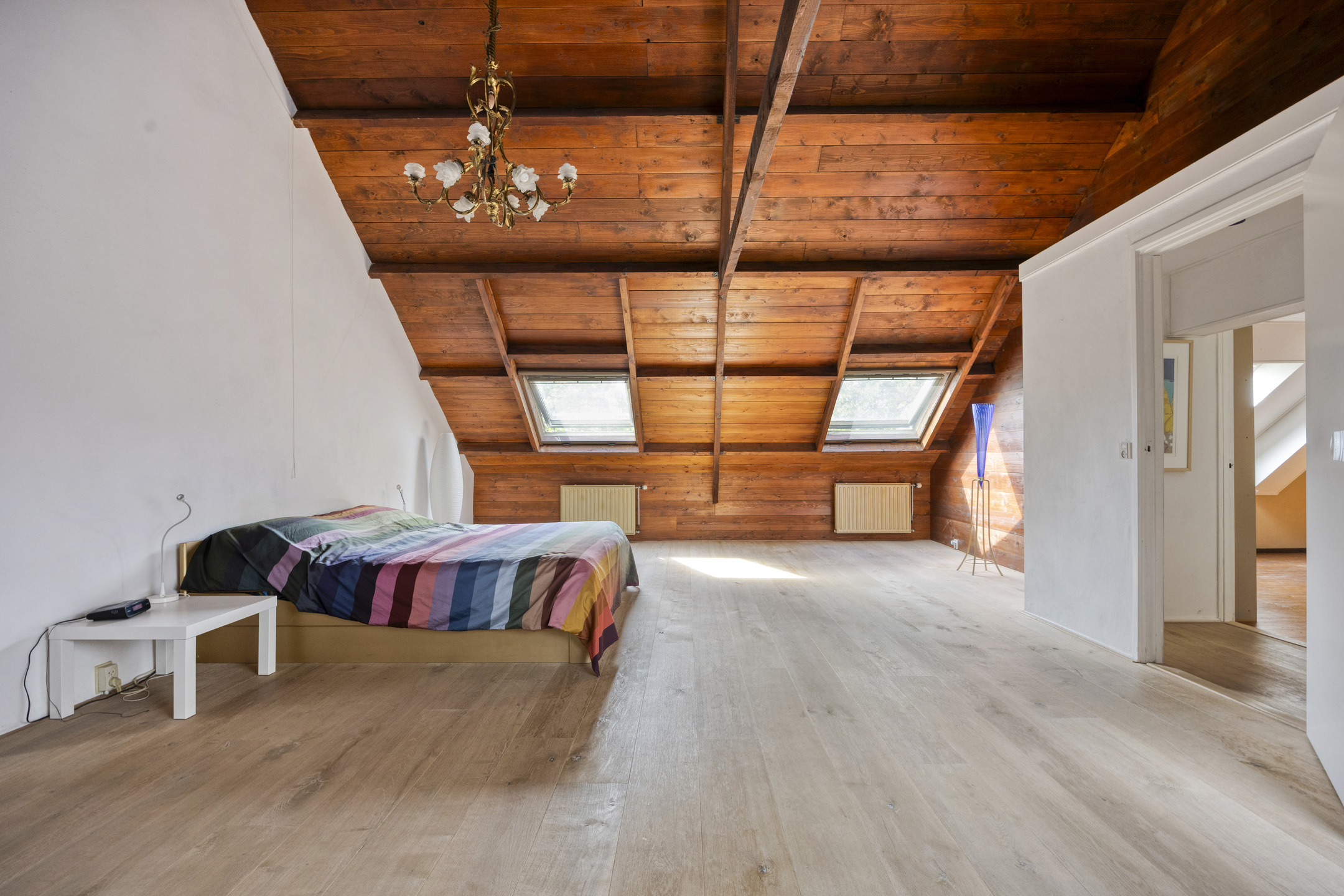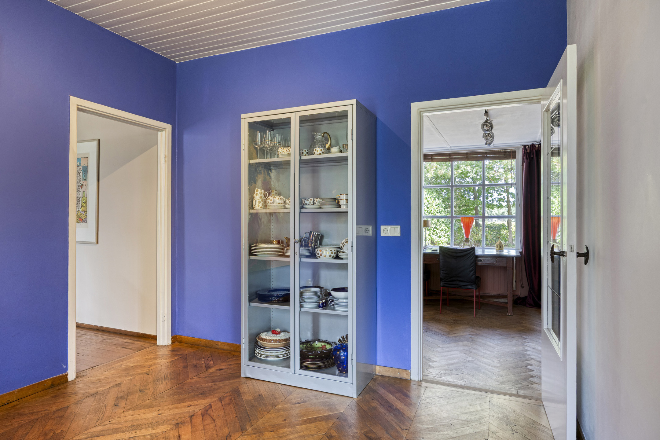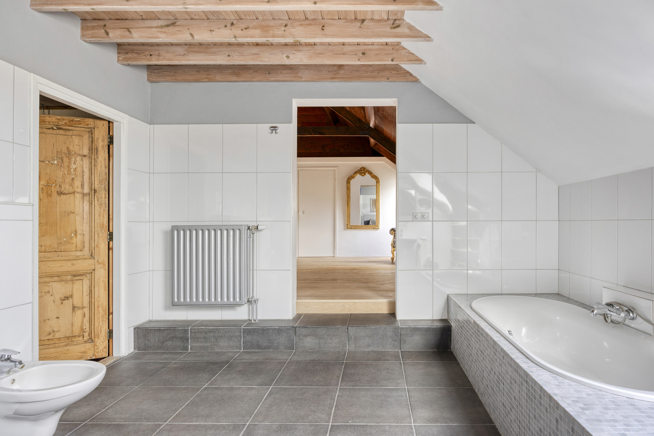 يعكس السكن الرئيسي أجواءً من الانفتاح المدروس. الغرف واسعة المساحة، وتضم ثلاث غرف نوم، وتجمع بين أرضيات باركيه من خشب البلوط، وتشطيبات خشبية متينة، وجسور خشبية مكشوفة، مما يضفي أصالة على تفاصيل الحياة اليومية. تبلغ مساحة الاستوديو الداخلي 87 متر مربع، ويحتفظ بمرونته سواء أردته أتيليهاً فنياً، مساحة معيشة إضافية أو مكتب منزلي. هناك إمكانية واضحة لإضافة غرف نوم أو ترتيب سكن مزدوج، مدعوماً بمساحات متعددة الوظائف وارتباط مباشر بالحدائق المصممة بعناية.