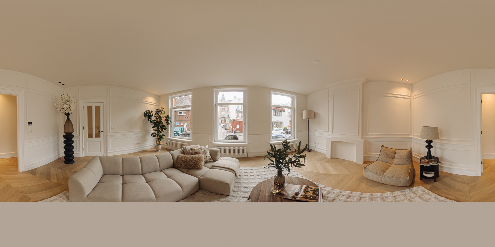 Das Interieur vereint sorgfältig restaurierten historischen Charme mit moderner Ausstattung. Die eindrucksvolle Wohnküche ist mit dunkler Eiche, einer Arbeitsplatte aus Verbundwerkstoff, Siemens StudioLine-Geräten, einem Bora-Kochfeld und einer Quooker-Armatur hochwertig ausgestattet. Licht durchflutet die großzügigen Wohnbereiche und das klassische Esszimmer, das durch hohe Fenster mit Blick auf die prächtigen Straßen Amsterdams besticht. Das Souterrain bietet eine ruhige Schlafebene mit en-suite Badezimmern und direktem Zugang zum grünen Garten.