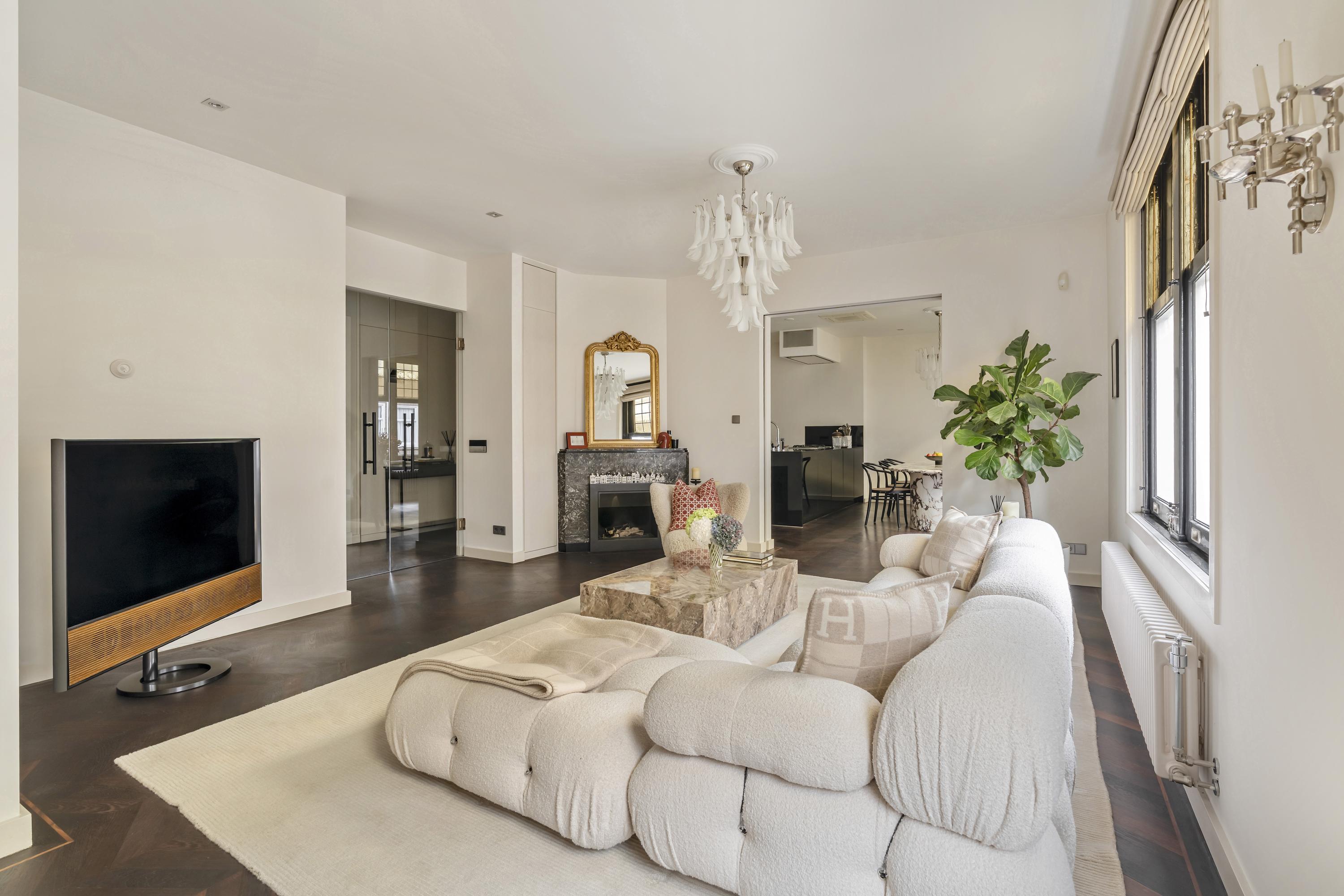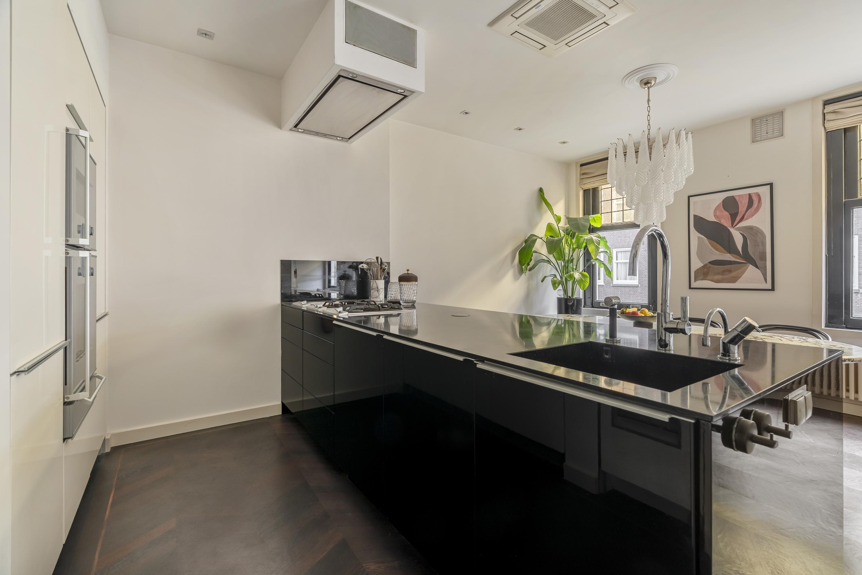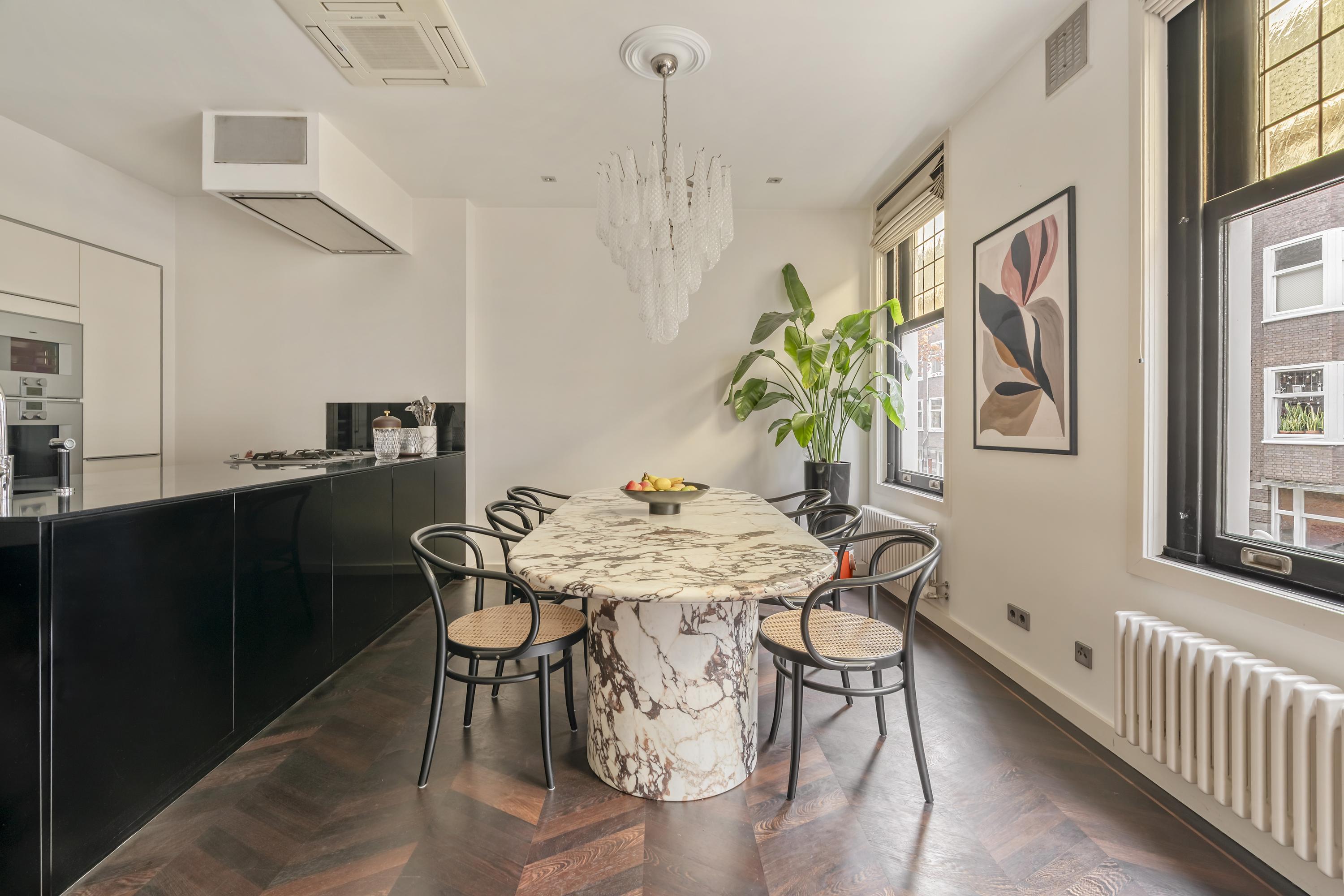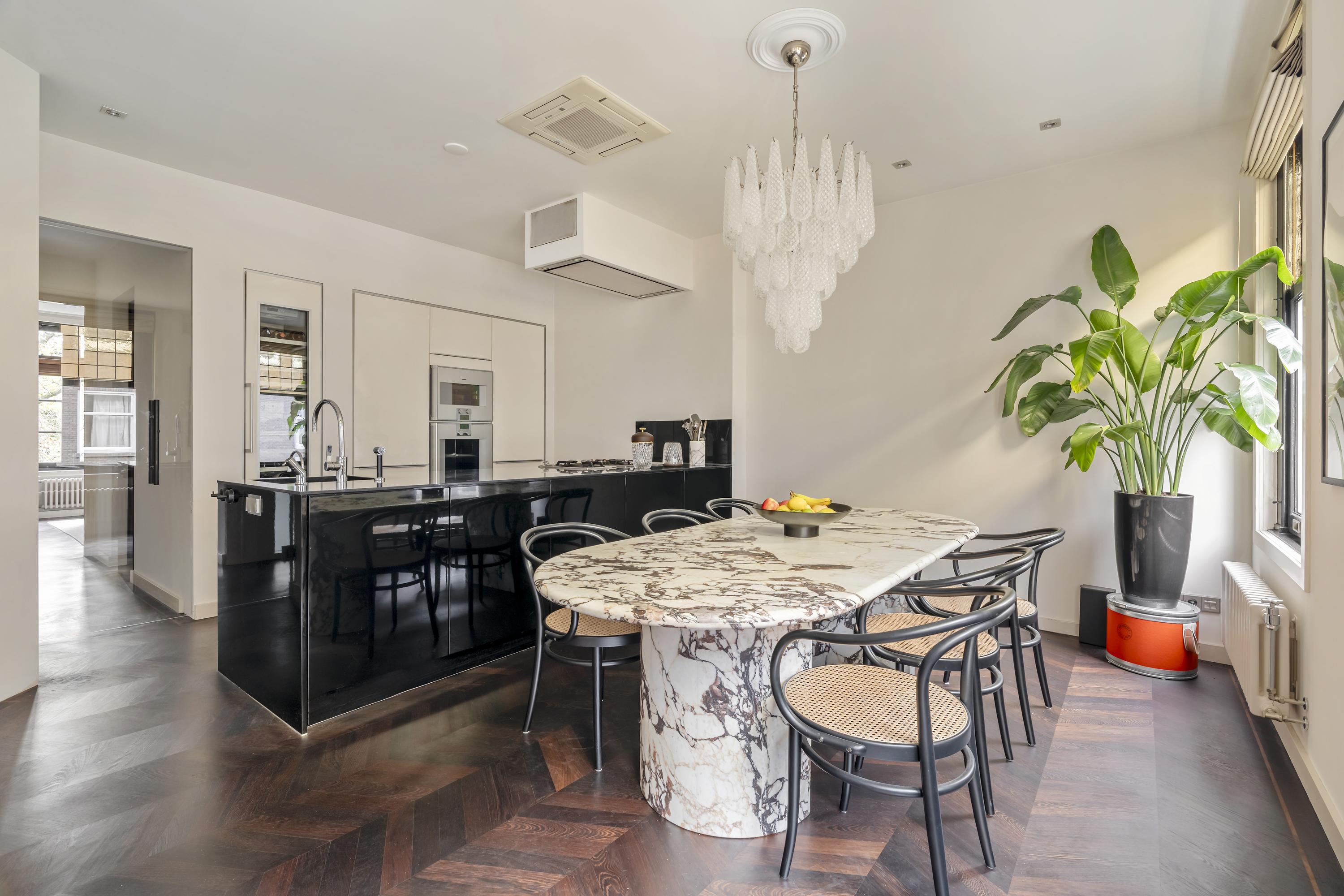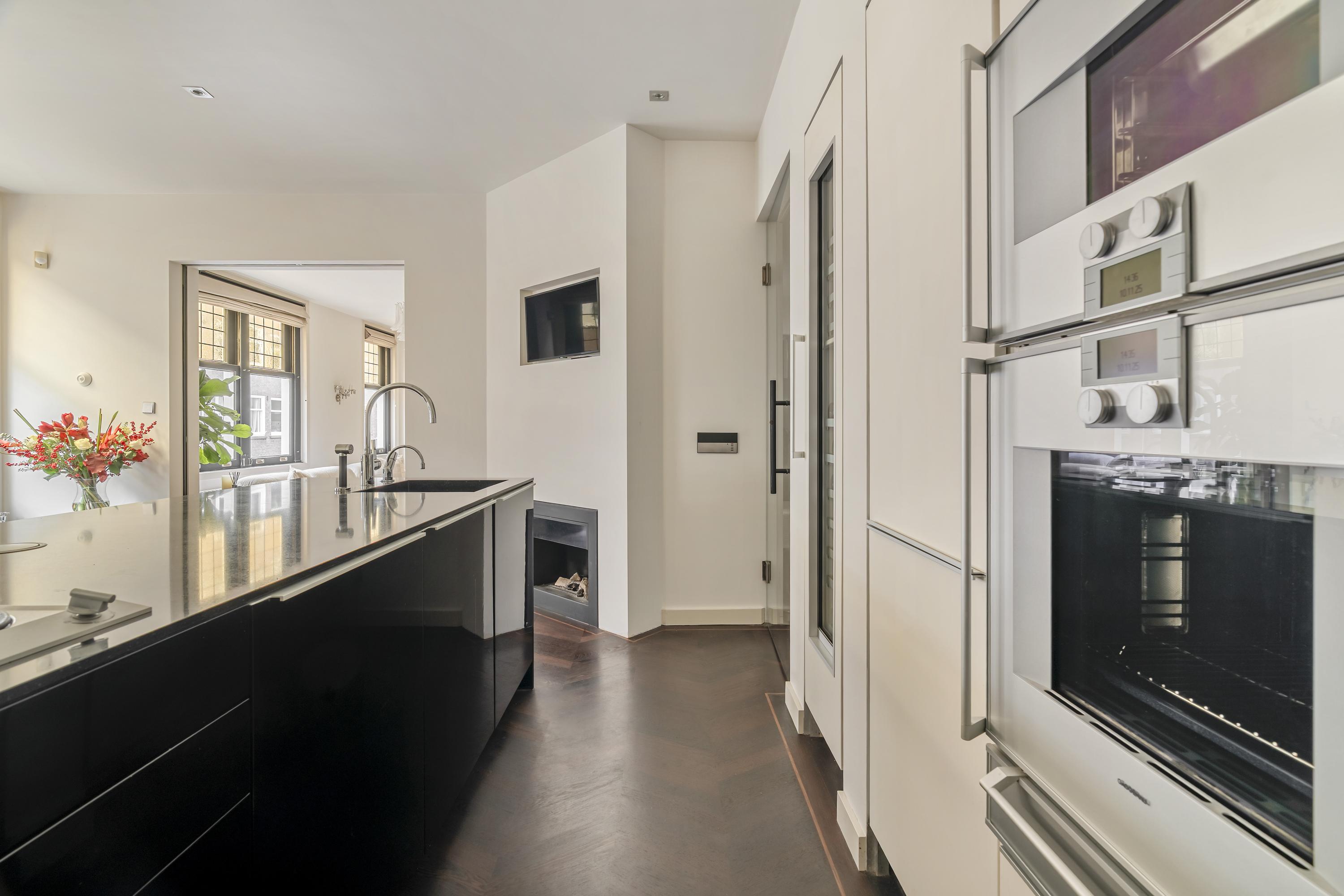 Das Apartment Amsterdam Tintorettostraat vereint zeitgenössische Raffinesse mit gewachsenem Charme in einem der begehrtesten Wohnviertel Amsterdams. Diese Wohnung mit einer Fläche von 124 m² verbindet durchdachte architektonische Details mit hochwertigen Materialien. Der großzügige, lichtdurchflutete Wohnbereich empfängt Sie mit einem Gaskamin und charakteristischen Bleiglasfenstern. Schiebe- und französische Türen führen nahtlos in die Poggenpohl-Küche. Ausgestattet mit Gaggenau-Geräten, einer Teppanyaki-Platte, einem Weinschrank, zwei Kühlschränken und Designerbeleuchtung bildet die Küche das soziale und praktische Zentrum der Wohnung, betont durch einen weiteren Gaskamin.