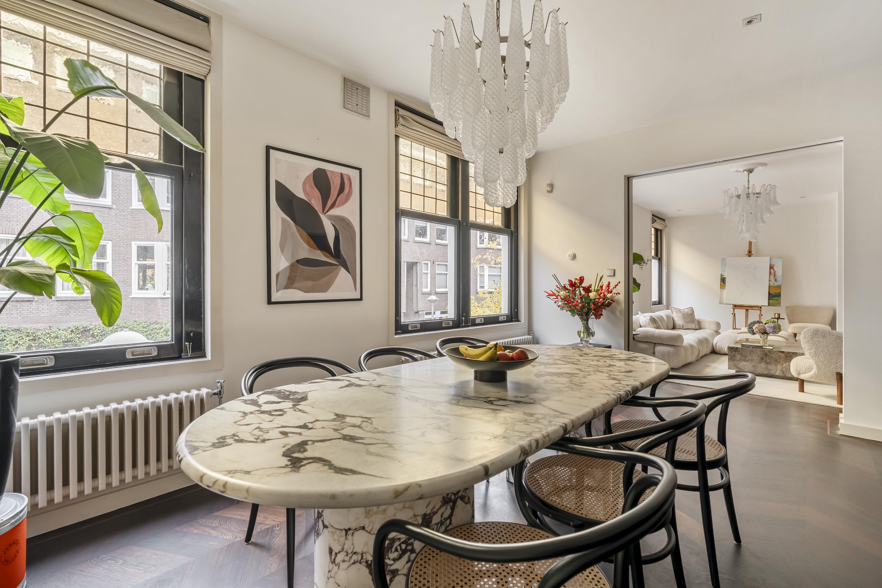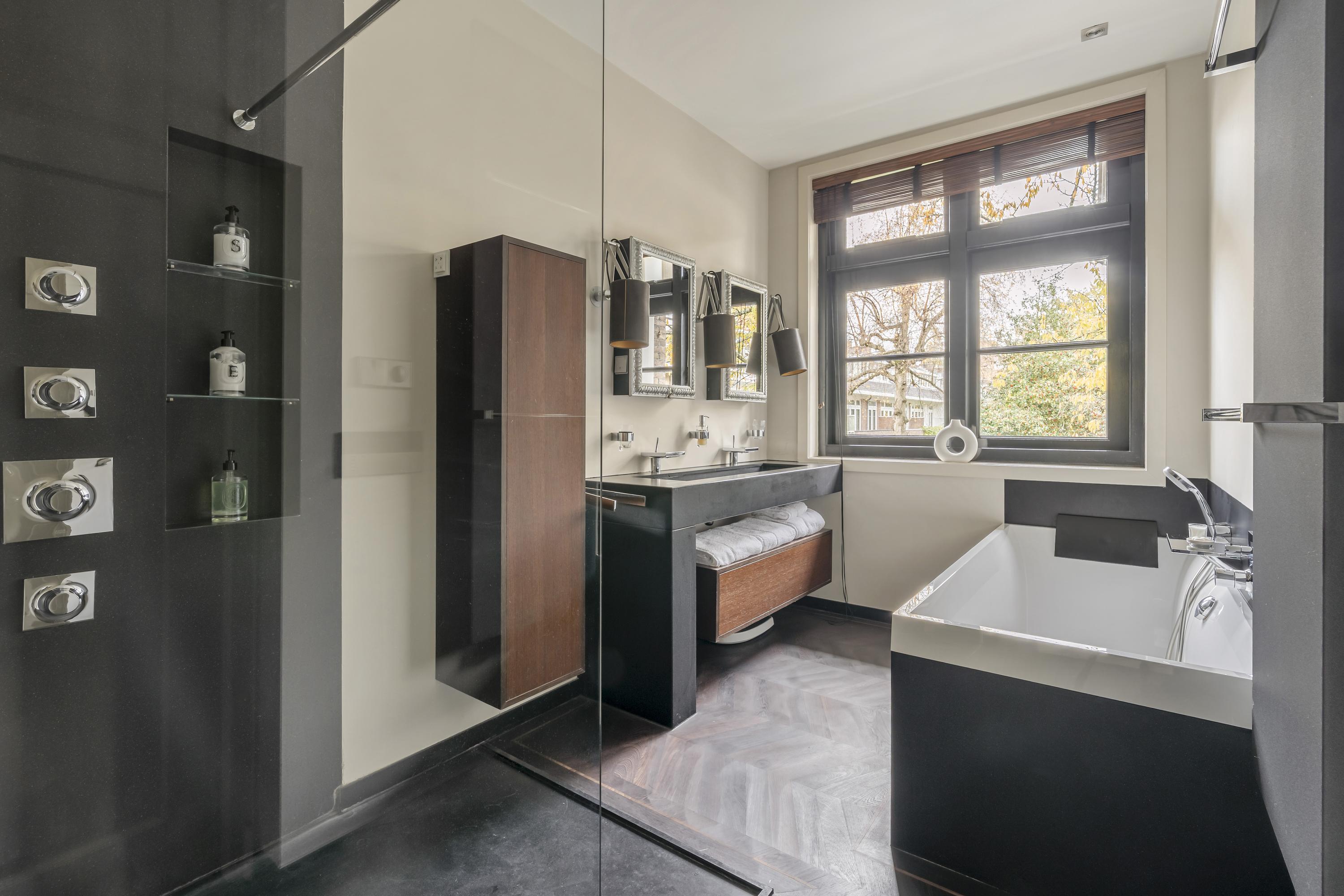 Im gesamten Apartment treffen Wenge-Echtholzböden auf modernste Hausautomation von Lutron und Bang & Olufsen und sorgen für stimmungsvolles Licht- und Klimamanagement. Hochwertige Sicherheitsfunktionen, Klimaanlage und ein Alarmsystem fügen sich harmonisch in das ruhige Wohnambiente ein. Parkgenehmigungen sowie eine professionelle Hausverwaltung bieten zusätzliche Sicherheit. Hier zu leben bedeutet, einen entspannten und gleichzeitig urban verbundenen Lebensstil zu genießen – mit Cafés, Grünflächen und bester Anbindung direkt vor der Tür. Ein herausragendes Beispiel für eine luxuriöse Wohnung zum Verkauf im Amsterdamer Süden.