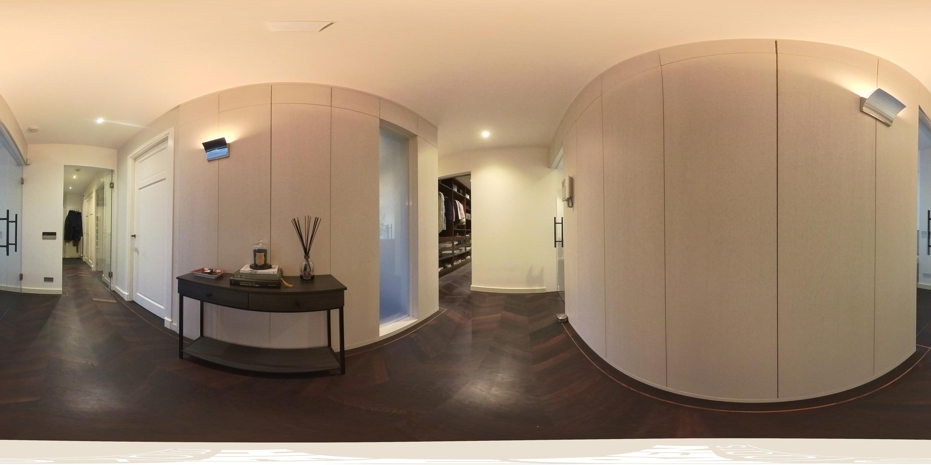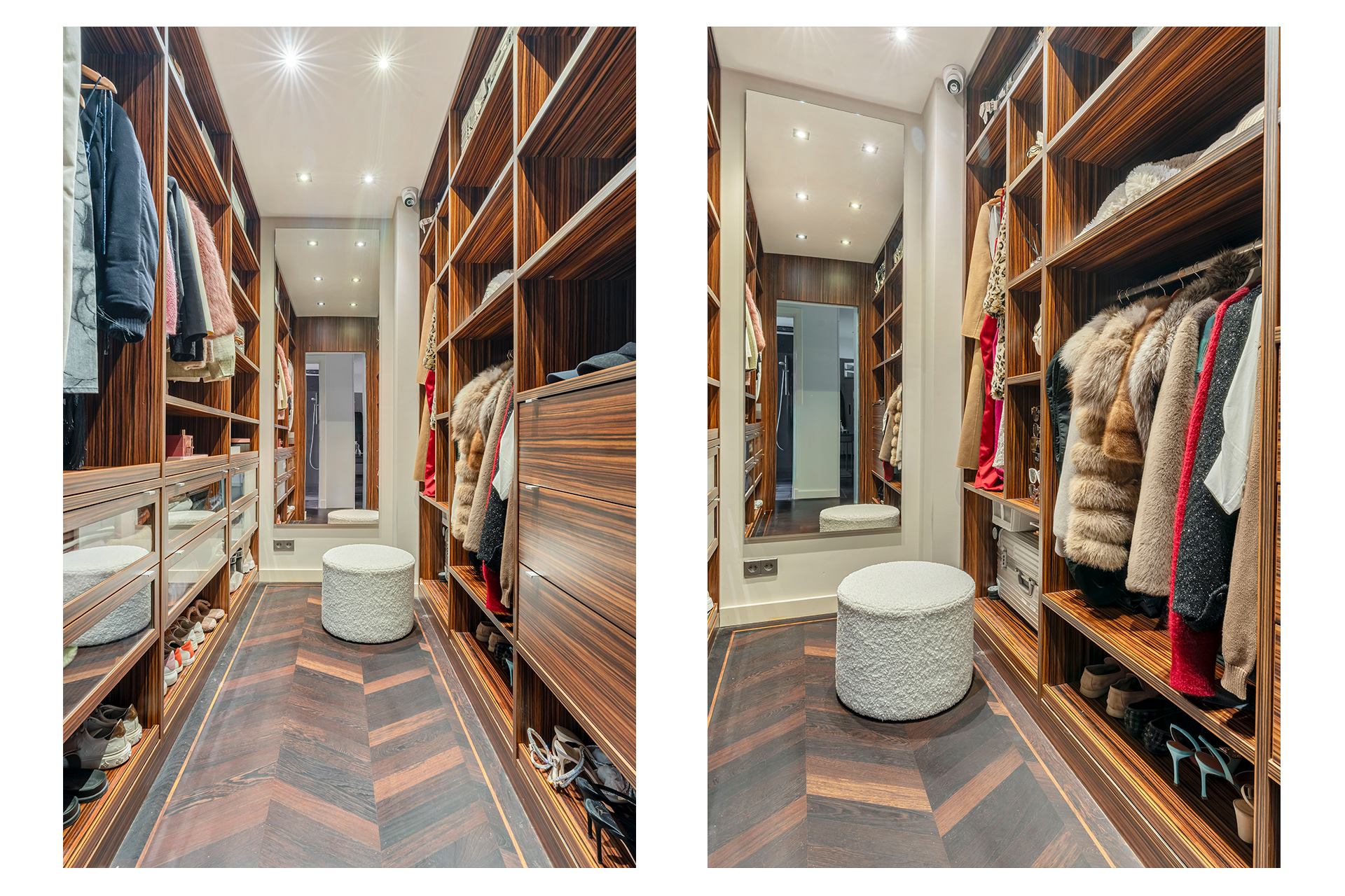 Drei ruhige Schlafzimmer befinden sich im hinteren Teil, jedes mit Zugang zu einem breiten, privaten Balkon. Die Mastersuite ist mit maßgefertigten Einbauschränken und Klimaanlage ausgestattet; ein begehbarer Kleiderschrank und ein intelligentes Raumkonzept sorgen für Ordnung und Komfort. Das Badezimmer verfügt über Doppelwaschbecken, Axor-Armaturen, eine Regendusche und eine tiefe Badewanne – diskreter Luxus in Perfektion.