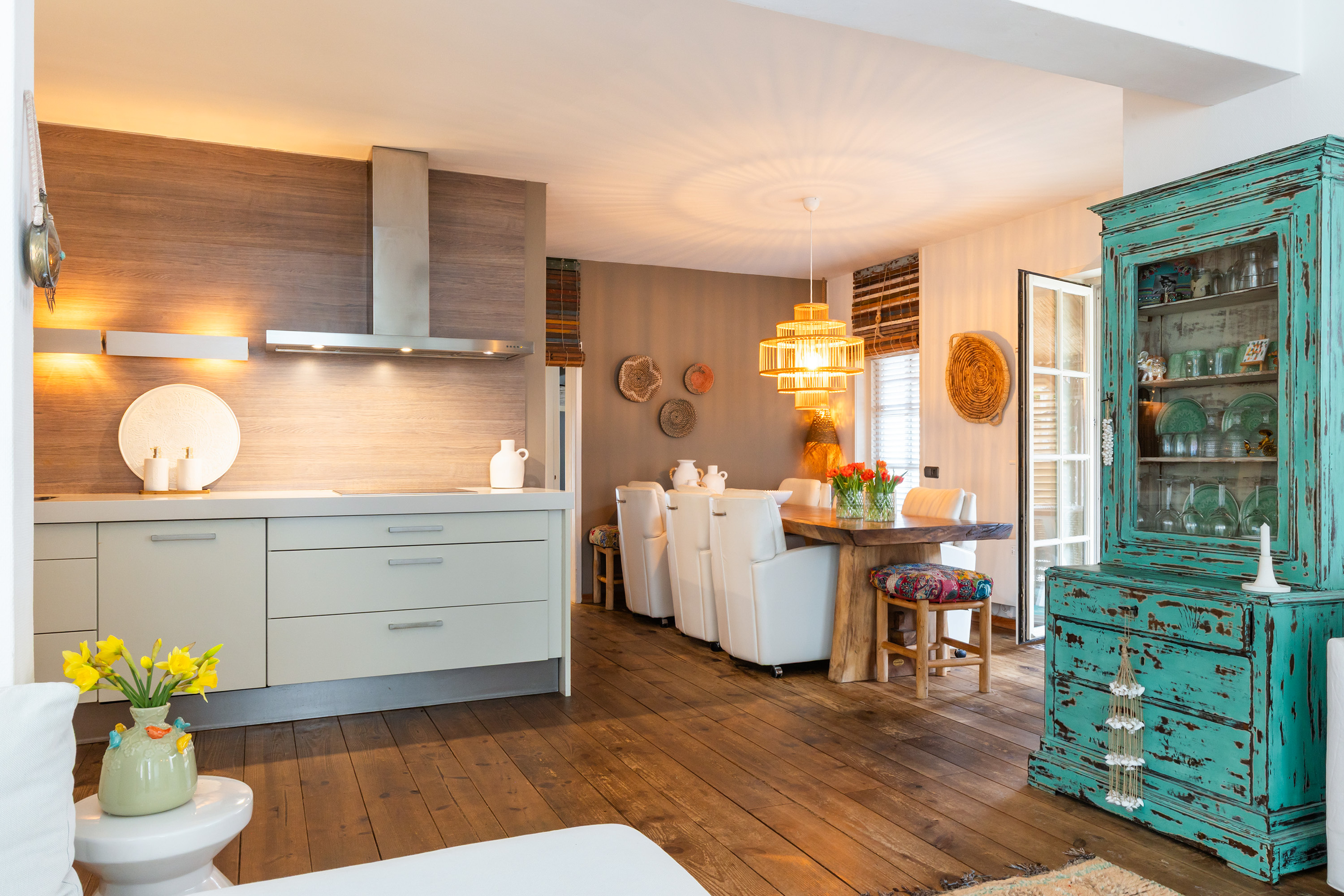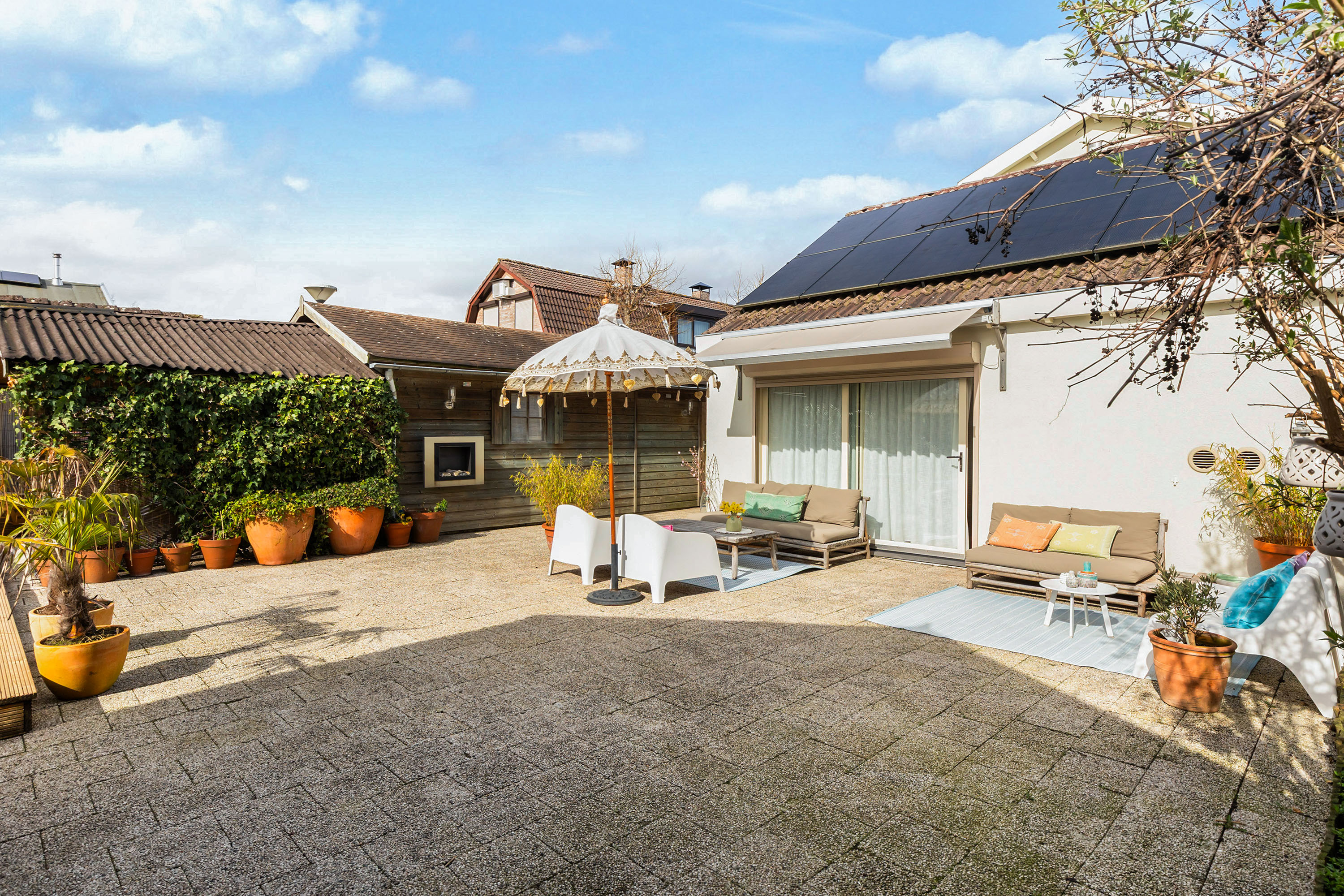 Die freistehende Villa Apeldoorn bietet eine gelungene Verbindung aus historischer Architektur und zeitgenössischem, von Ibiza inspiriertem Stil in ruhiger, grüner Wohnlage nahe Schloss Het Loo und den Wäldern der Veluwe. Ursprünglich 1910 mit charakteristischem Knickdach erbaut und 2005 erweitert, steht dieses Anwesen auf einem 668 m² großen Grundstück und entfaltet auf 188 m² Wohnfläche ein harmonisches Gleichgewicht zwischen Geborgenheit und überraschender Großzügigkeit.