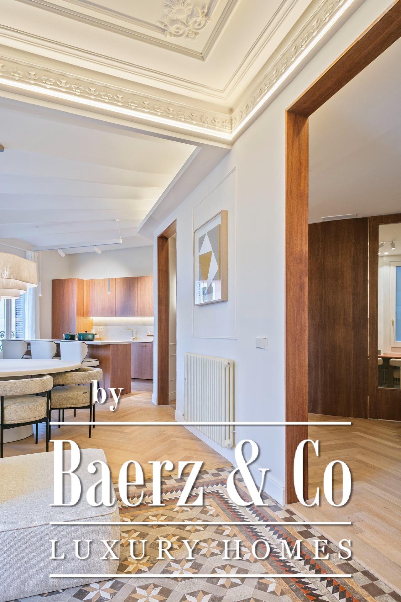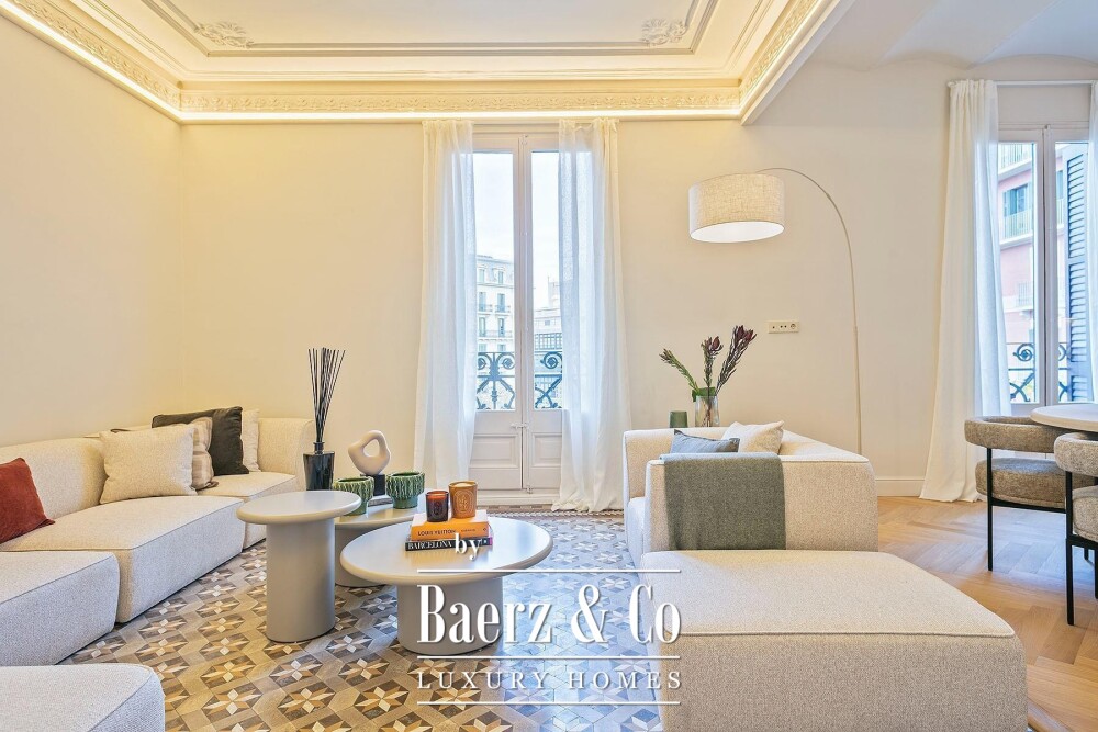 Das Luxusapartment in Barcelona bietet ein exklusives Wohngefühl, das durch seine Lage an einer markanten Ecke mit abgeschrägter Fassade geprägt ist. Dieses architektonische Merkmal sorgt für maximale natürliche Lichtverhältnisse – eine Seltenheit, die Helligkeit, räumliche Klarheit und anhaltenden Komfort garantiert. Jeder der 183 m² großen Räume ist außenliegend und schafft so ein Gefühl von Wohlbefinden sowie eine besondere Verbindung zur Stadt.