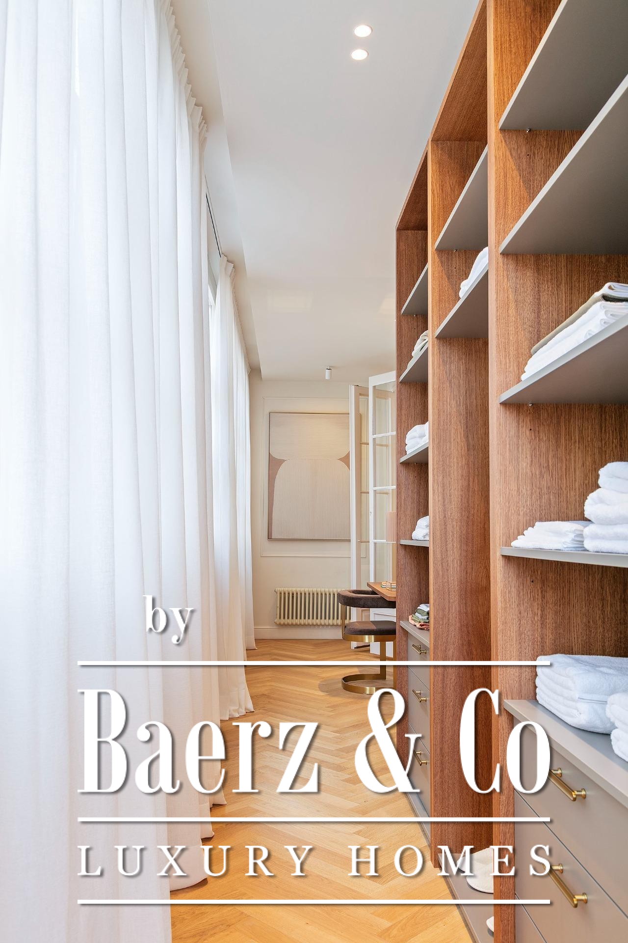 Der Lebensmittelpunkt des Apartments ist ein lichtdurchfluteter Wohn-Essbereich mit einer offenen, individuell gestalteten Küche aus naturbelassener Eiche, ausgestattet mit hochwertigen Miele-Geräten. Der fließende Übergang zwischen Ess- und Relaxzone ist ideal für gesellige Stunden wie für den Alltag. Es gibt drei Schlafzimmer, darunter eine Hauptsuite als private Rückzugsoase mit eigenem Bad und einem markanten begehbaren Ankleidebereich in einer lichtdurchfluteten Galerie.