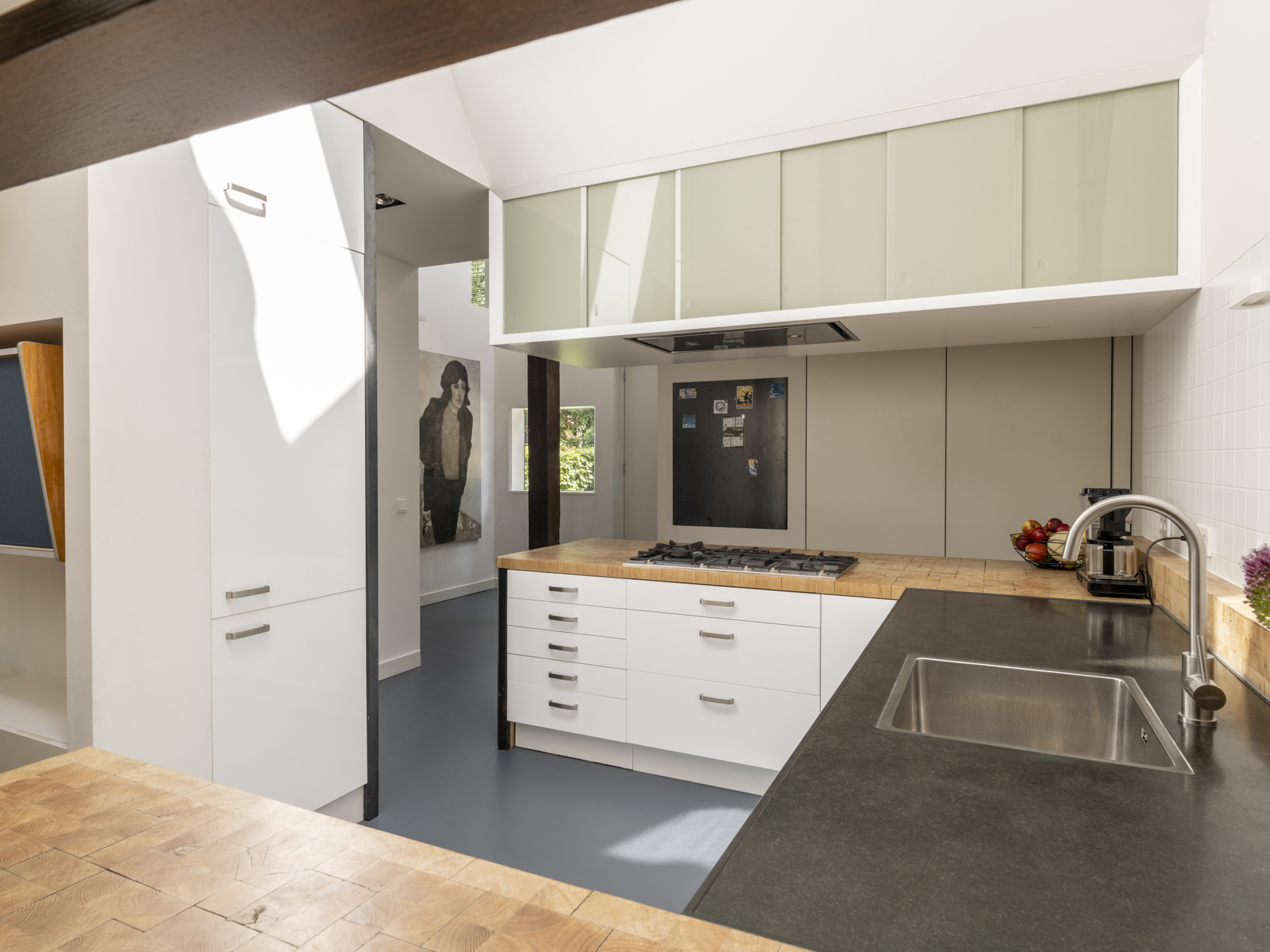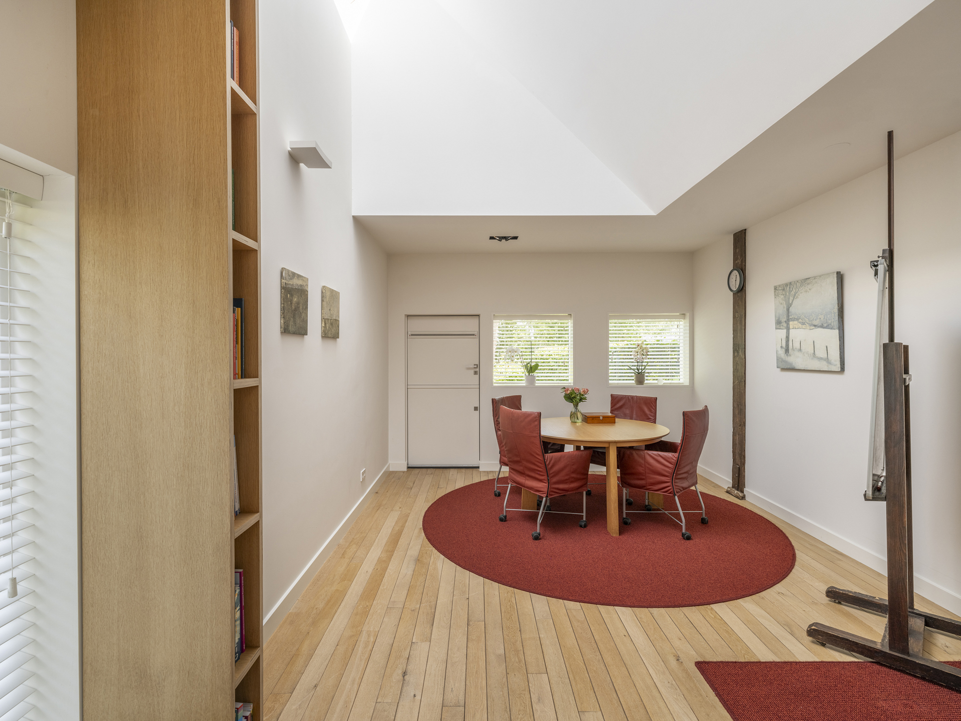 Das Anwesen umfasst 248 m² auf einem 2.395 m² großen Privatgrundstück und vereint Offenheit mit Struktur. Beim Betreten öffnet sich die hohe Eingangstür zu einem Zusammenspiel von Alt und Neu: maßgefertigte Einbauten, eine U-förmige Küche mit Stirnholz und Naturstein sowie ein Wohnbereich mit Ausrichtung zum reifen Garten. Überall schaffen originale Balkenarbeiten und dänische Hochleistungsofen eine warme Atmosphäre. Die Raumaufteilung bietet vier Schlafzimmer, ein stilvolles Bad mit begehbarer Dusche und integrierter Beleuchtung sowie flexible Bereiche, die sich als Praxisraum oder Gästebereich mit eigenem Zugang eignen.