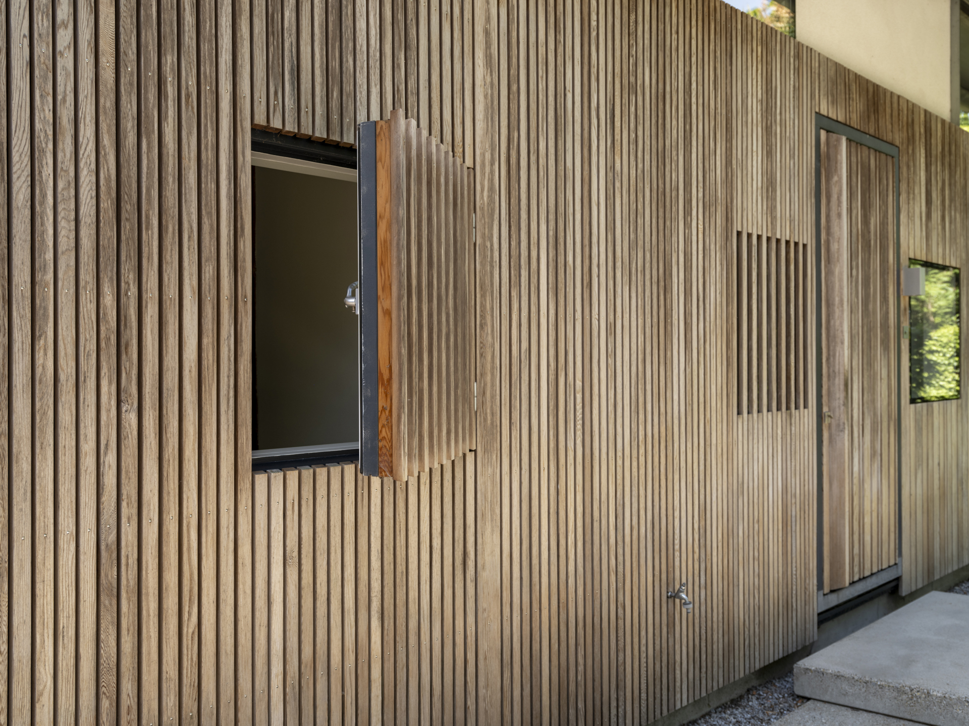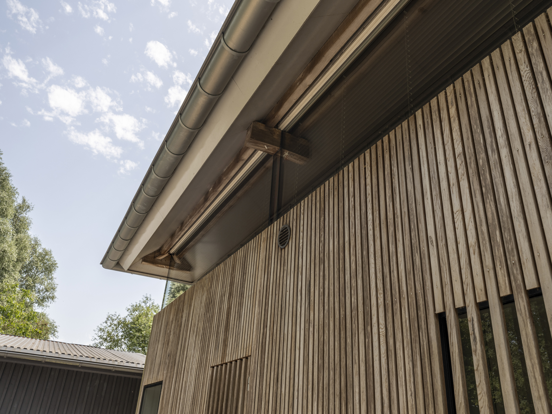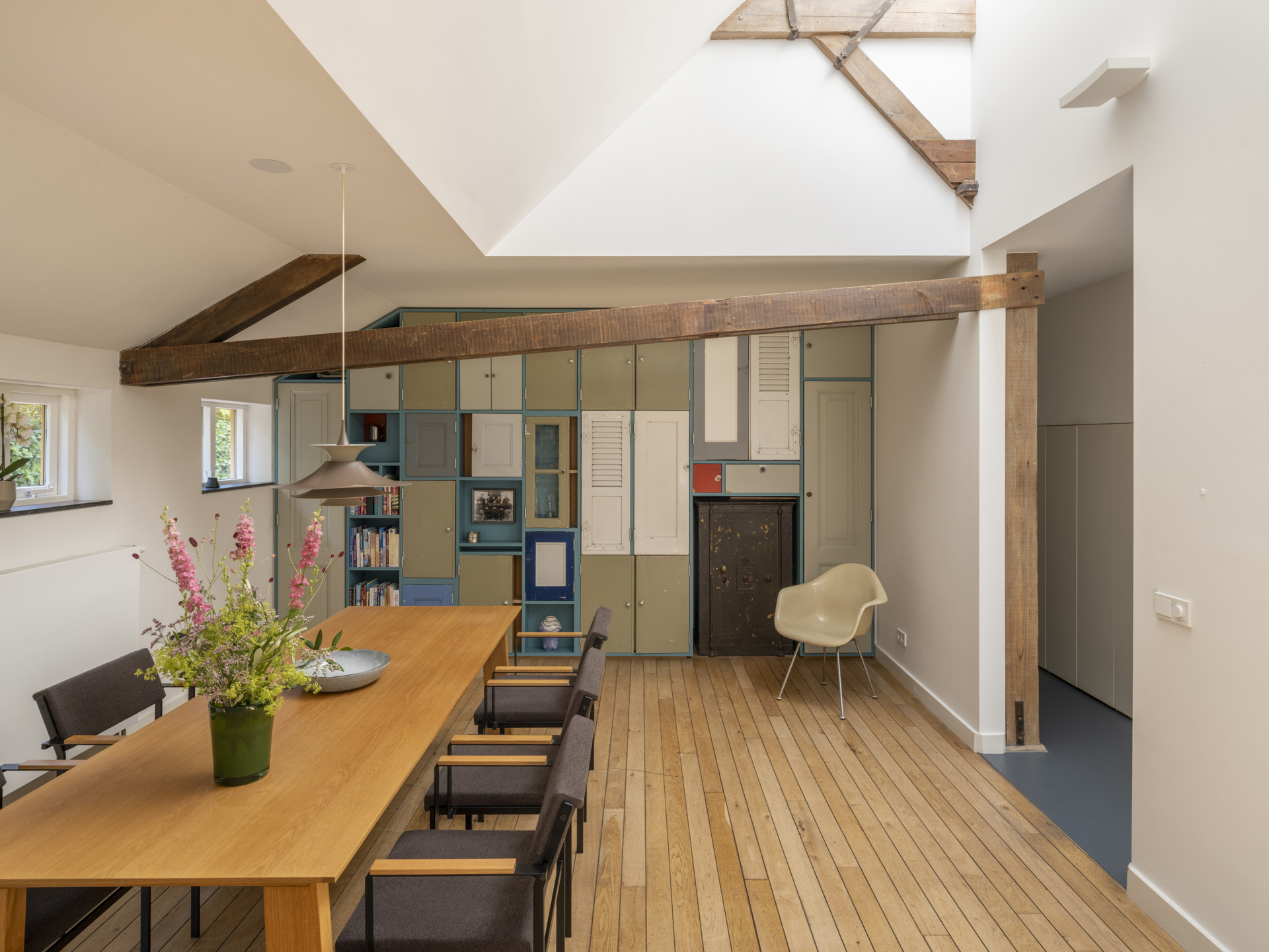 Die Villa Bavel befindet sich am Rand des Dorfes, ihre Ursprünge als Scheune aus dem Jahr 1953 werden durch die architektonische Umgestaltung unter Leitung von Henri Borduin sorgfältig bewahrt. Diese Villa Bavel, 2014 neu interpretiert und bis 2025 weiterentwickelt, etabliert ihren eigenen Rhythmus mit originalen Balken, fühlbaren Naturmaterialien und durchdachten Lichtschächten, die Tageslicht in jeden Wohnraum führen.
