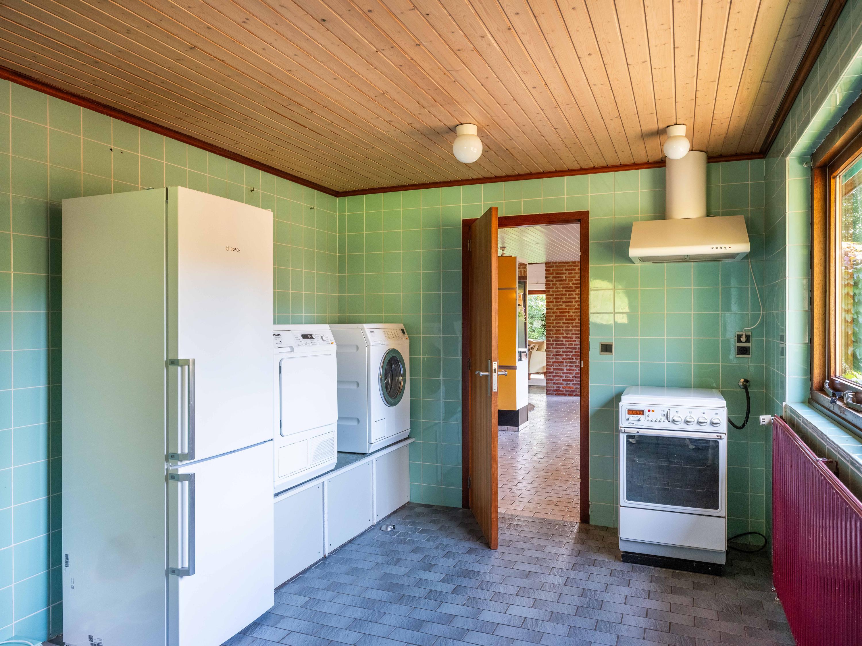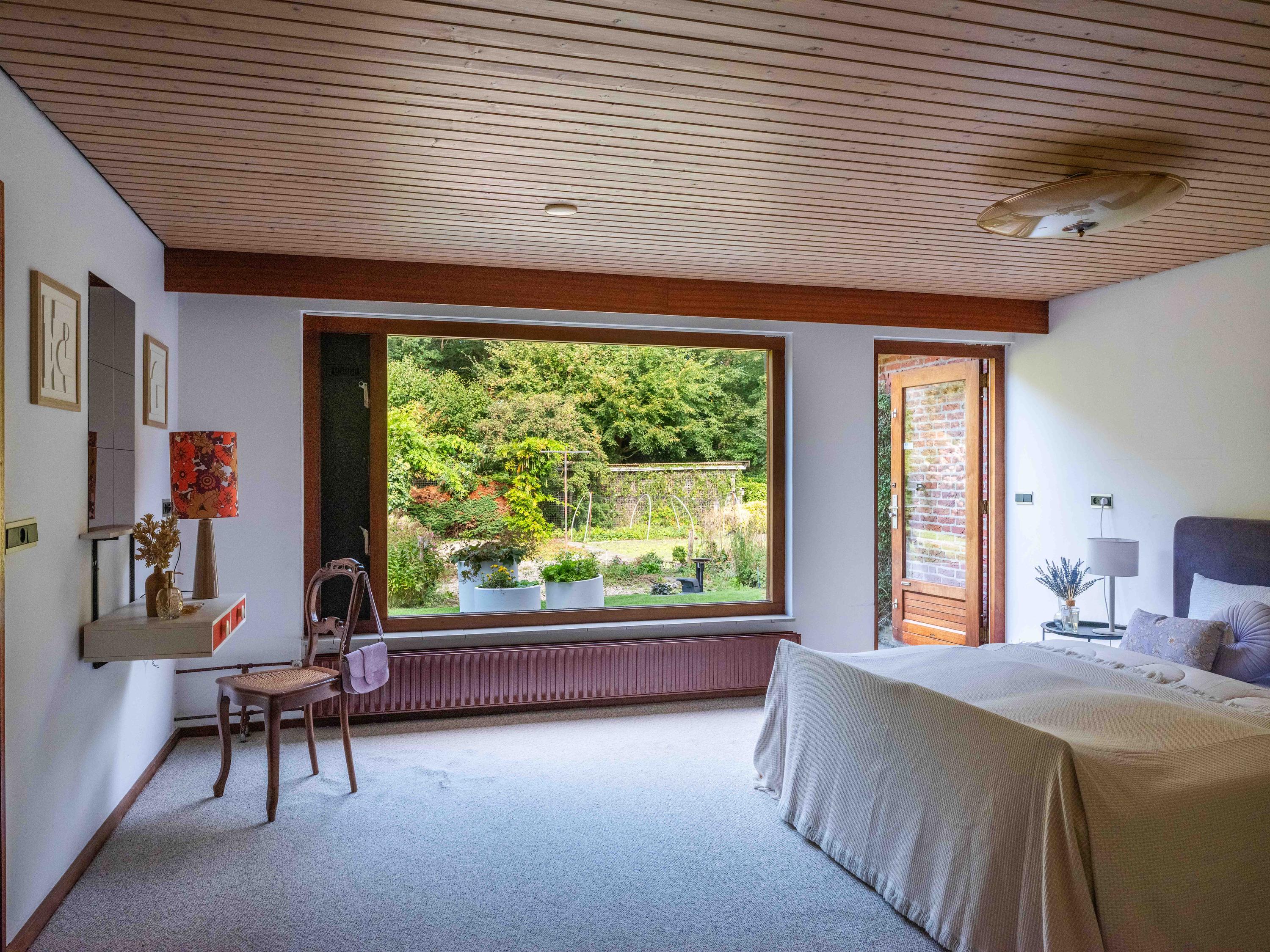 We would also like to mention a few extras. The large attached garage is accessible from inside and offers ample space for bicycles, cars or other items. Cars can also be easily parked on the property, as there is plenty of space. The garden has several terraces and offers plenty of sun and privacy. It has taken 43 years to turn it into a colourful whole. And there is a greenhouse! The surrounding garden offers plenty of sun and privacy. In terms of sustainability, we can report that there are already 8 solar panels, wall insulation and mostly double glazing (energy label C). The wine cellar is also a charming extra.