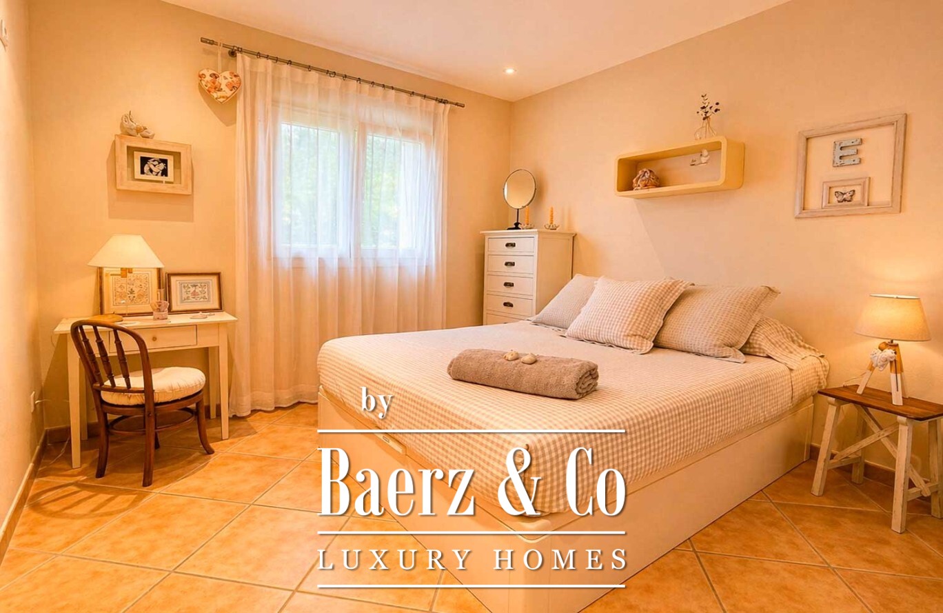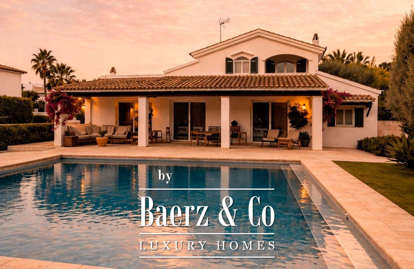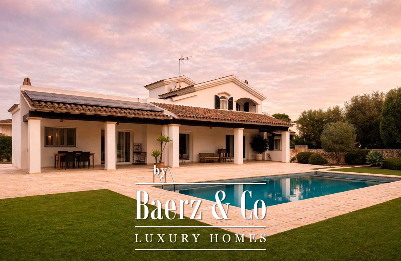 Im Außenbereich bildet ein großzügiger Swimmingpool das Zentrum einer Anlage, die von gewachsenen Bäumen und makellosem Kunstrasen geprägt ist und so Ruhe sowie minimalen Pflegeaufwand garantiert. Die Villa in Ciutadella de Menorca vereint Authentizität und Privatsphäre mit unmittelbarem Zugang zum Mittelmeer und bietet so eine seltene Lebensstilchance.
