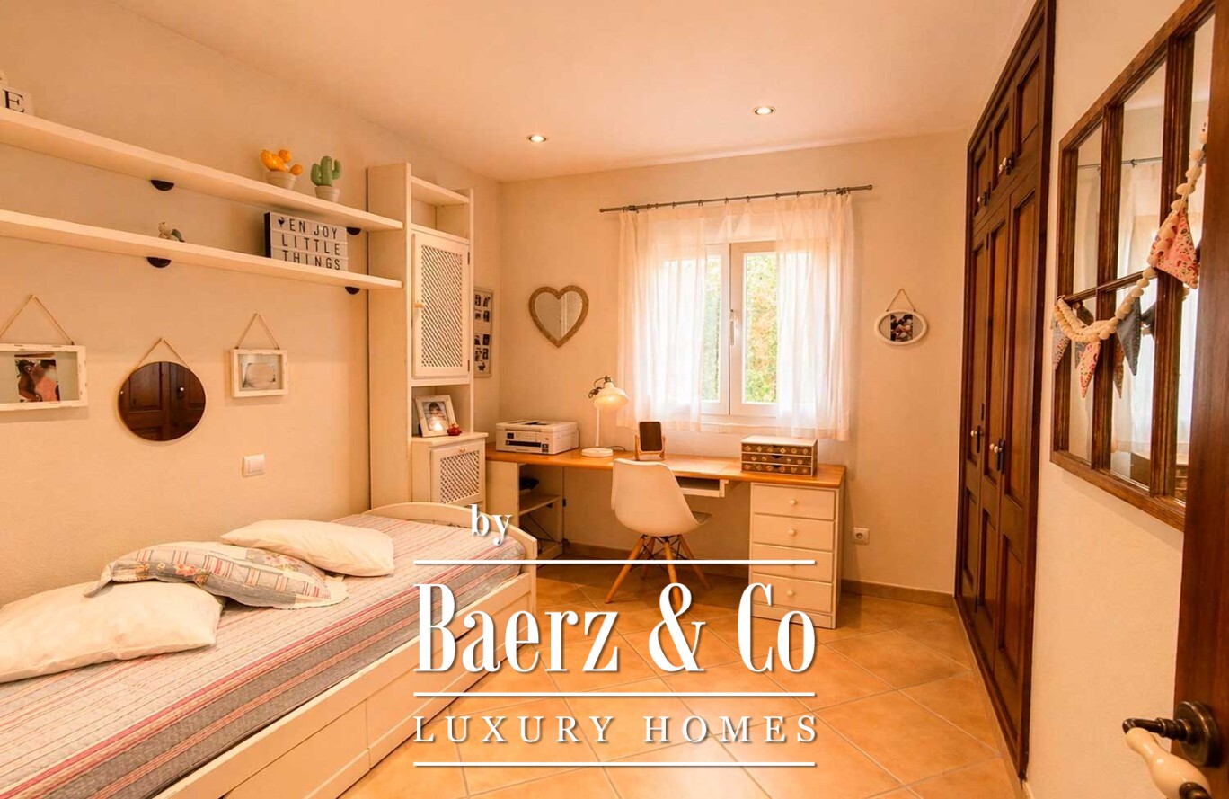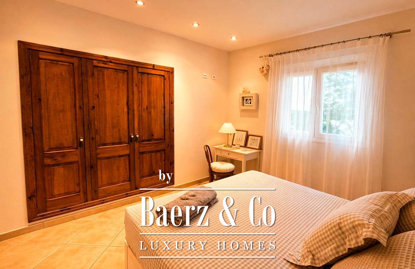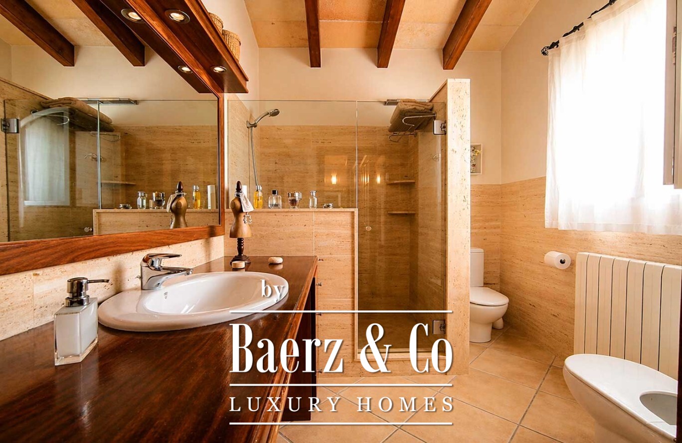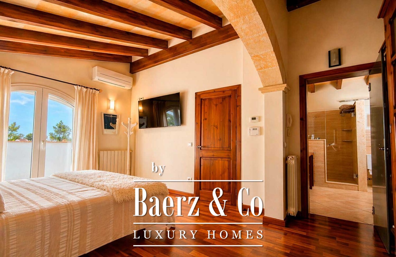 Im Außenbereich bildet ein großzügiger Swimmingpool das Zentrum einer Anlage, die von gewachsenen Bäumen und makellosem Kunstrasen geprägt ist und so Ruhe sowie minimalen Pflegeaufwand garantiert. Die Villa in Ciutadella de Menorca vereint Authentizität und Privatsphäre mit unmittelbarem Zugang zum Mittelmeer und bietet so eine seltene Lebensstilchance.