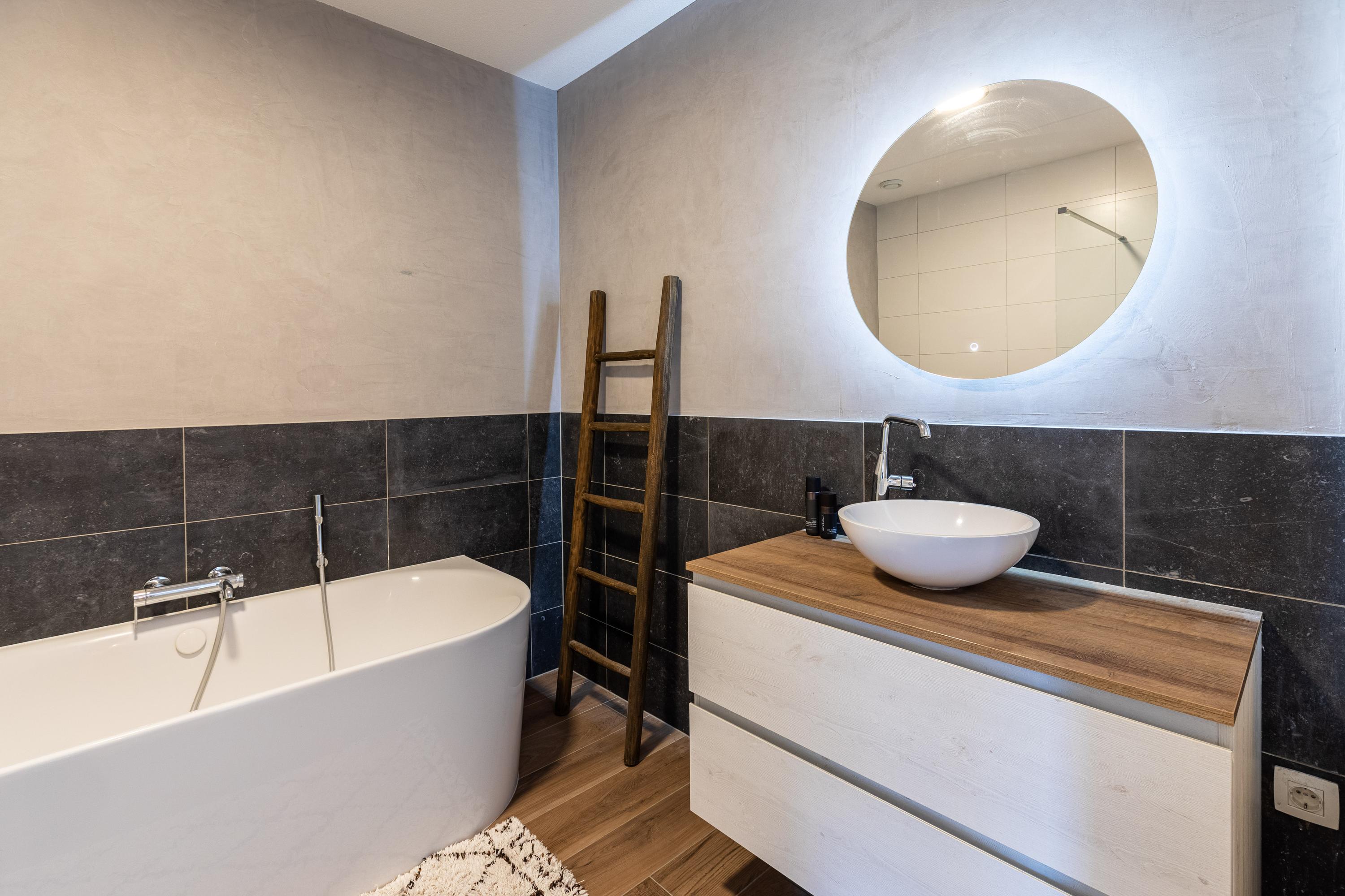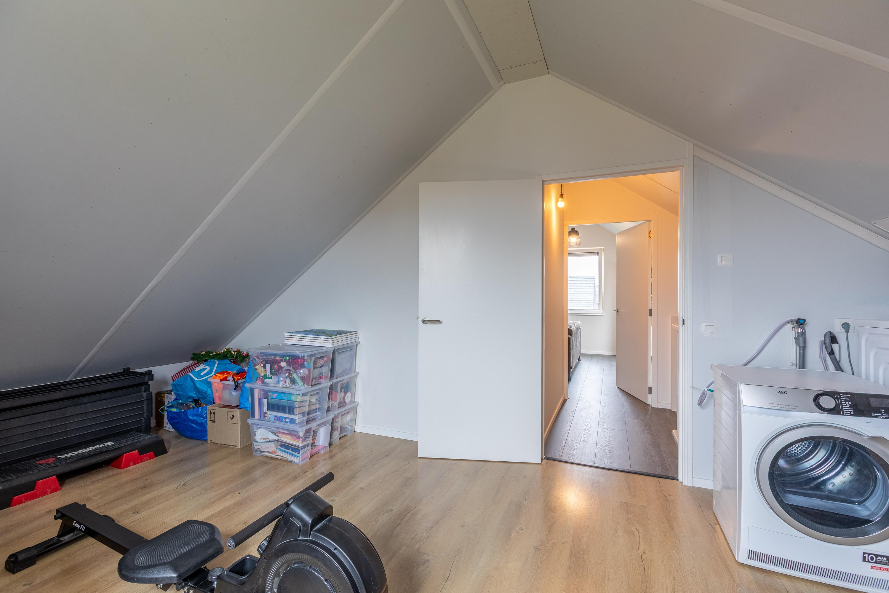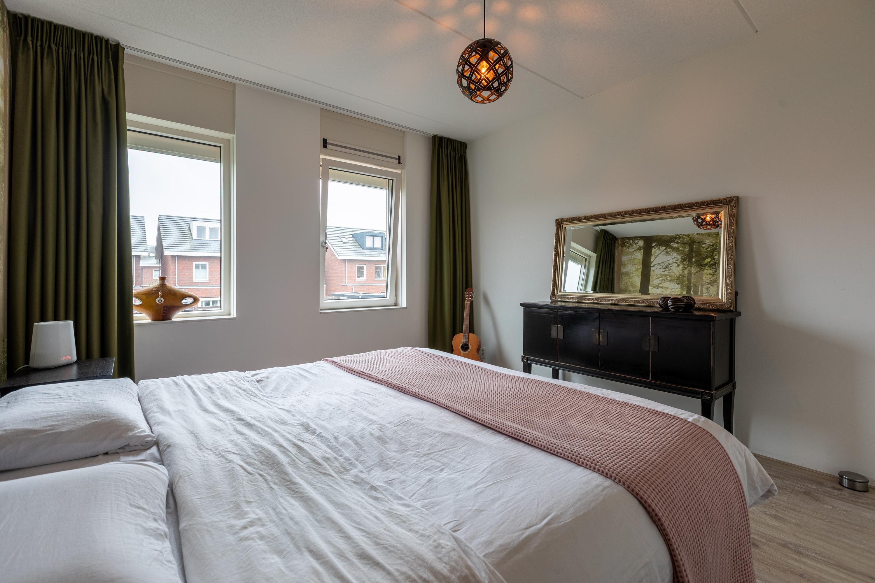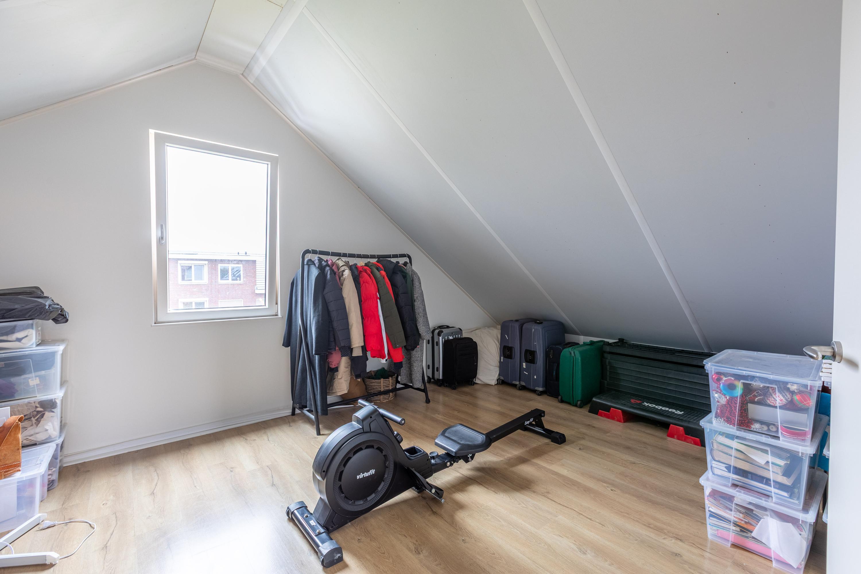 Über eine lichtdurchflutete Treppe führt der Weg ins Obergeschoss, wo vier ruhige Schlafzimmer mit hohen Türen und ausgewogener Belichtung überzeugen. Das zentrale Bad bietet eine ebenerdige Dusche, Badewanne und Doppelwaschbecken, ergänzt um ein separates zweites WC. Das zweite Stockwerk eröffnet Flexibilität mit einem großen fünften Schlafzimmer und einem vielseitigen sechsten Raum – aktuell als Wäsche- und Abstellraum arrangiert, jedoch für ein mögliches zweites Bad vorbereitet. Kunststofffenster mit HR++-Verglasung sowie eine ausgewogene Belüftung runden das durchdachte Wohnkonzept ab.