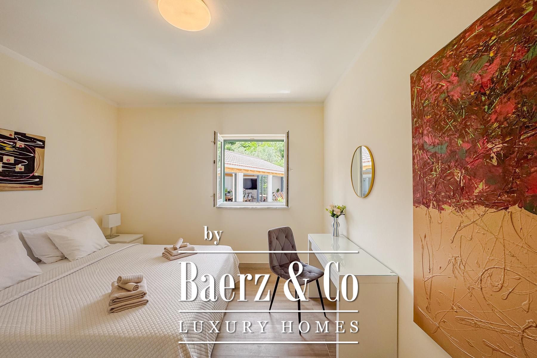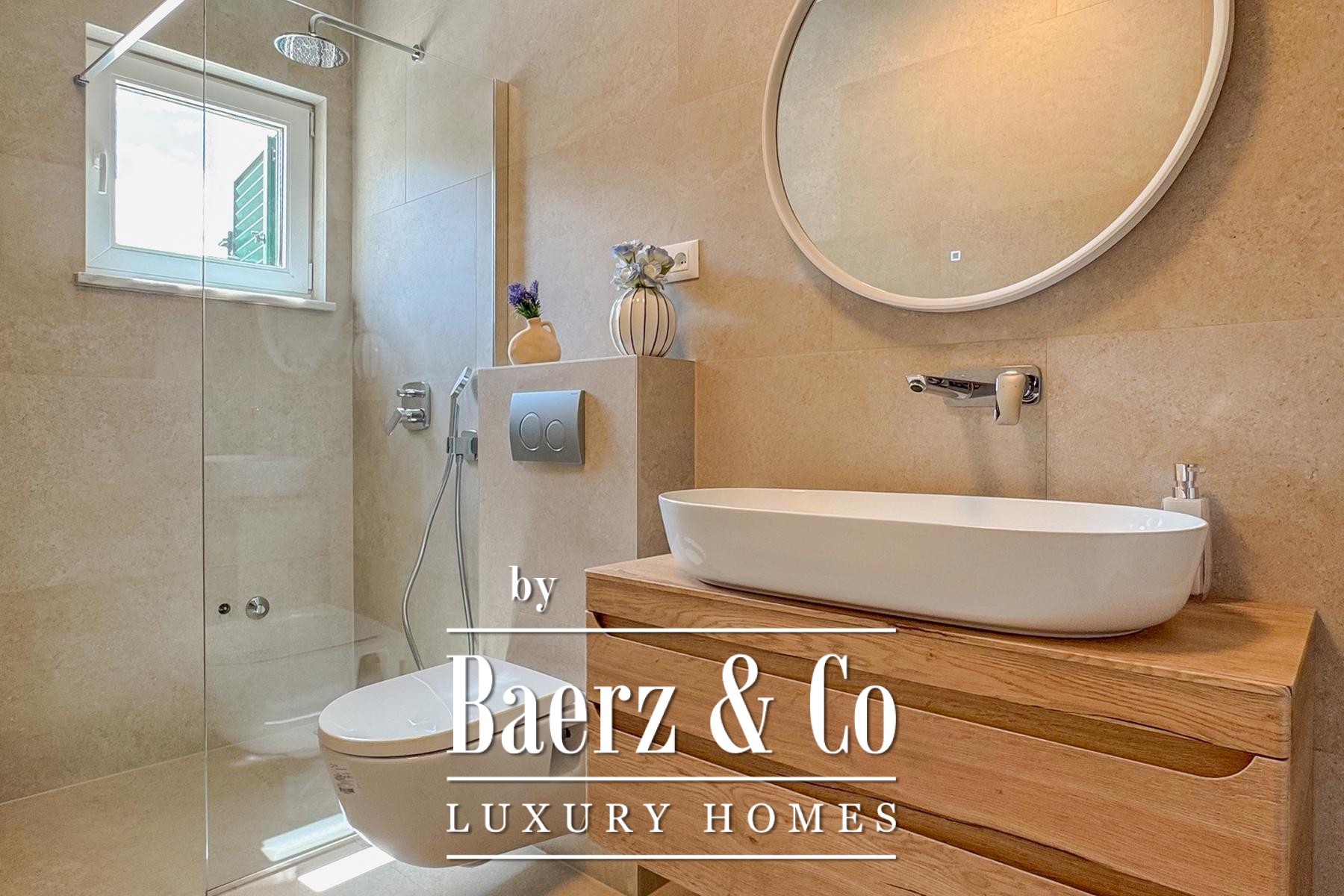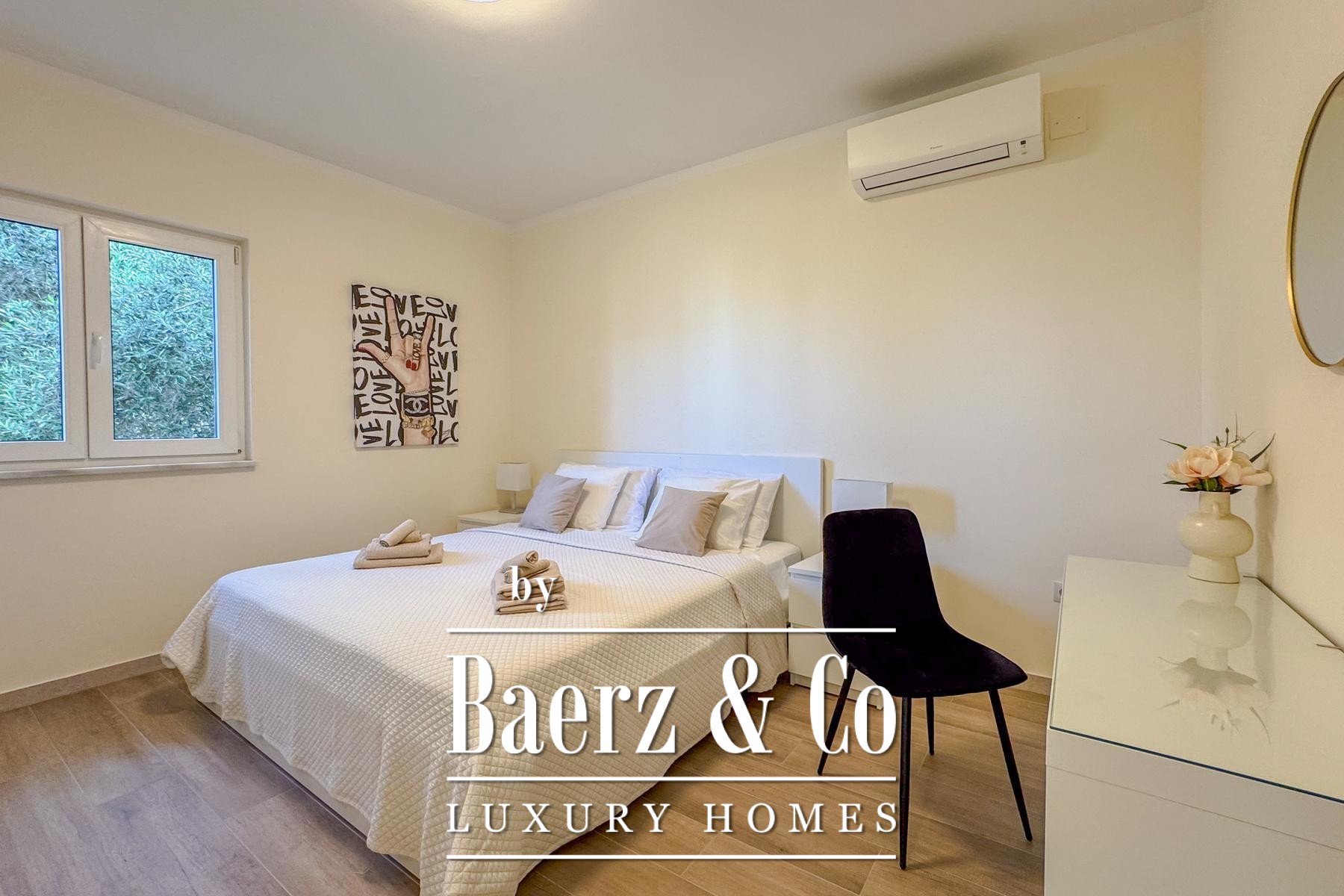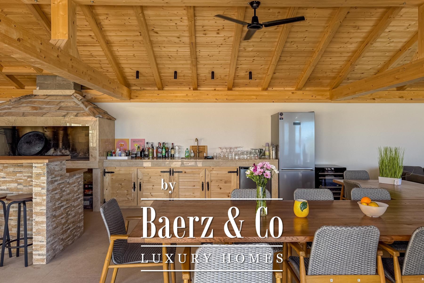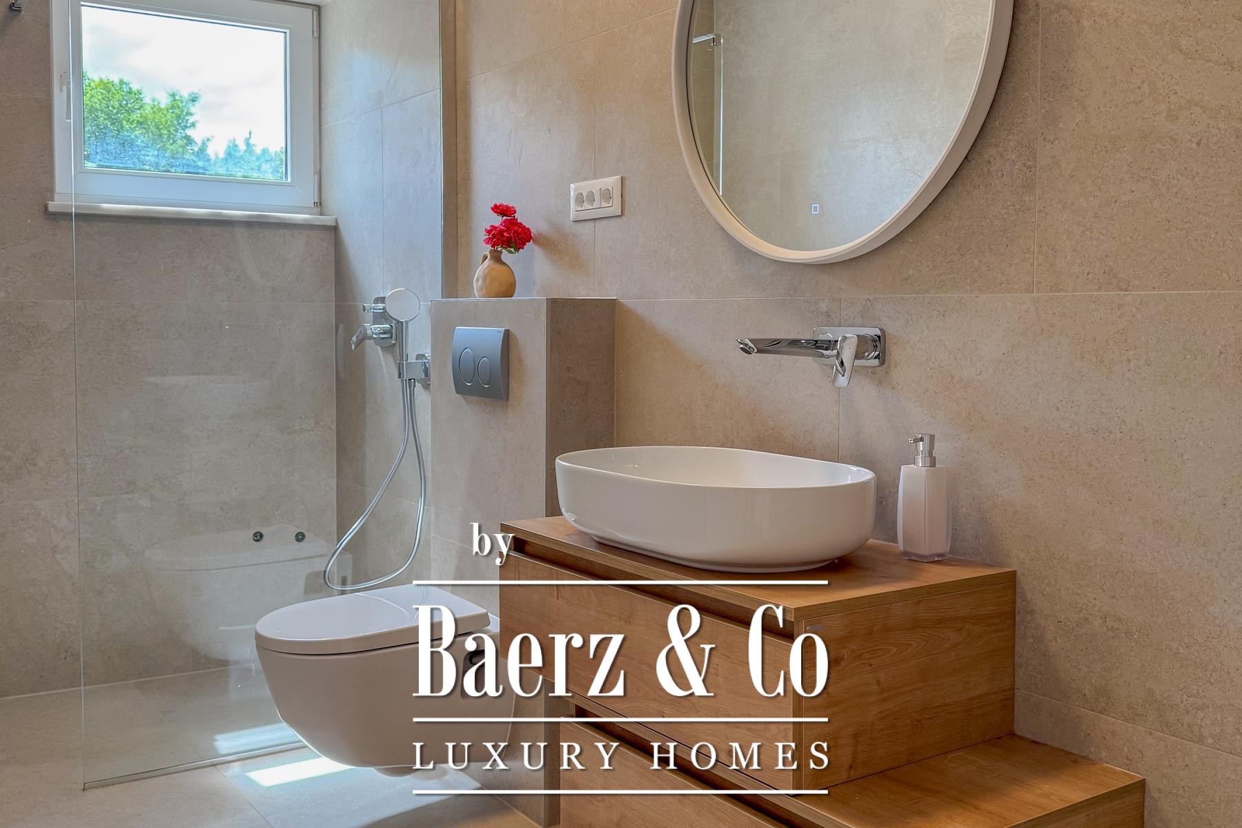 Im Inneren erstreckt sich die Villa Jesenice elegant über zwei Etagen und eine Galerie, deren Räume von reichlich Tageslicht durchflutet sind. Fünf großzügige Schlafzimmer und fünf moderne Badezimmer ergänzen einen offenen Wohn-, Küchen- und Essbereich, der Komfort und Geselligkeit vereint.