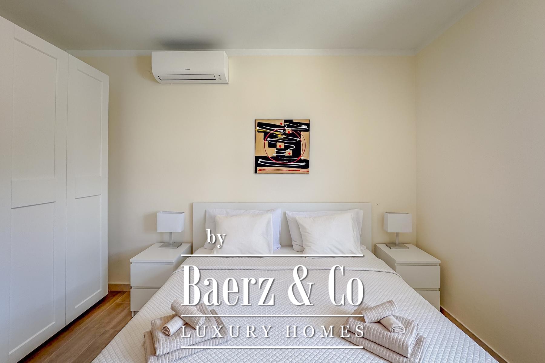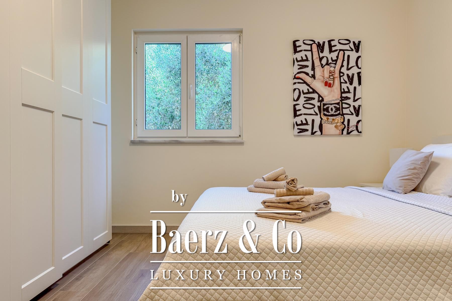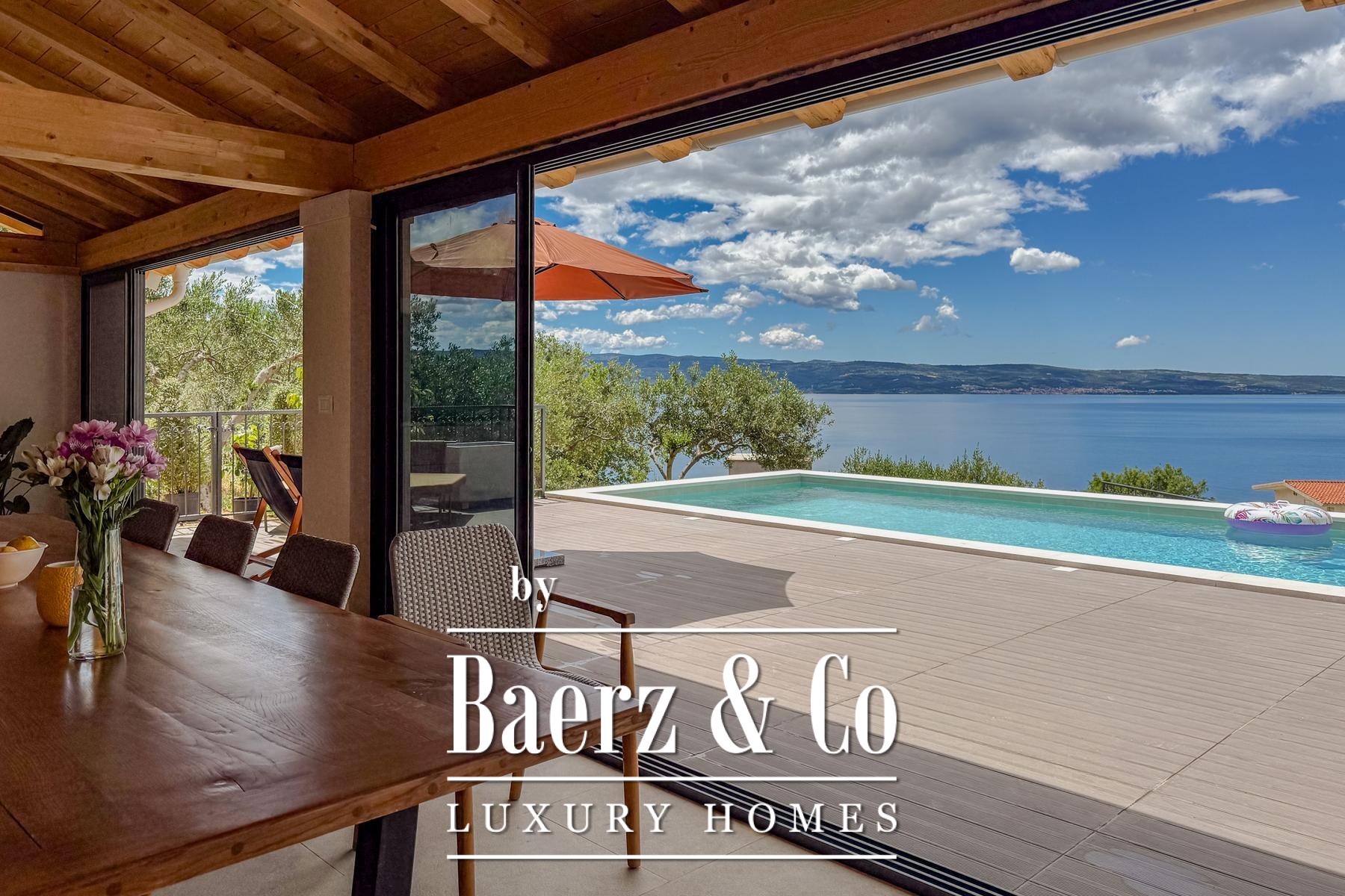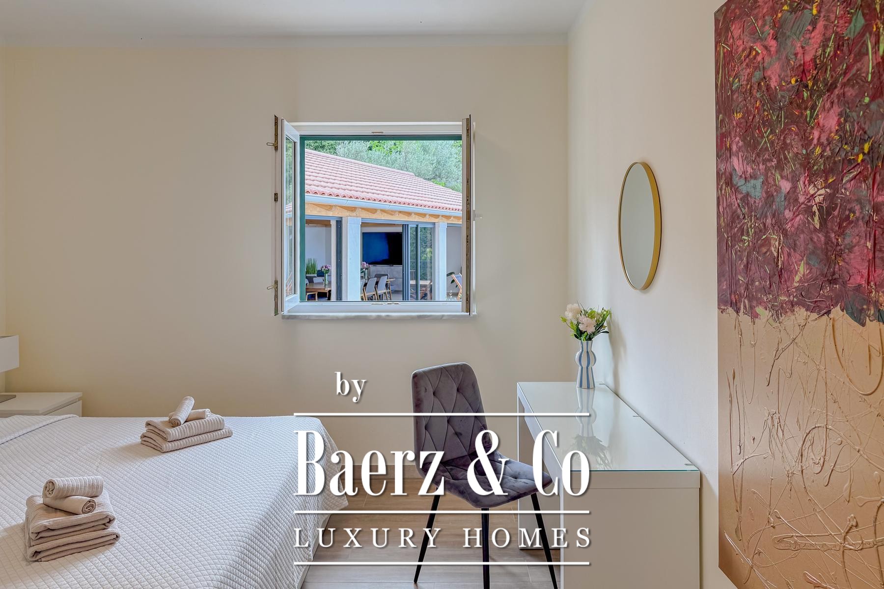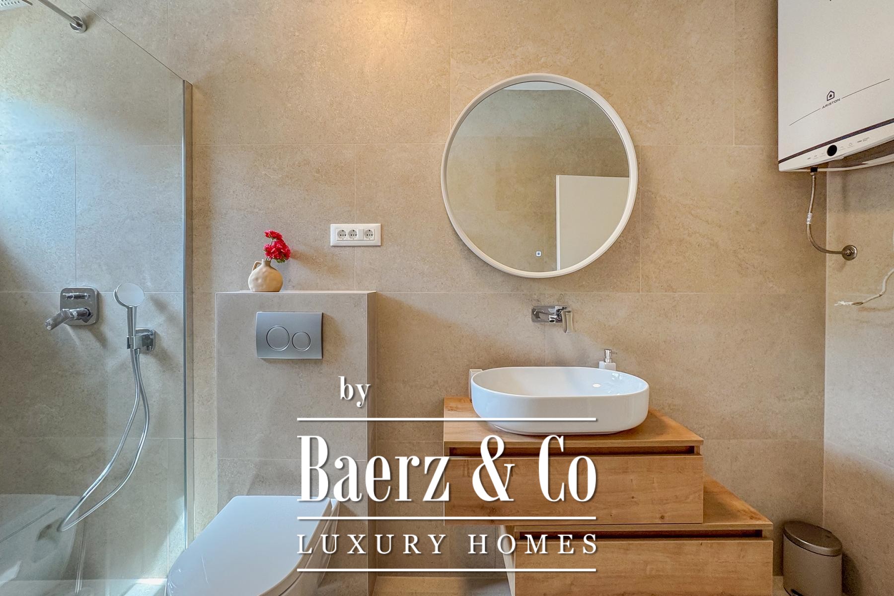 Im Inneren erstreckt sich die Villa Jesenice elegant über zwei Etagen und eine Galerie, deren Räume von reichlich Tageslicht durchflutet sind. Fünf großzügige Schlafzimmer und fünf moderne Badezimmer ergänzen einen offenen Wohn-, Küchen- und Essbereich, der Komfort und Geselligkeit vereint.