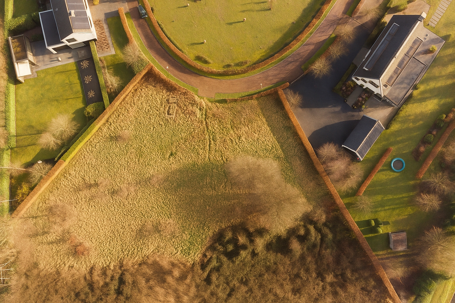 Die ausgewiesene Baufläche bietet etwa 28 Meter Breite und 24 Meter Tiefe, um ein großzügiges Landhaus zu verwirklichen oder – vorbehaltlich der kommunalen Vorgaben – die seltene Möglichkeit, innerhalb eines Hauptgebäudes zwei eigenständige Wohneinheiten zu schaffen. Es sind bis zu 75 m² Nebengebäude erlaubt sowie zusätzliche 100 m² für Arbeitsbereich oder Homeoffice. So wird die Verbindung von Wohnen und Arbeiten ideal gefördert. First- und Traufhöhe betragen 8,5 Meter bzw. 6,5 Meter, verteilt auf maximal 2,5 Geschosse. Es gibt weder feste Baufristen noch die Verpflichtung, bestimmte Architekten oder Bauunternehmen zu beauftragen.