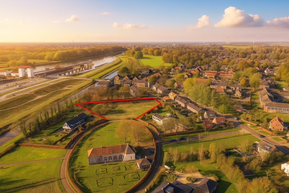 Dieses Baugrundstück in Eefde nimmt mit 6.029 m² eine privilegierte Lage ein und bietet eine außergewöhnliche Grundlage für alle, die Wert auf Raum und architektonische Freiheit in den Niederlanden legen. Direkt am Ufer des Eefsche Beek gelegen, als Teil des früheren Anwesens De Boedelhof, stellt es das letzte unbebaute Grundstück in einer geschichtsträchtigen Umgebung dar, in der nur das denkmalgeschützte Jagdhaus erhalten geblieben ist. Das weitläufige Areal profitiert von einem Waldstreifen im hinteren Bereich, der Privatsphäre bietet, sowie von einem einzigartigen Blick auf Wasserflächen und offene Grünflächen – mit Blick auf den Twentekanal und die imposante Schleuse von Eefde.