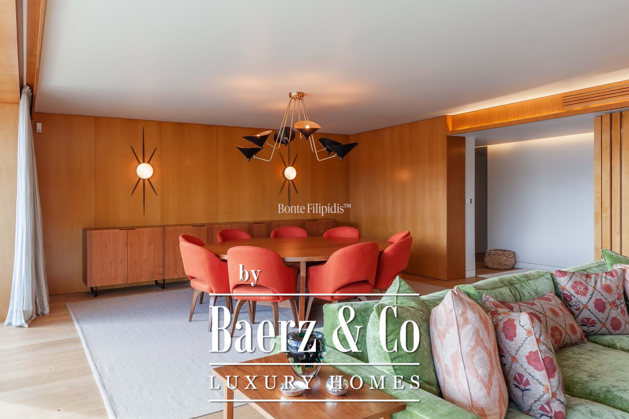 The apartment has been meticulously decorated with carefully selected design pieces, premium finishes, and extensive wood panelling, creating a refined yet welcoming atmosphere. The property is sold fully furnished, offering a turnkey solution for immediate occupancy.