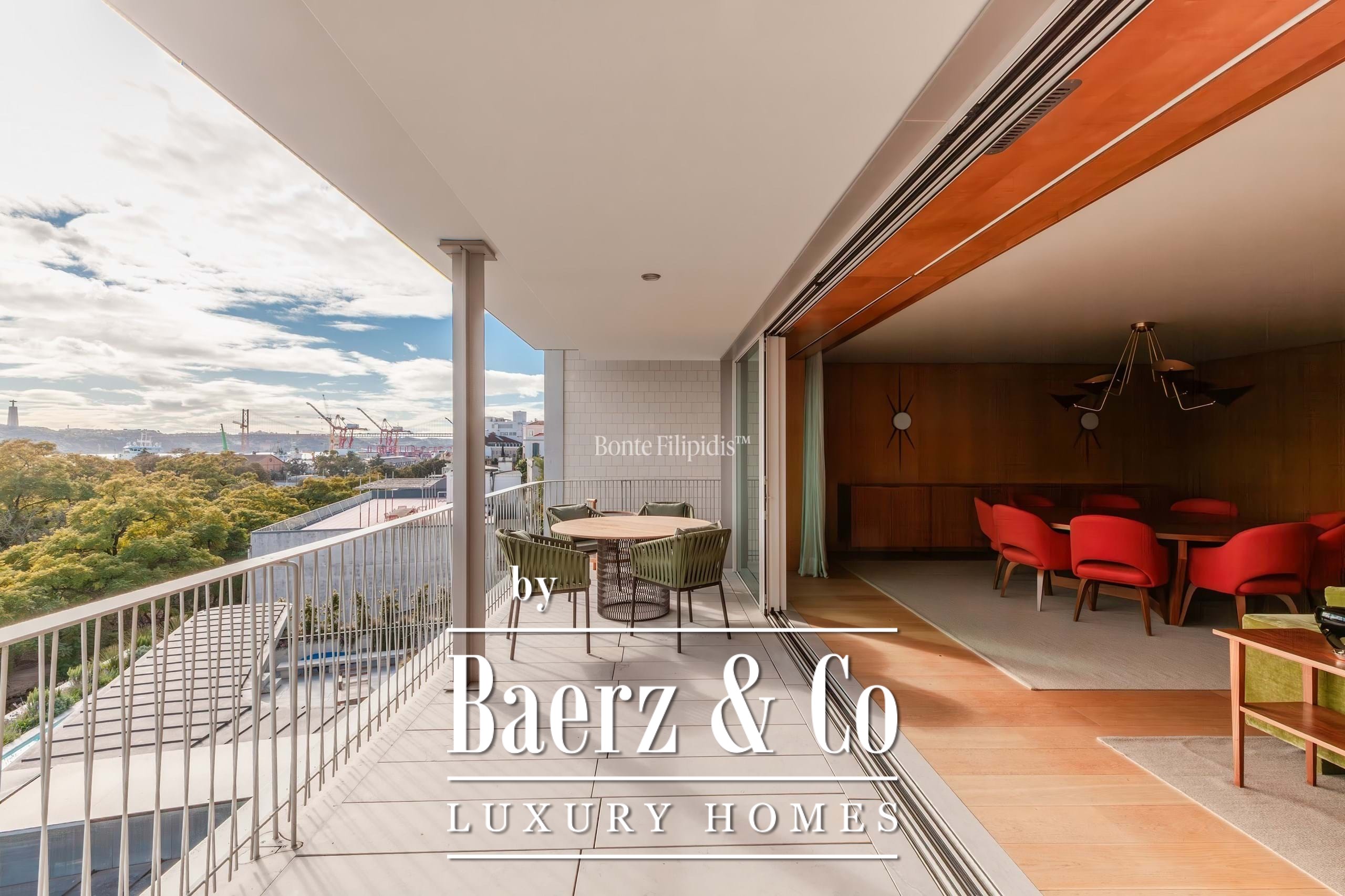 With a total area of 248 sqm, the apartment features 4 spacious bedrooms, including 2 suites, and is complemented by an impressive 46 sqm private terrace. South-facing and benefiting from excellent sun exposure throughout the day, the property enjoys open views over the Rio Tejo, the iconic Cristo Rei, and Largo de Santos.