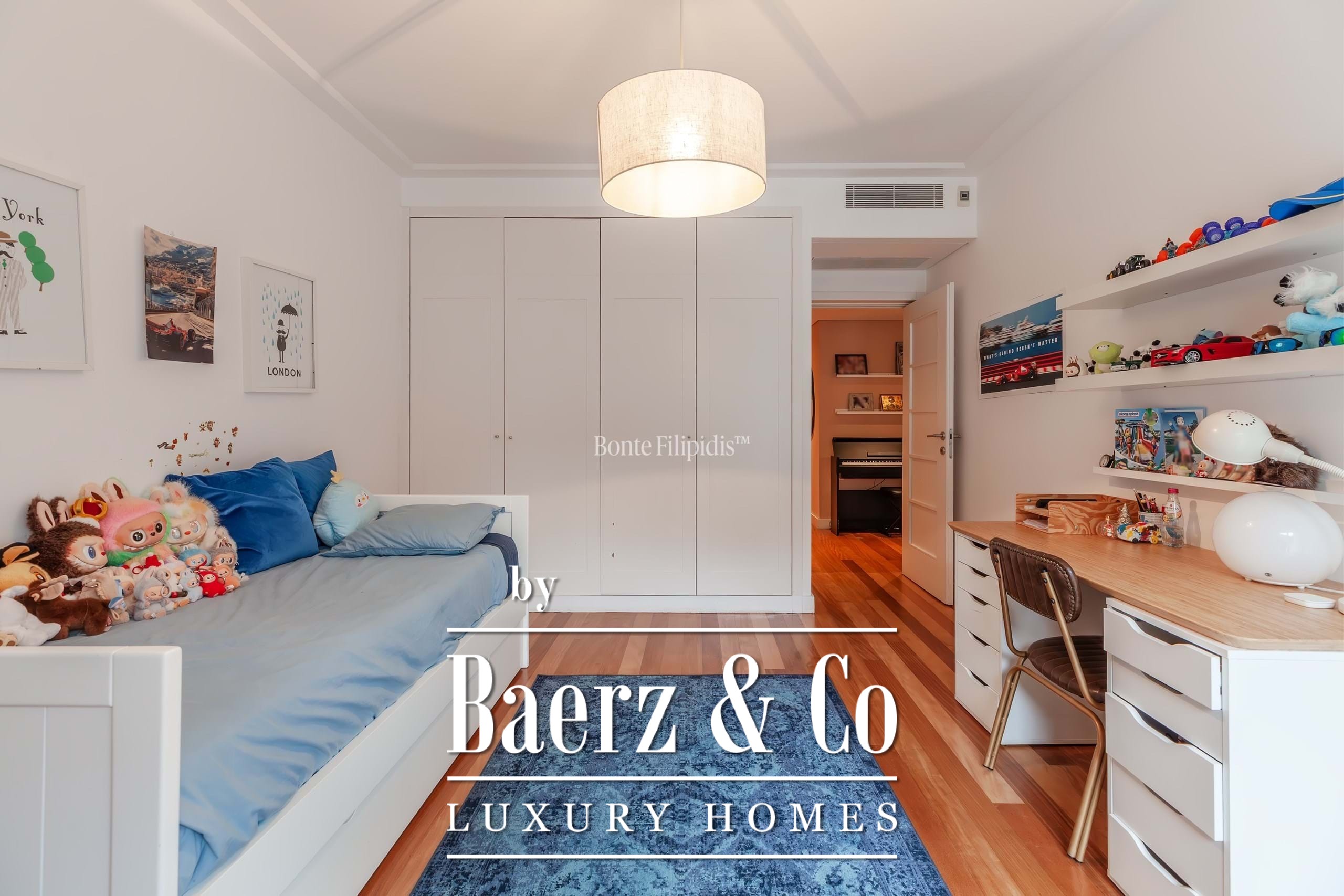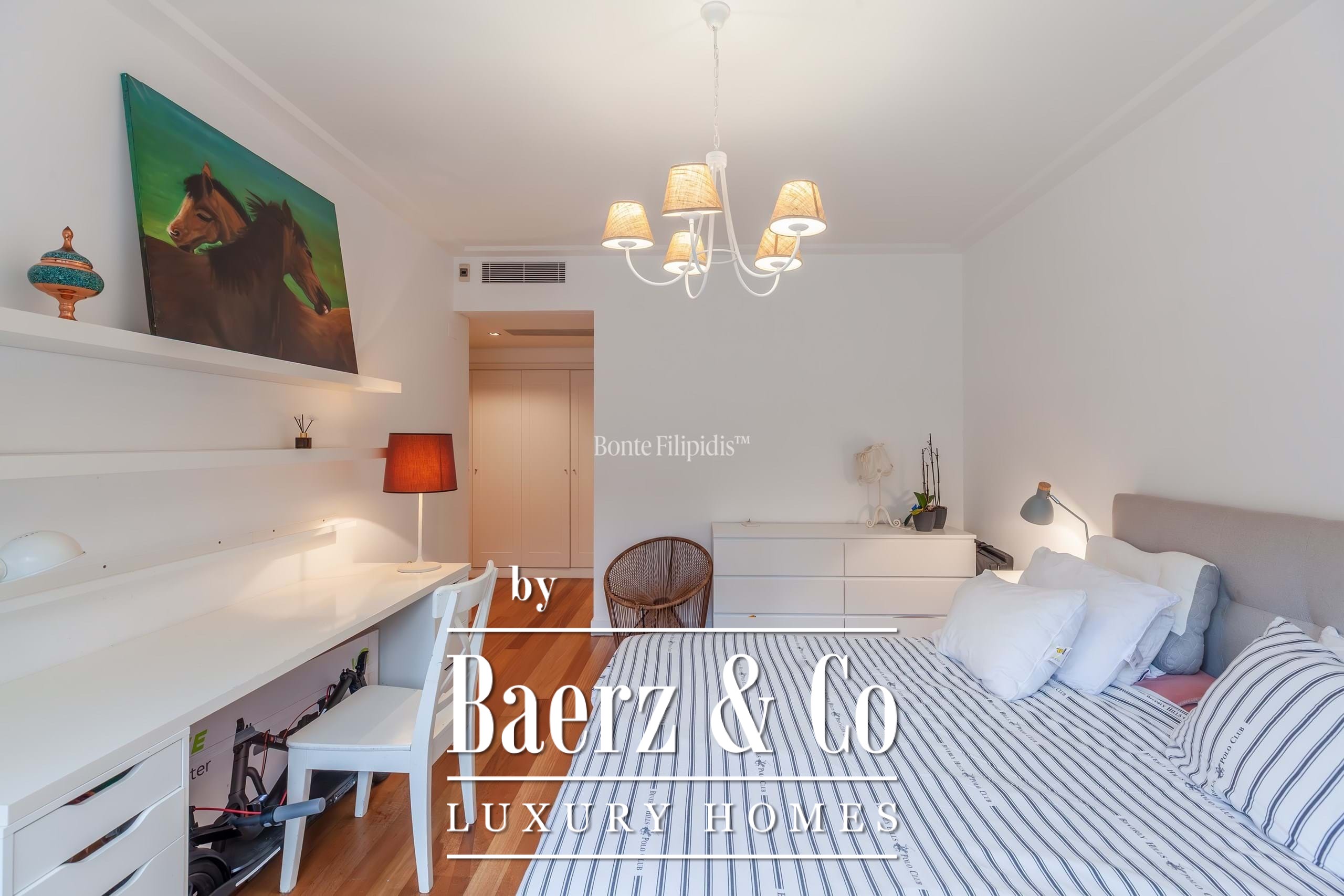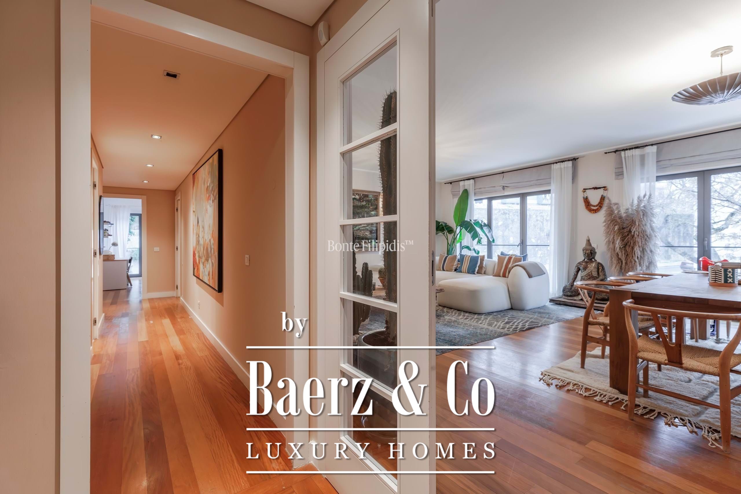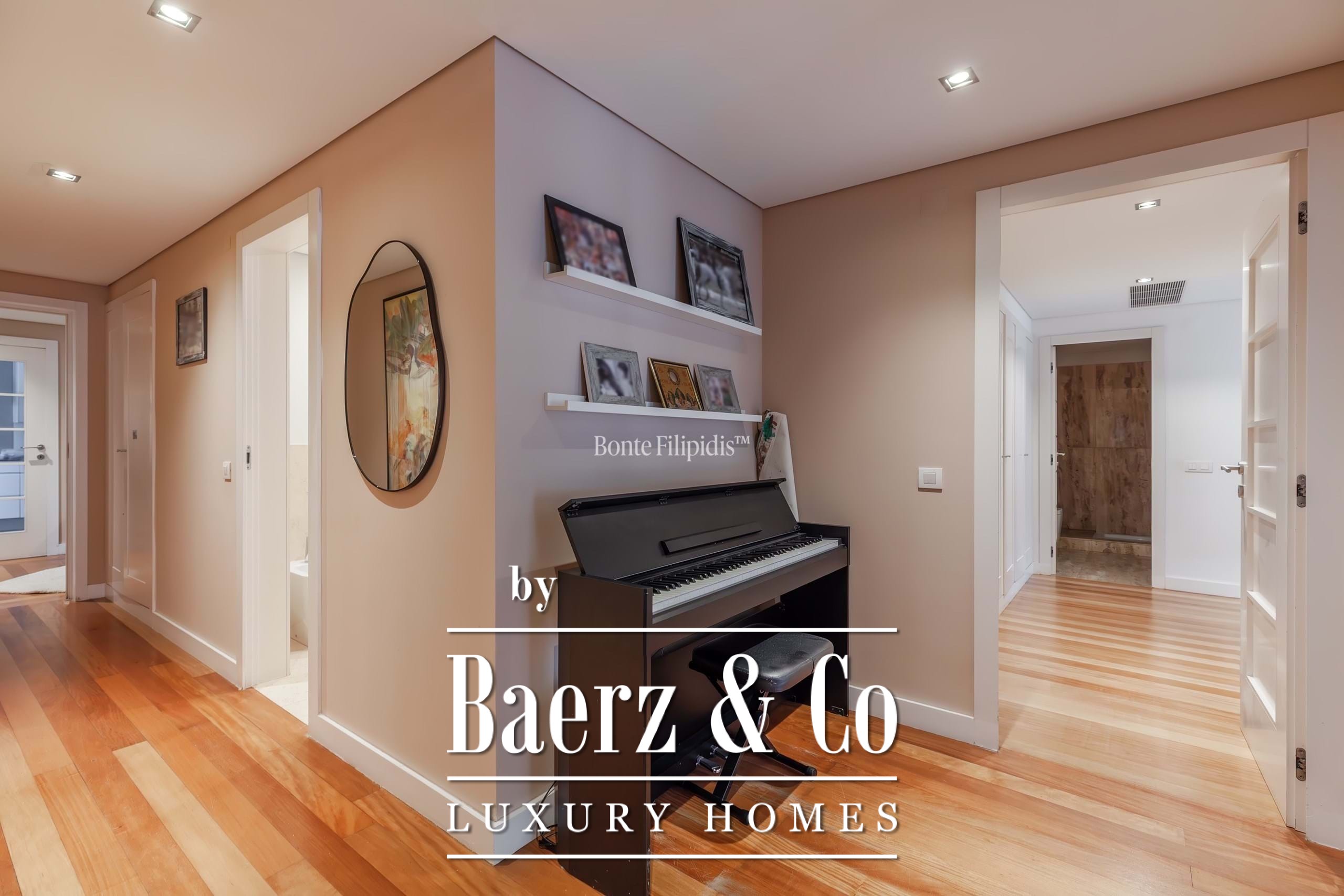 Ein offener Wohn- und Essbereich, geprägt von raumhohen Fenstern, lässt natürliches Licht einströmen und sorgt für einen nahtlosen Übergang zum privaten Balkon mit Blick auf die angelegten Gärten. Warme Holzböden verleihen dem Raum eine ruhige Eleganz, während die voll ausgestattete Küche mit integrierten Geräten, großzügigen Stauräumen sowie einem klar strukturierten Layout überzeugt und durch einen separaten Hauswirtschaftsraum ergänzt wird. Die Hauptsuite besticht durch ihre ruhige Atmosphäre, Einbauschränke und ein hochwertig ausgestattetes Badezimmer mit Natursteinoberflächen. Jedes weitere Schlafzimmer lässt sich individuell gestalten, sei es für die Familie, Gäste oder als Homeoffice.